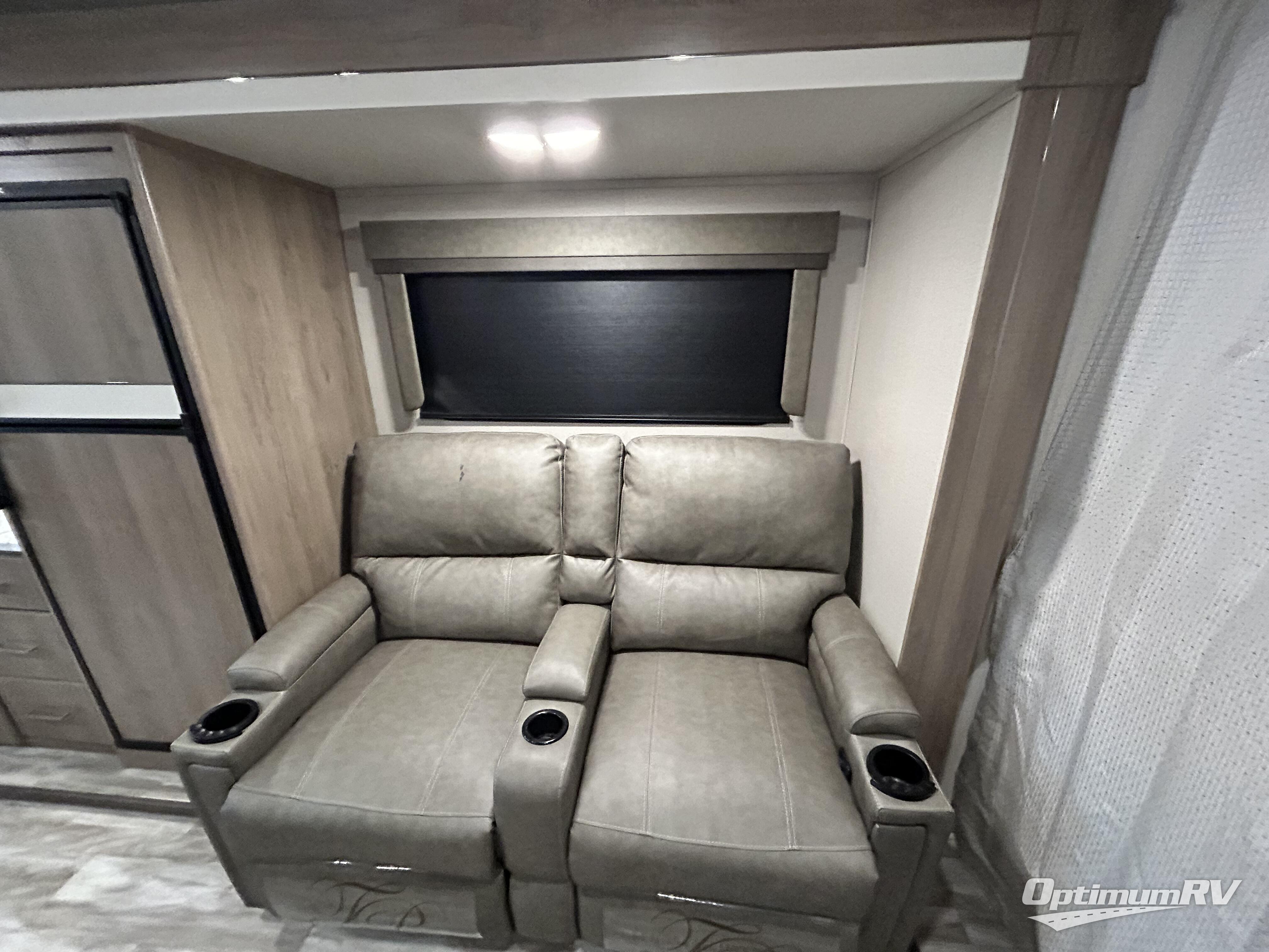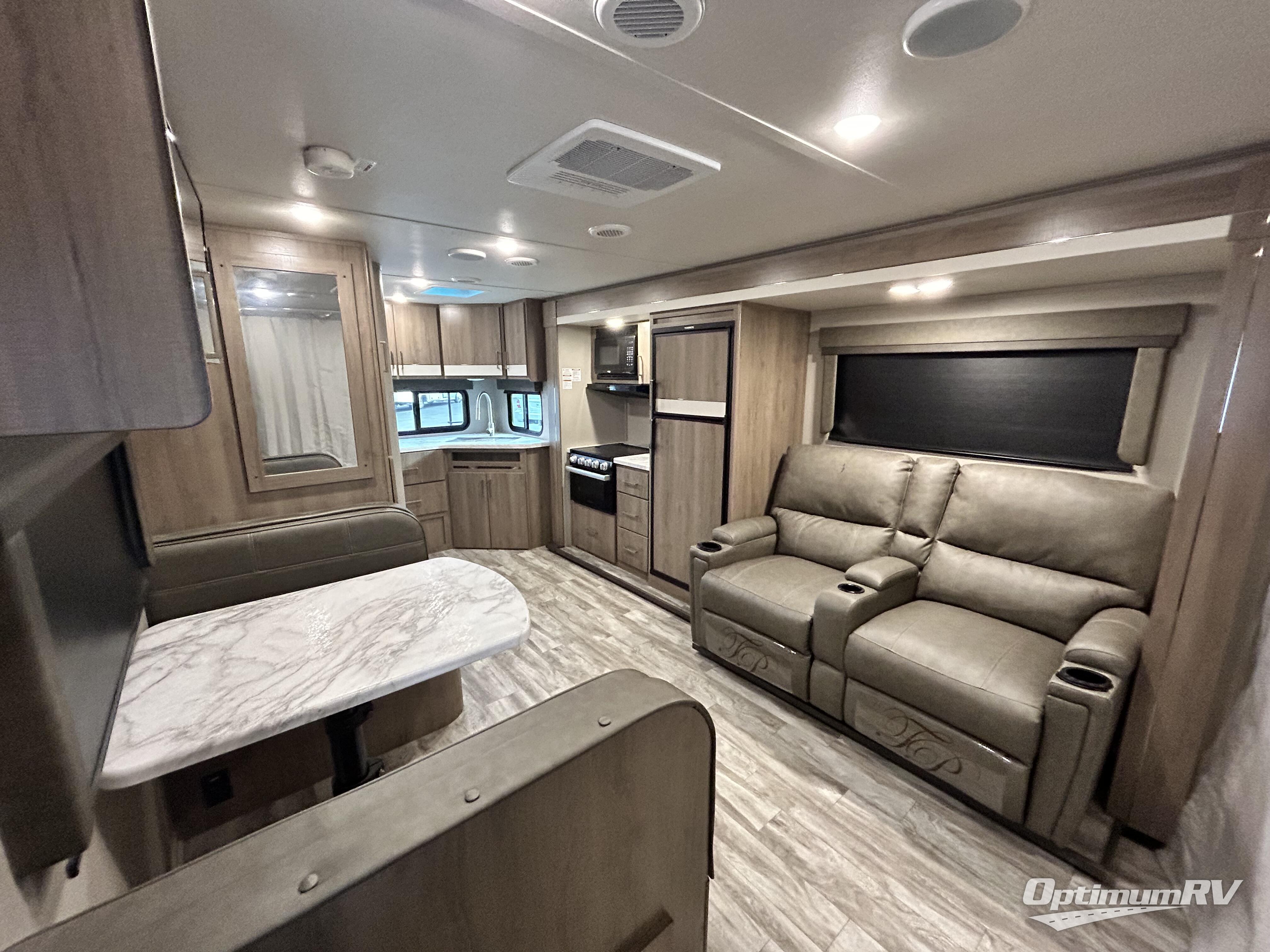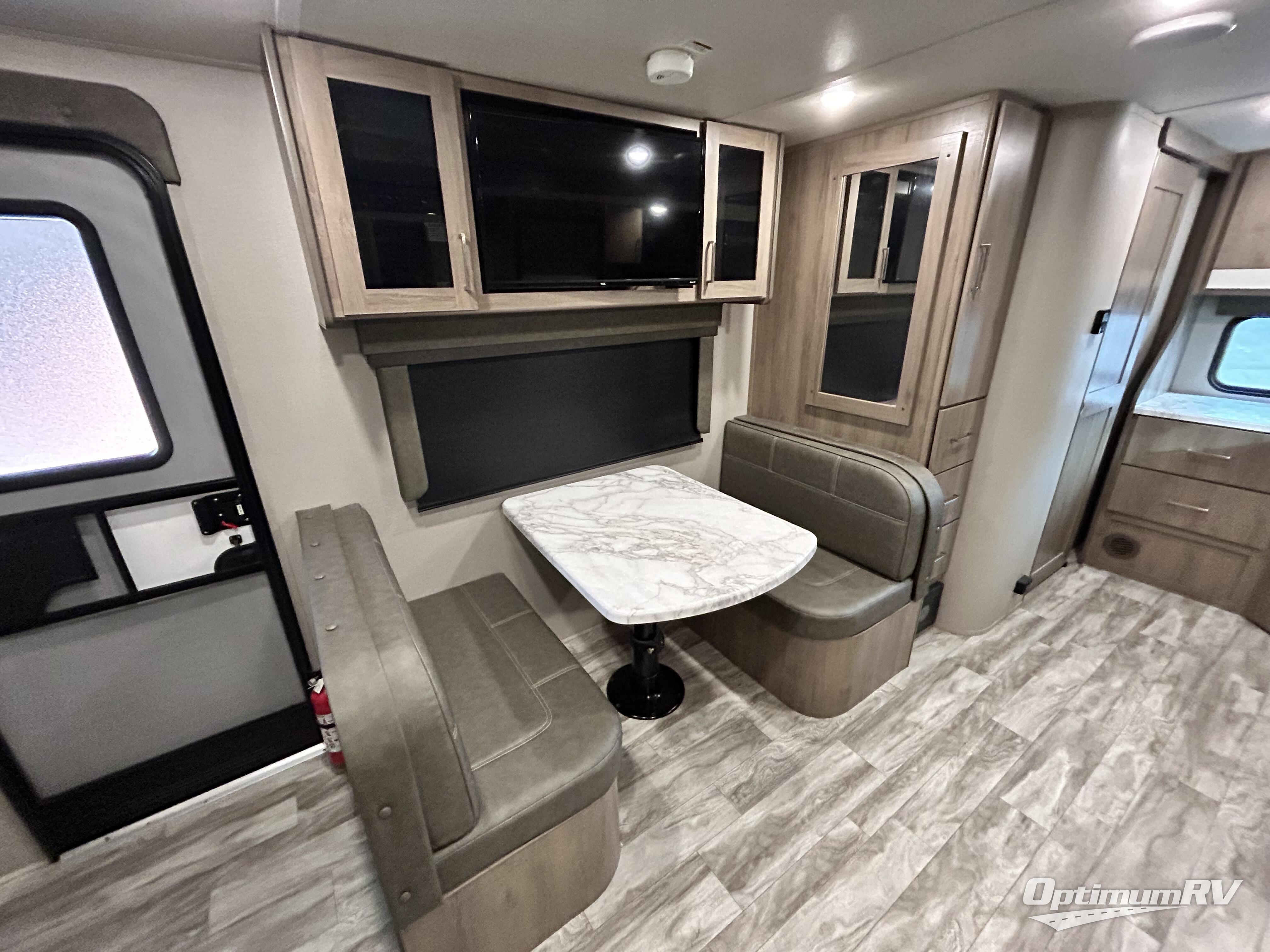 You and your spouse will love this spacious trailer with a large slide giving you lots of floor space to walk from the front to the back! The cook will enjoy the rear part of the kitchen with windows and a stainless steel sink, and the appliances are within the slide out next to the theatre seats with cupholders. The full bathroom will keep everyone refreshed before bedtime, the booth dinette offers a dining and gaming area indoors, and the privacy curtain can be closed to create a front bedroom at night. You will have a walk-around queen bed and your own side to put your clothing and such. The HD TV is on a swing-arm for easy viewing from the furniture or the bed. And you can enjoy relaxing outside under the electric awning on those beautiful evenings.