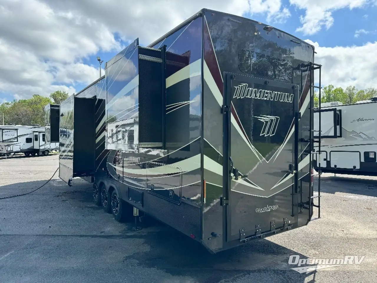 The very best adventures are waiting for you with the Grand Design Momentum toy hauler! The Momentum combines extreme play with extraordinary living so that you can have the best of both worlds. You won't have to miss out on any of your favorite features from home because the Momentum has just about everything. With the Weather-Tek insulation, you won't have to let anything hold you back from getting out and taking an adventure during any season, and the Tuff Ply gas-and-oil-resistant garage flooring is a quality base for your toys. The flush-mount tie-downs rated for 2,500 LBS will keep your gear in place as you travel, and there is a protective diamond plate on the garage sidewalls for additional protection. Some of the options that you can choose to add to your Momentum are the Solitude solar system and Rockford Fosgate speaker package.
