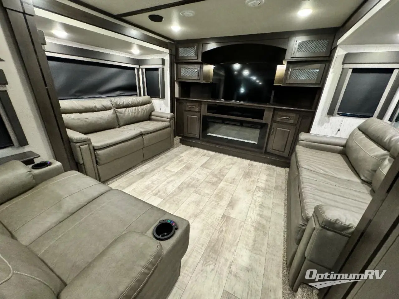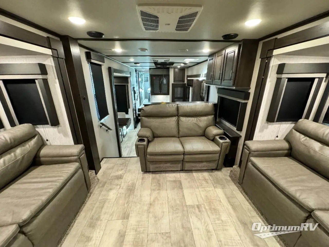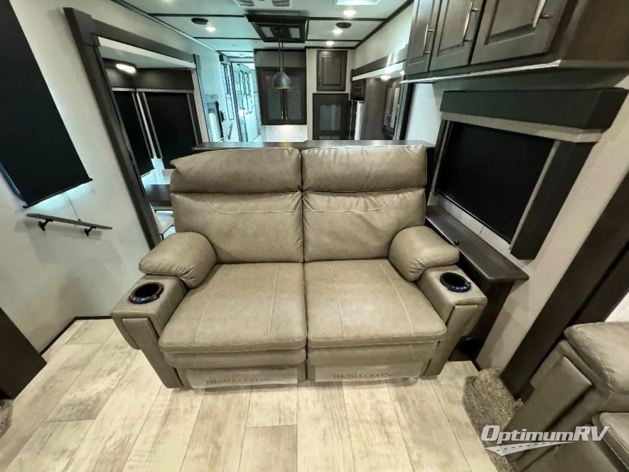 This Momentum toy hauler is wonderfully modern and luxurious with three LED TVs, an electric fireplace, a master suite, theater seating with heat/massage, an 18-cubic foot refrigerator, and an outdoor kitchen! The interior feels residential since it has a separate living room up at the front, and the kitchen is stocked with all of the essentials plus a few extras, like a desk and free-standing dinette with chairs. The dual-entry bathroom has a main entrance in the hallway and a second private entrance into the bedroom. With a skylight above the shower, you'll be able to rinse off while the sunshine streams through, and the two exterior pass-through storage compartments will allow you to bring even more gear in addition to what you have in the below-floor garage.