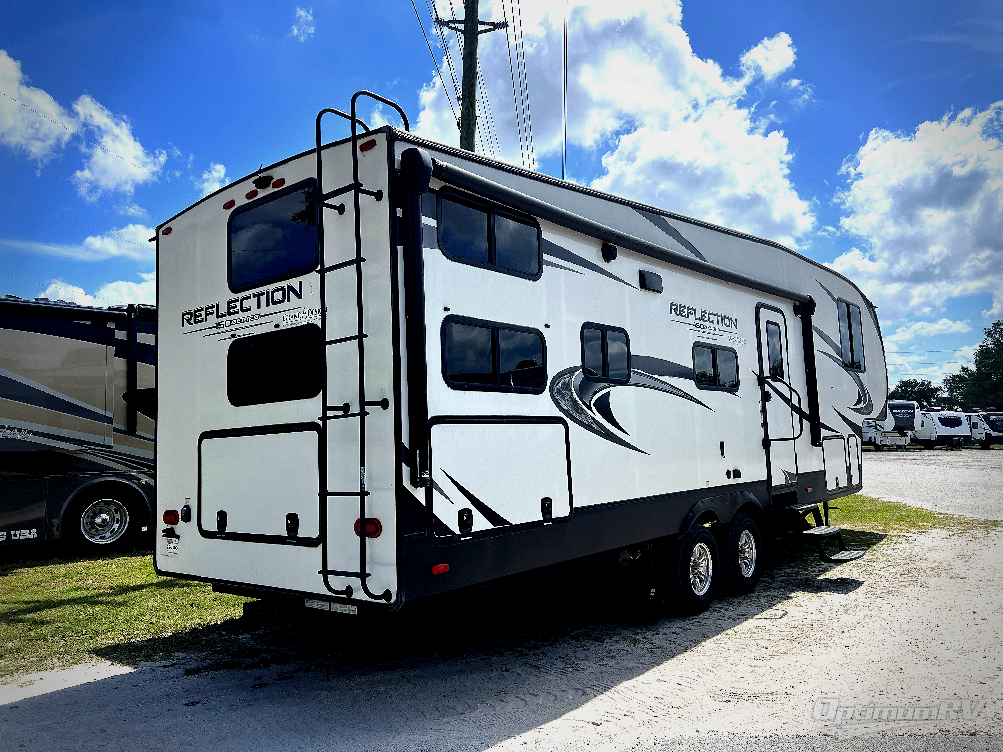 Each Reflection 150 Series fifth wheel by Grand Design allows you to use your half-ton and short-bed truck to tow thanks to the 90-degree turn radius pin box. The Universal All-In-One docking station, the LP Quick Connect, and the "One-Touch" automatic leveling system will make setting up and packing up easy for those weekenders or full-timers that like to move around to see the countryside. Inside, you will love the Gunstock fixtures and hardware, the louvered tread steps to the bedroom, the large panoramic windows, plus the many features in the mandatory packages. It's time to reflect on your wise choice, so choose a Reflection 150 Series today!