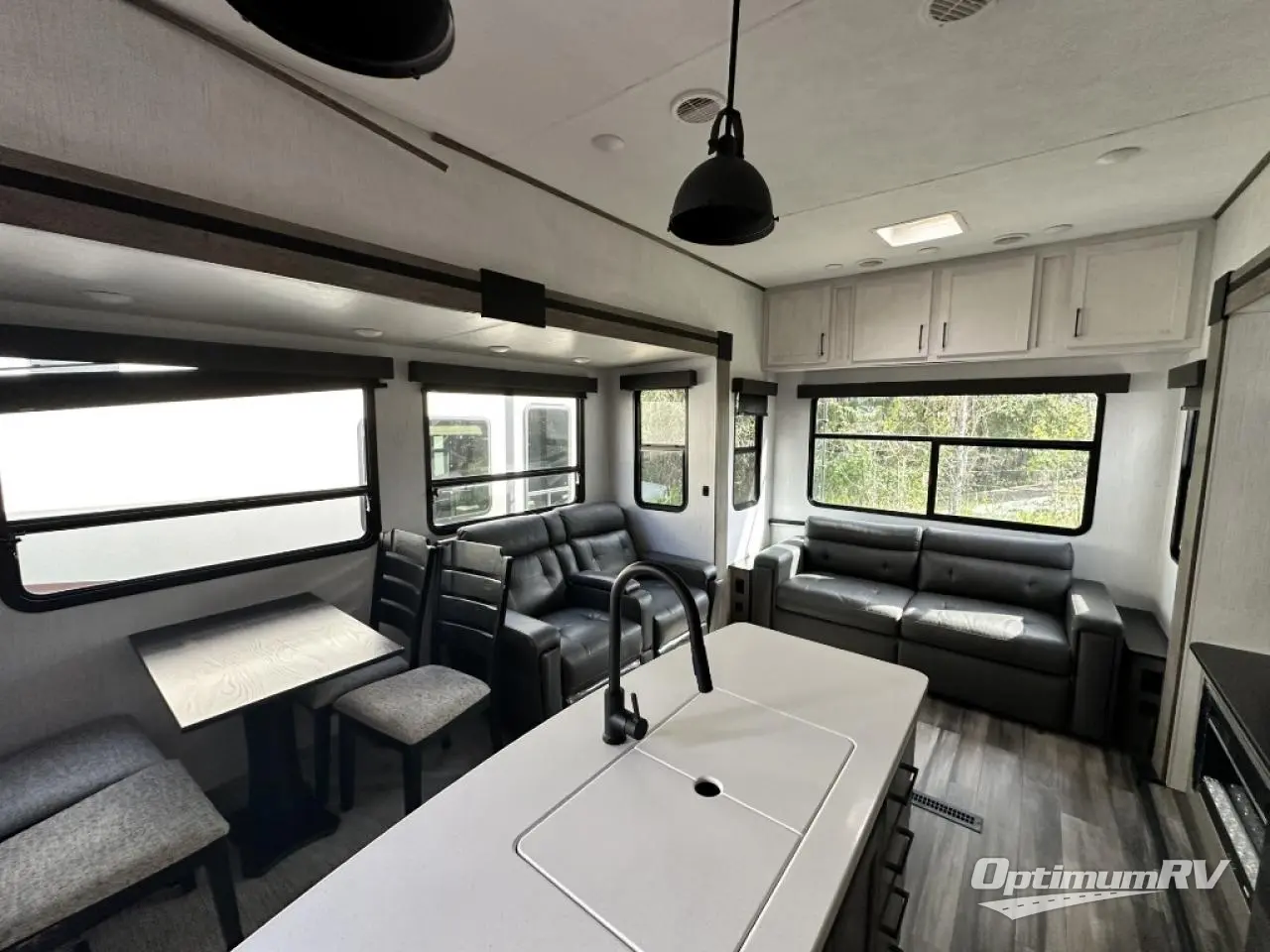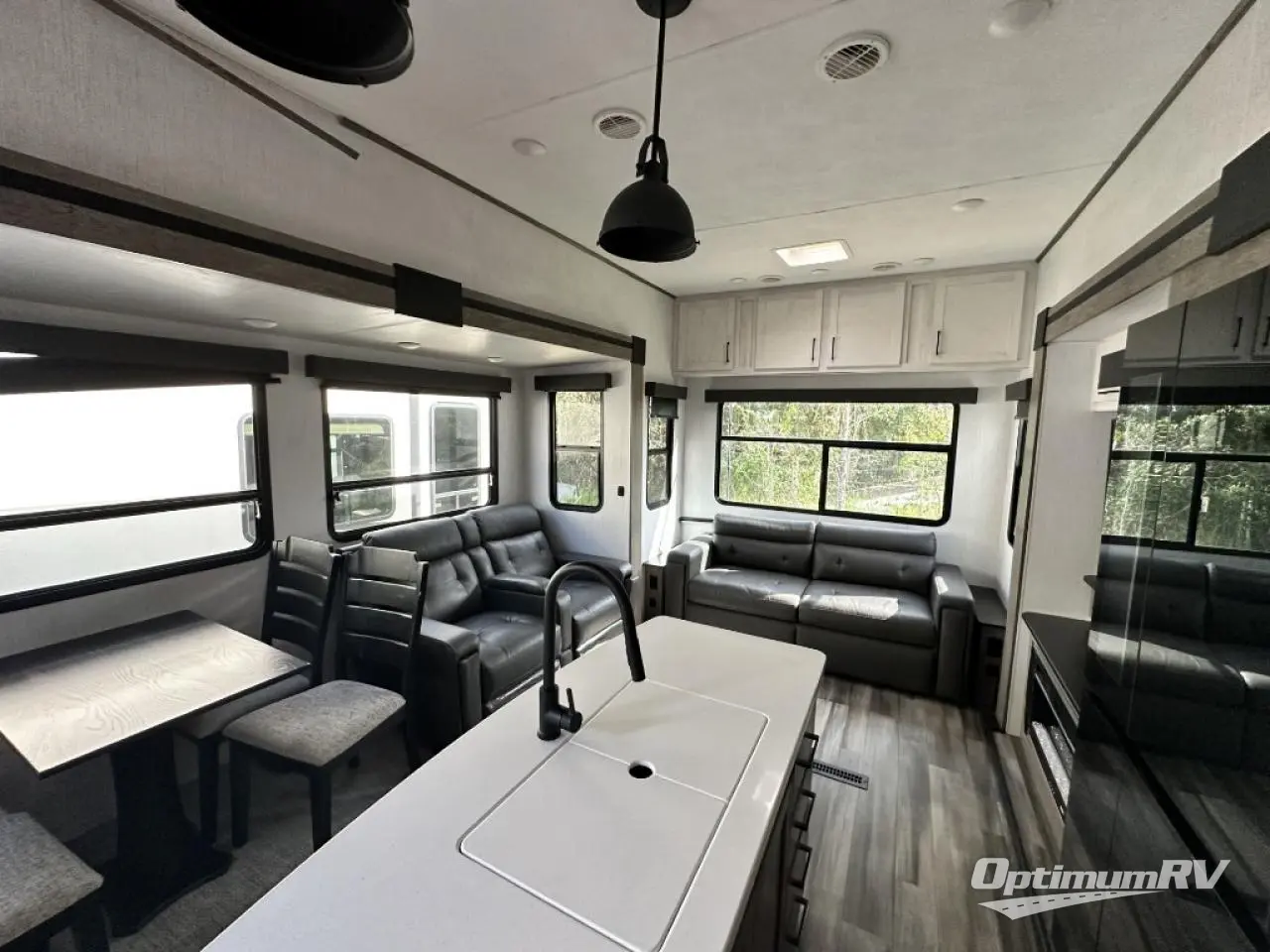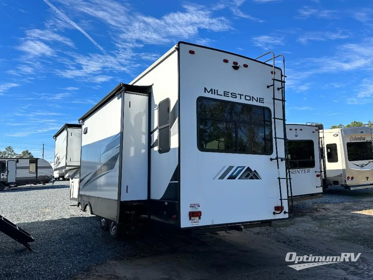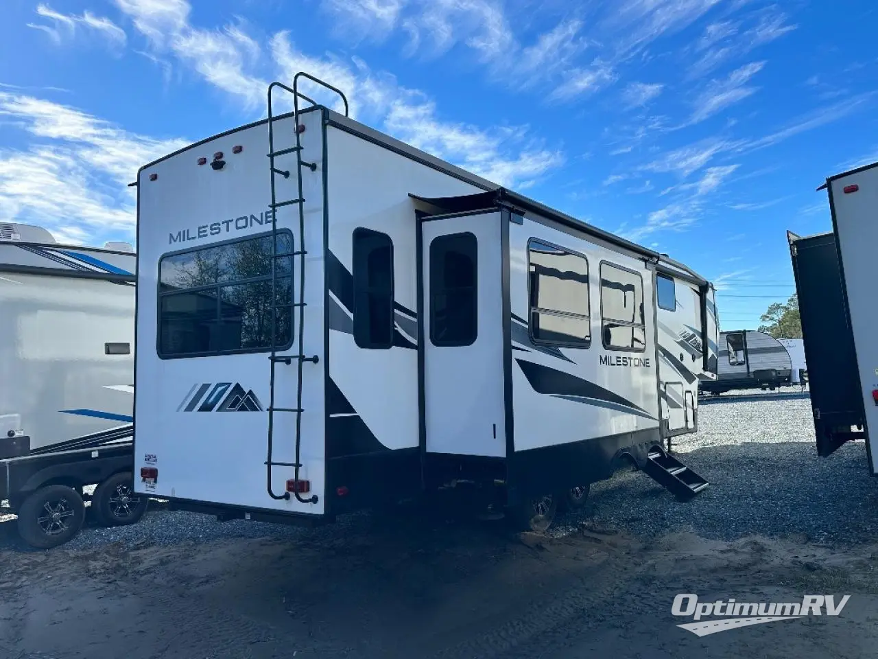 Whether you're at the beginning of your RV career or you have a few excursions under your belt, this Milestone fifth wheel is the new milestone you need in your life! You can travel with confidence because this unit provides you with places to relax, cook, entertain, and wash up. The dual-entry bathroom has a main entrance from the hallway and a second private entrance that leads into the front bedroom. In the bedroom, you'll find a king bed slide that adds space and comfort, and there is also a full-width wardrobe that will easily handle many garments thrown its way. You also have storage space in the kitchen with the large pantry, and the sofa with footrests will give you a place to prop up your feet in front of the 50" TV with integrated sound bar.
