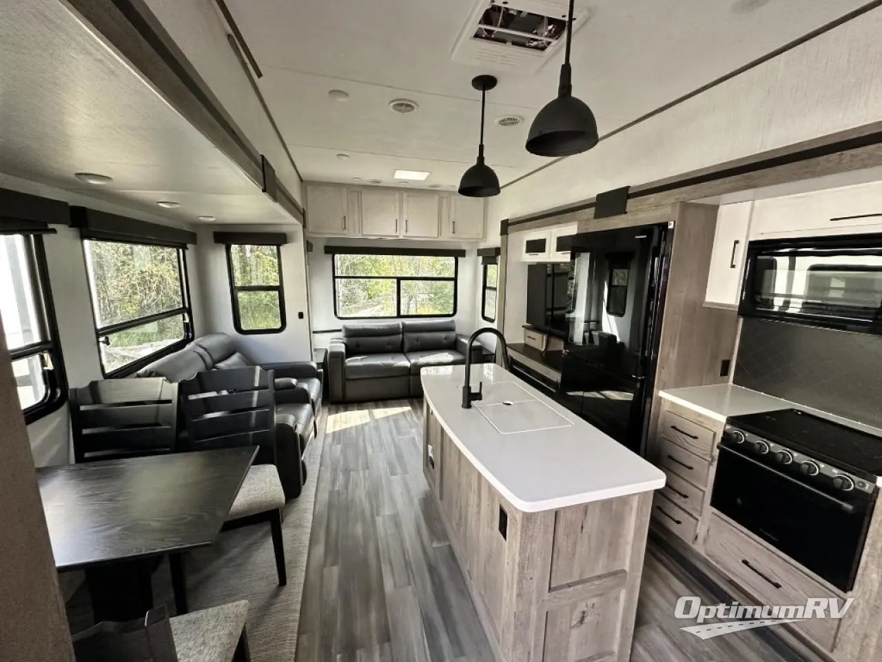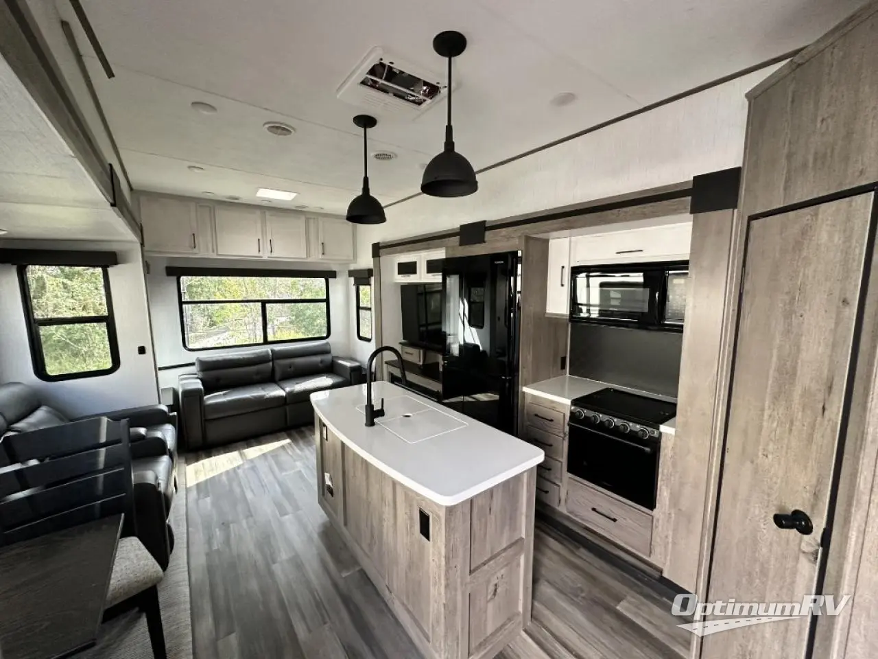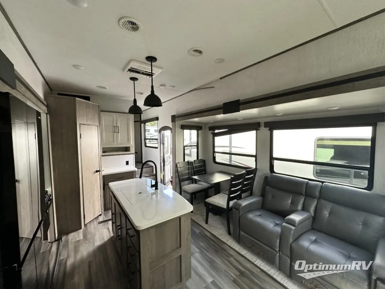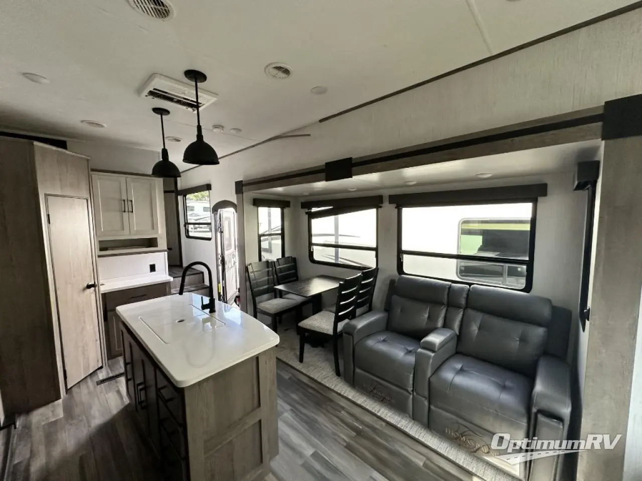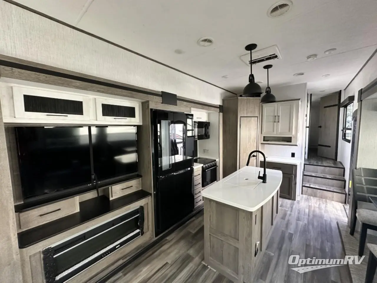 Whether you're at the beginning of your RV career or you have a few excursions under your belt, this Milestone fifth wheel is the new milestone you need in your life! You can travel with confidence because this unit provides you with places to relax, cook, entertain, and wash up. The dual-entry bathroom has a main entrance from the hallway and a second private entrance that leads into the front bedroom. In the bedroom, you'll find a king bed slide that adds space and comfort, and there is also a full-width wardrobe that will easily handle many garments thrown its way. You also have storage space in the kitchen with the large pantry, and the sofa with footrests will give you a place to prop up your feet in front of the 50" TV with integrated sound bar.