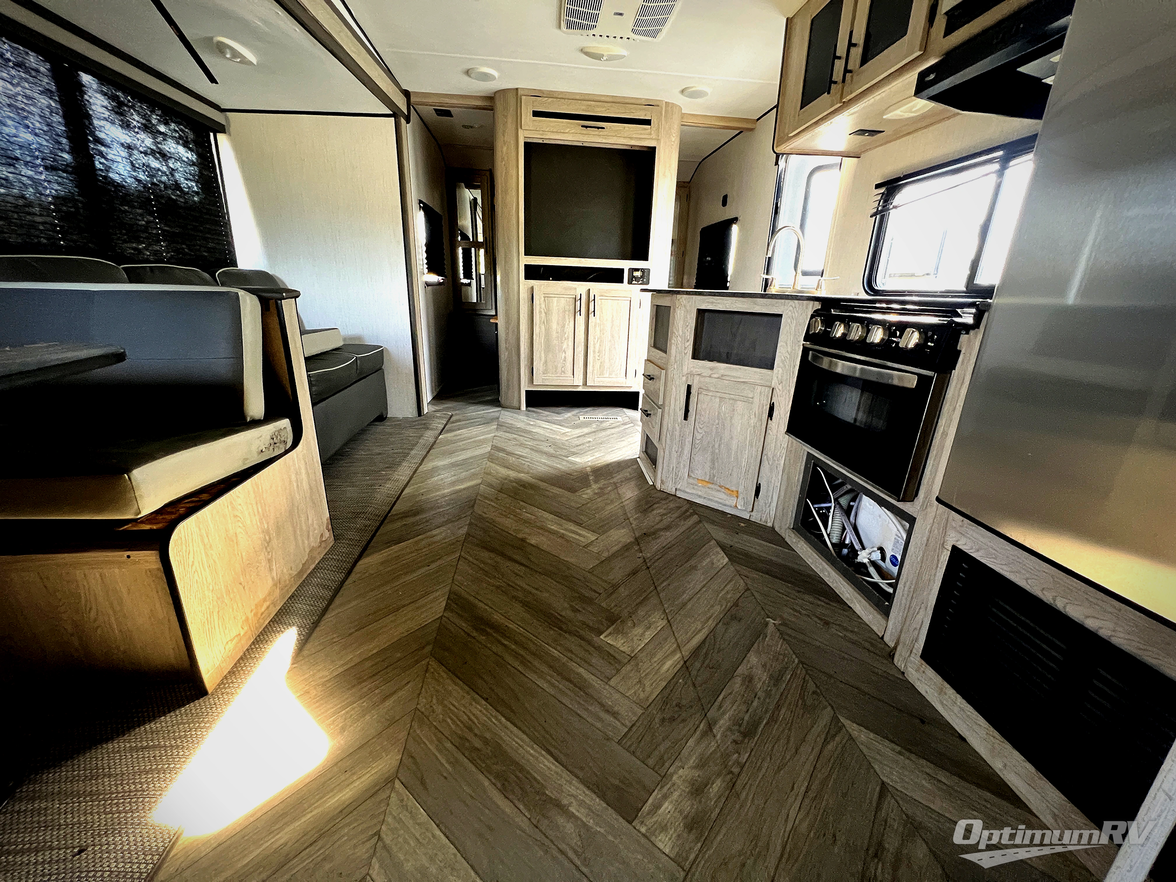 Now you can invite the grandkids along or your friends on camping trips since this travel trailer includes a private bunkhouse just for them! They will have three bunks to choose from, plus a dinette that can be converted to sleeping space at night. You and your spouse will sleep soundly on the queen bed in the front private bedroom, and any additional guests can sleep on the sofa or U-shaped dinette within the large slide out. The chef of the family can prepare eggs and bacon on the flush mount three burner cooktop in the morning before you all head out on a trail, and the full bath will allow everyone to clean up when you return!