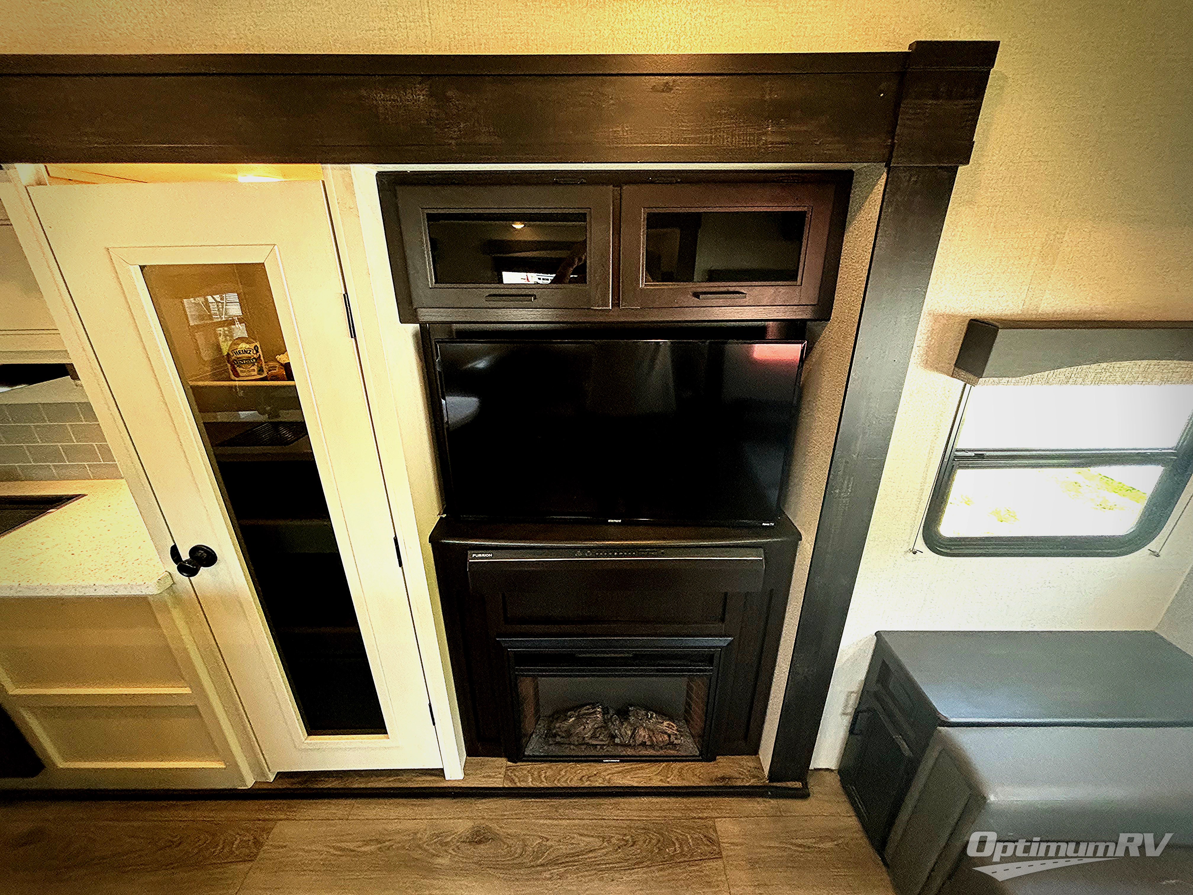 This Open Range Light fifth wheel has a multi-purpose second bedroom that can serve as a private sleeping area for extra campers or a private office for you! Since this bunkhouse has a flip-up bunk and tri-fold sofa on a slide out, a desk, and a wardrobe, it is the perfect addition to many different families. Out in the main living area, there are two opposing slides which give you ample space to relax with the entire family. You can sit back on the tri-fold sofa or in the theater seating while you watch the 39" LED HDTV. You can also help out with some meal prep without even needing to leave this space since the kitchen island is right next to the TV. You might even like to add a TV to the outside TV prep for outdoor entertainment under the 19' power awning.