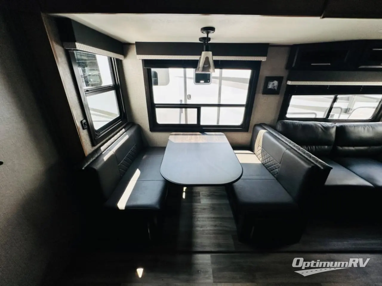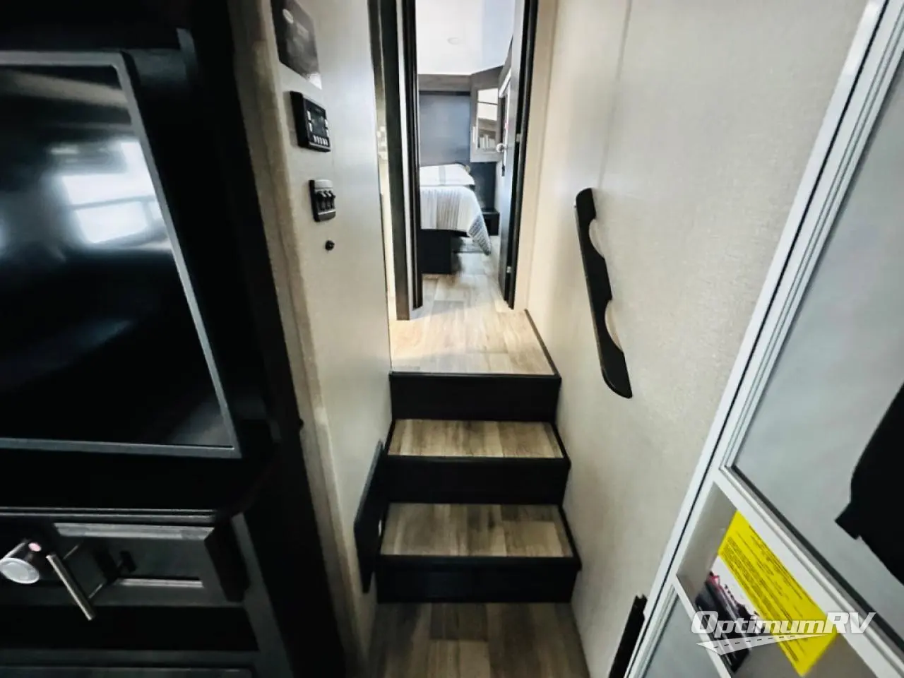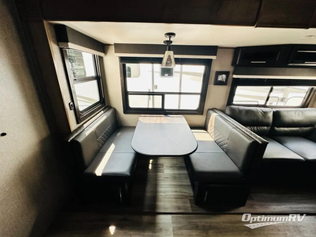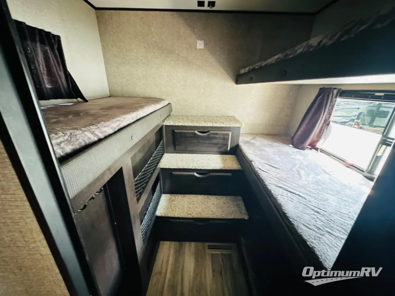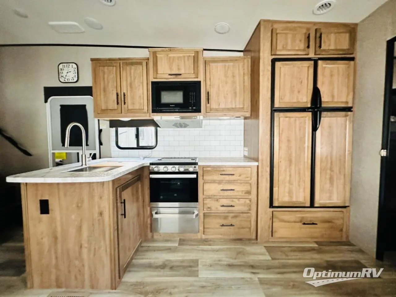 Make it a family vacation you won't forget in this half-ton-towable Eagle HT fifth wheel. The private bunkhouse includes four bunks plus unique stair-step storage drawers so that the kids can bring along their books and toys. You'll appreciate the added space in the main living area thanks to the large slide out, and you'll find the second slide out in the master suite up front. The chef of the family will love making breakfast on the outside kitchen, plus the indoor kitchen includes all the appliances needed if the weather is nasty outside. Whether you're playing a game at the booth dinette, watching your favorite movie on the LED HDTV, or you decided to choose the optional fireplace, you will truly enjoy your time in this fifth wheel.