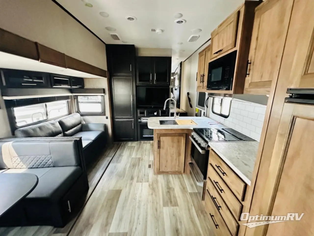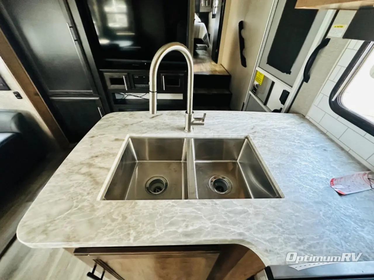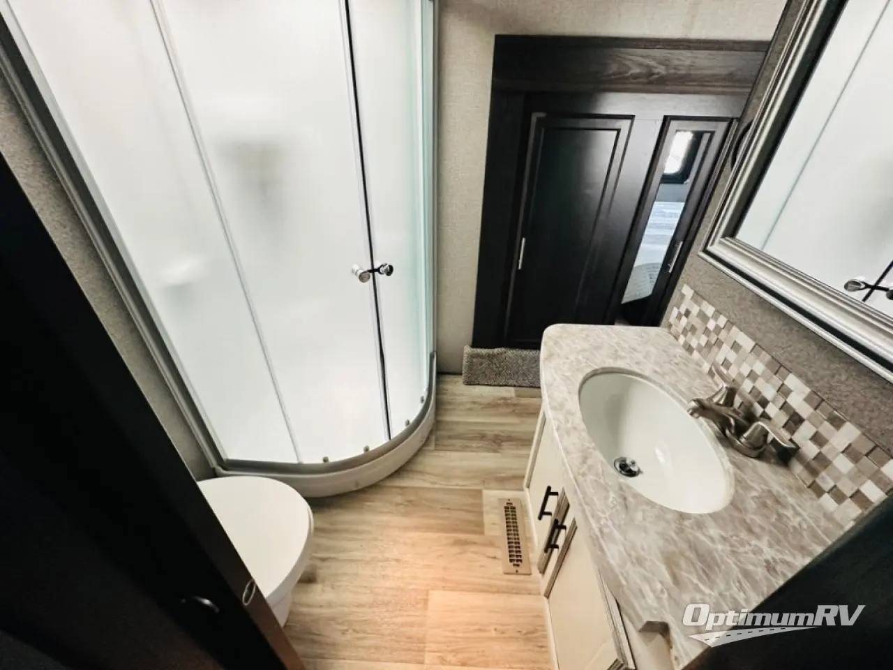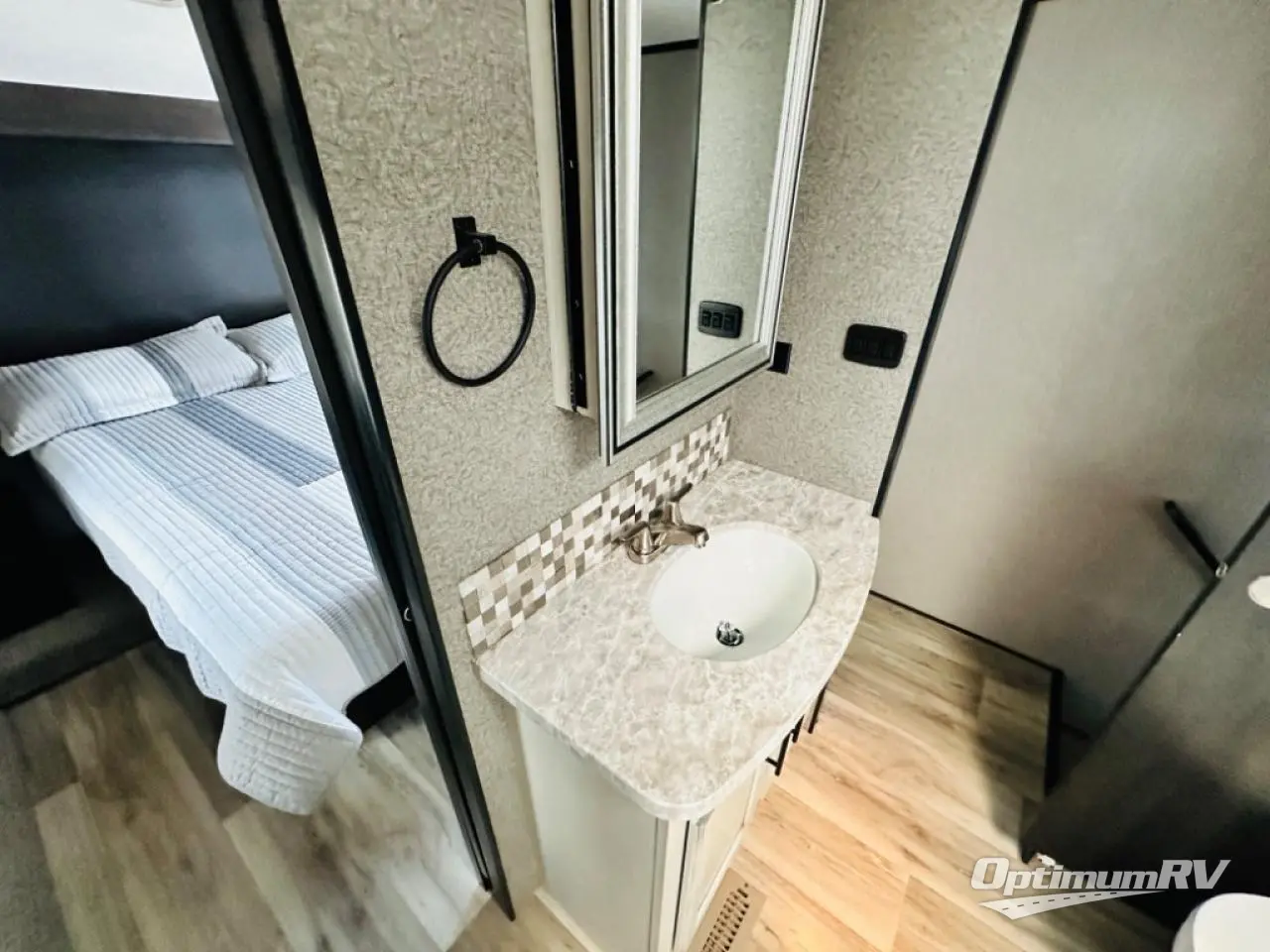 With each Jayco Eagle HT fifth wheel or travel trailer, you will enjoy all-season camping with the Climate Shield zero-degree tested weather protection that includes a fully enclosed and heated underbelly. The industry-exclusive HELIX Cooling System with a 15,000 BTU "Whisper Quiet" A/C system provides a quieter and more efficient system for your comfort. These models include the JAYCOMMAND Smart RV system powered by BMPRO which allows you to control your unit's functions right from your smartphone or tablet. Inside, you will enjoy the residential queen Serta mattress with under-bed storage, the bathroom skylight to allow natural light in, the stainless steel kitchen sink, and dual USB charging ports in the kitchen and bedroom so that you can keep your gadgets charged and ready to go.