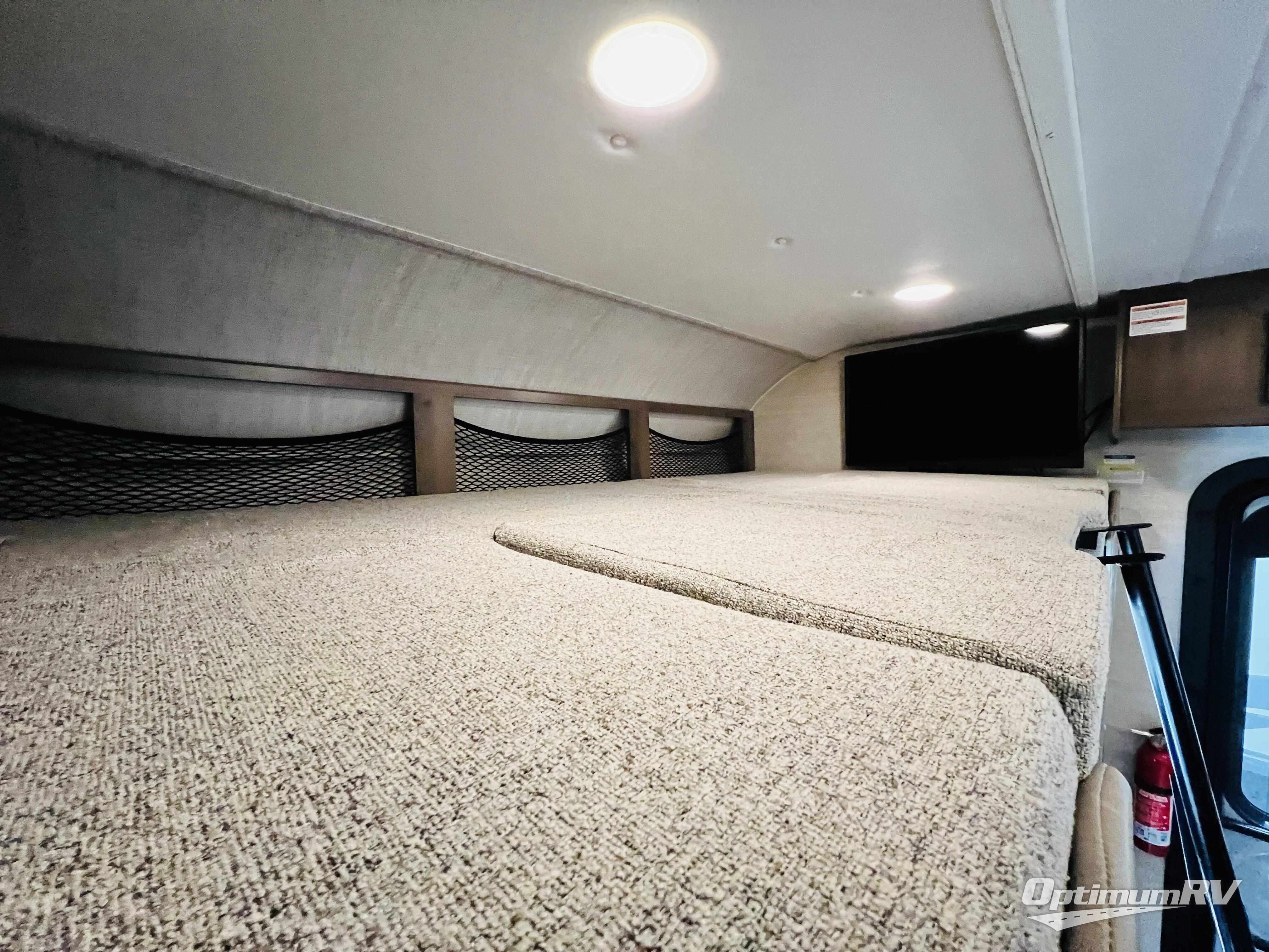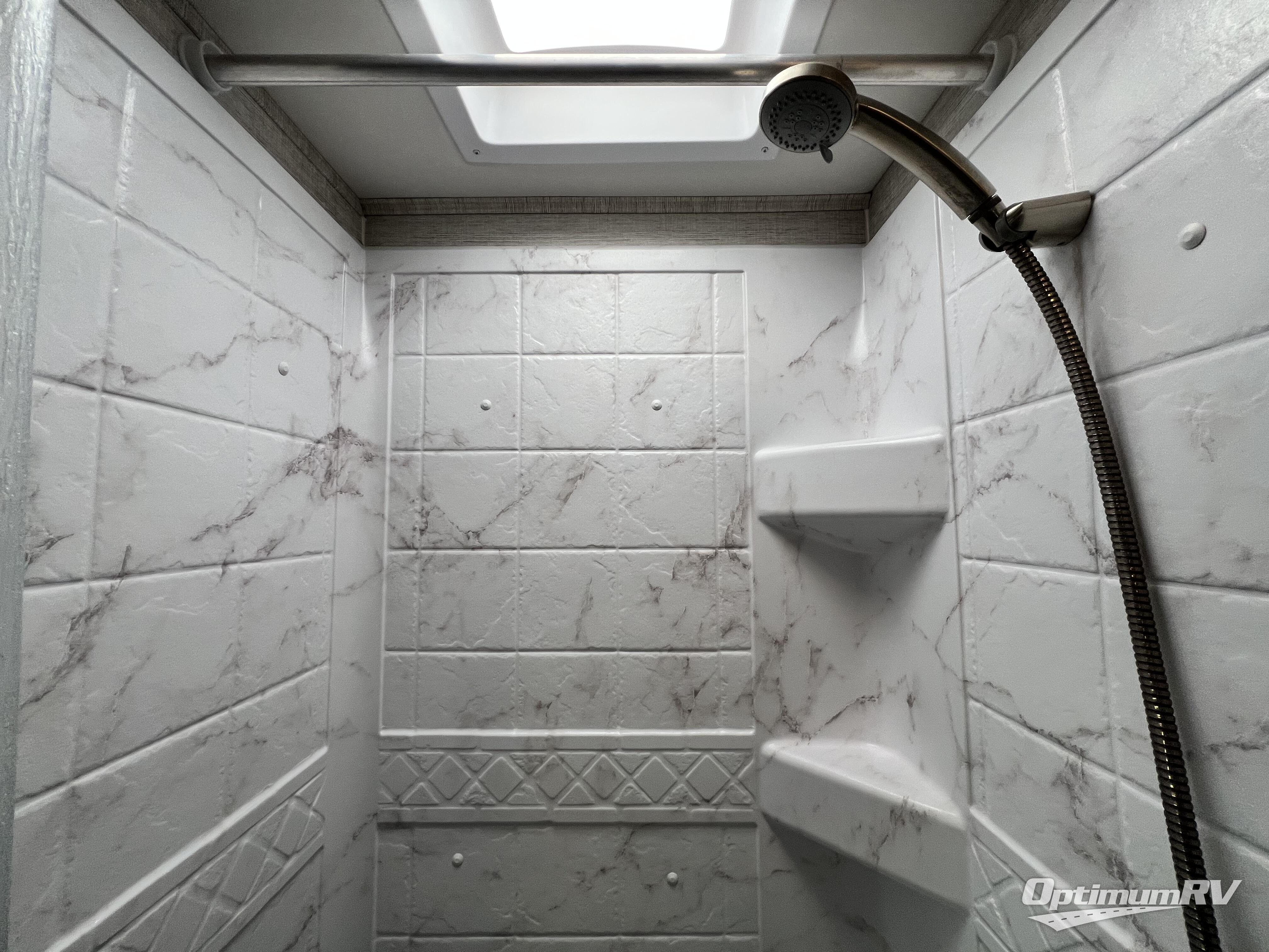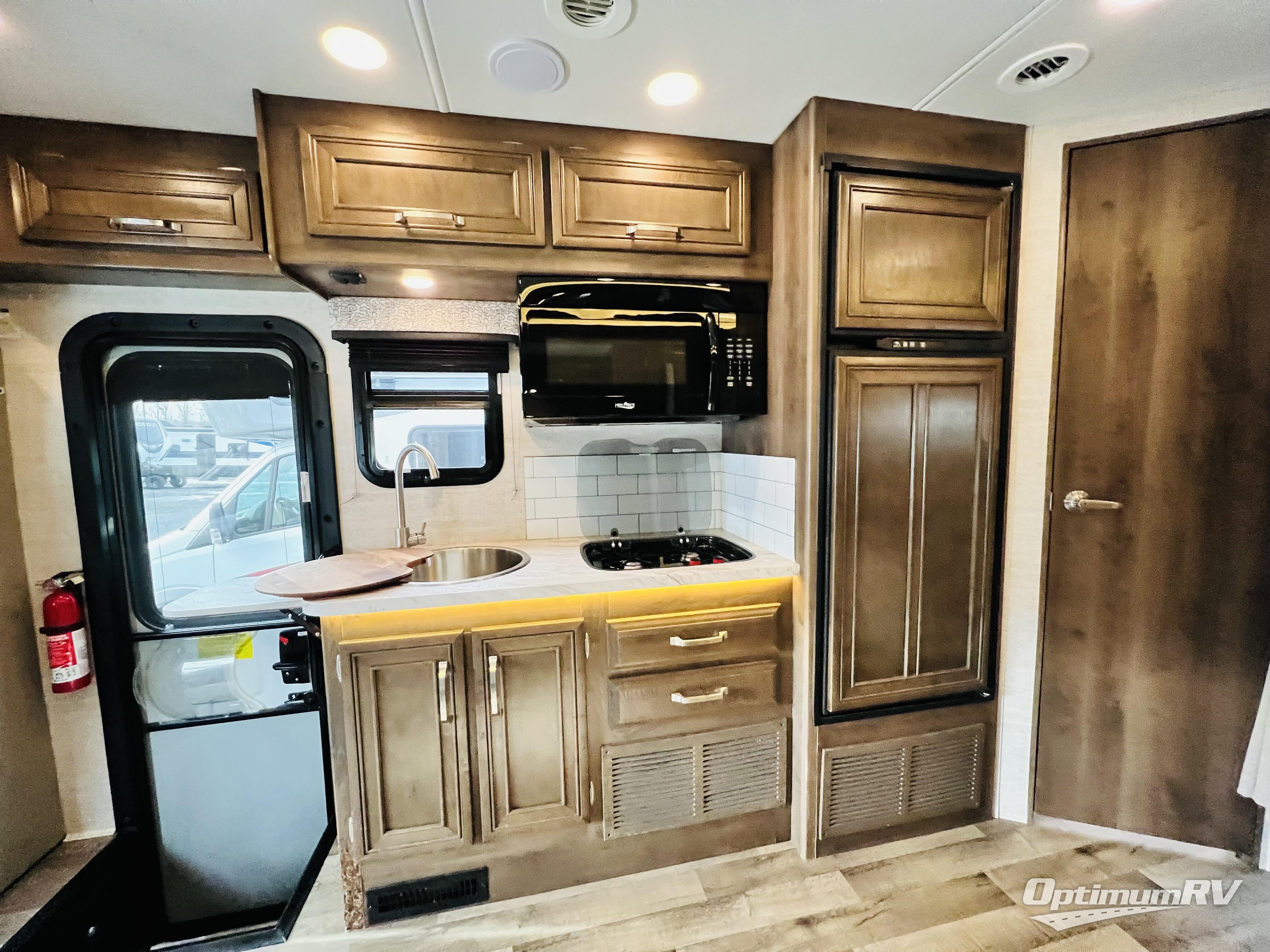 With any Melbourne Class C diesel motorhome by Jayco, the construction includes a one-piece, seamless fiberglass front cap, a Stronghold VBL vacuum-bonded laminated roof, floor and sidewalls, and fiberglass exterior walls with vinyl graphics. The driver will appreciate the heated, remote-controlled, side view mirrors, and the backup and side-view cameras when moving down the road as well as parking into the campsite. Other features that stand out include the entrance door with the industry's largest travel-view window, the 750 lb. capacity cab-over bunk for extra sleeping space, and the Sony infotainment center with Apple CarPlay and Android Auto helping you find your campgrounds easily. The high-intensity, LED ceiling lights, the 83" interior ceiling height with a padded vinyl ceiling for spacious living, and the 12V USB charging station in the dinette area to keep the electronics ready are a few more reasons to own a Melbourne.