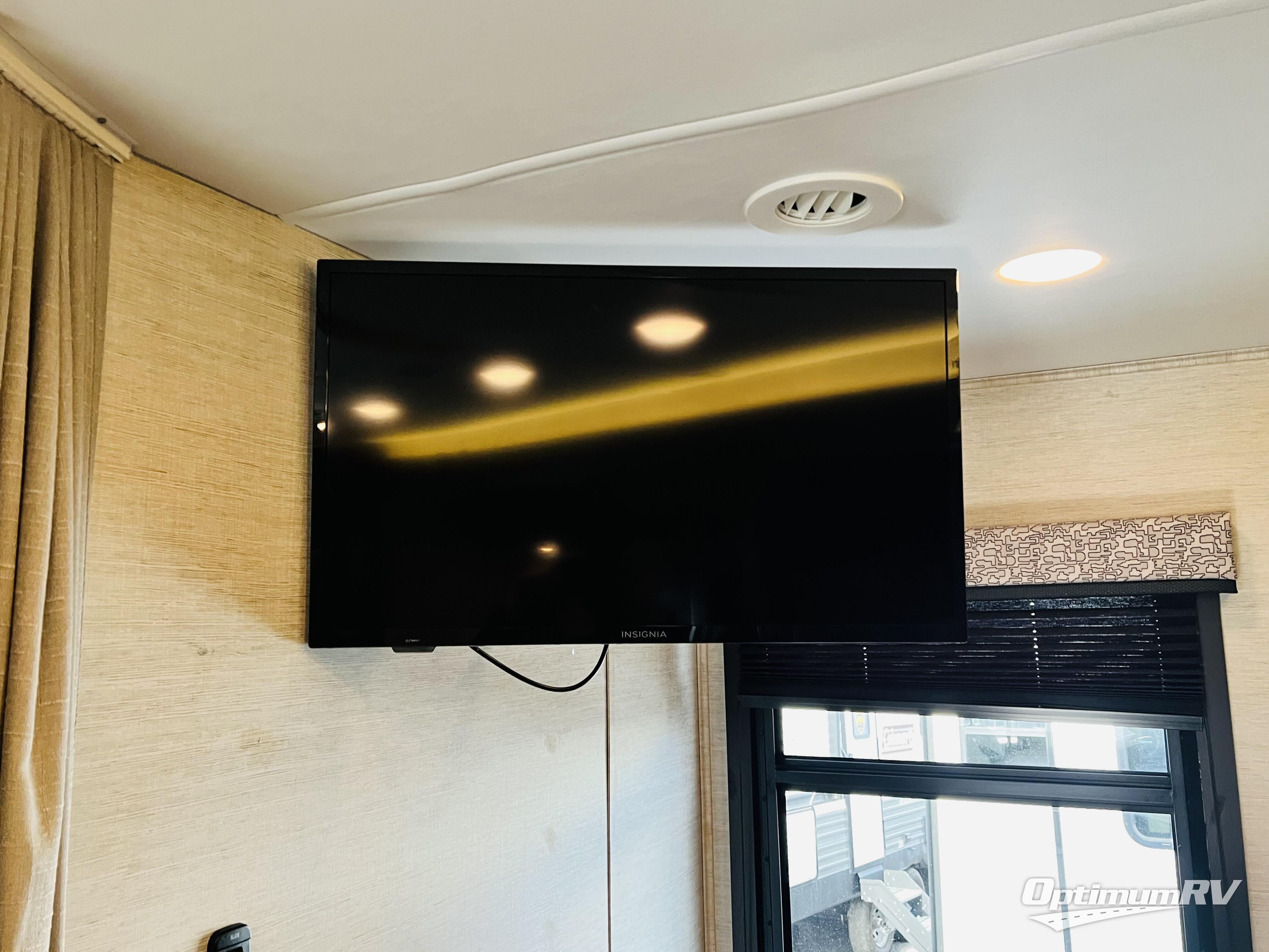 A couple or smaller family will enjoy this spacious coach with a full wall slide out allowing you to move easily from the front swivel driver and passenger seats to the rear where you will find the walk-around queen bed for a good night's rest after traveling. You can store your clothes in the wardrobe and stay clean using the full bathroom only steps away. The chef will have a pantry to stow away dry ingredients, an 8 cu. ft. refrigerator for the cold items and a Suburban two-burner cooktop plus convection microwave to make warm meals. The LED TV up front will provide inside entertainment and the exterior 14' electric awning offers an outdoor living area to visit with other RVers.