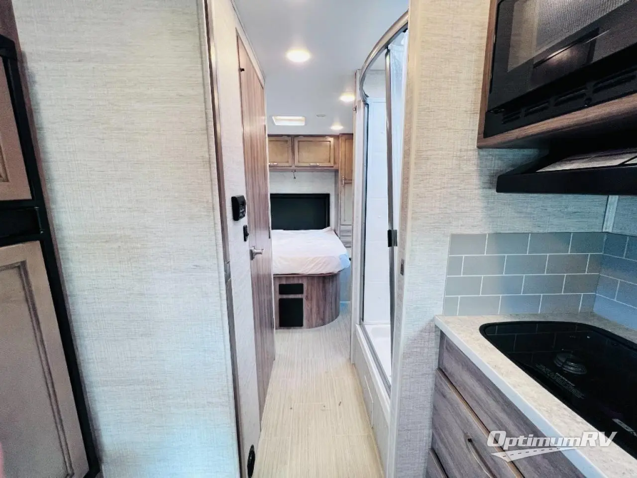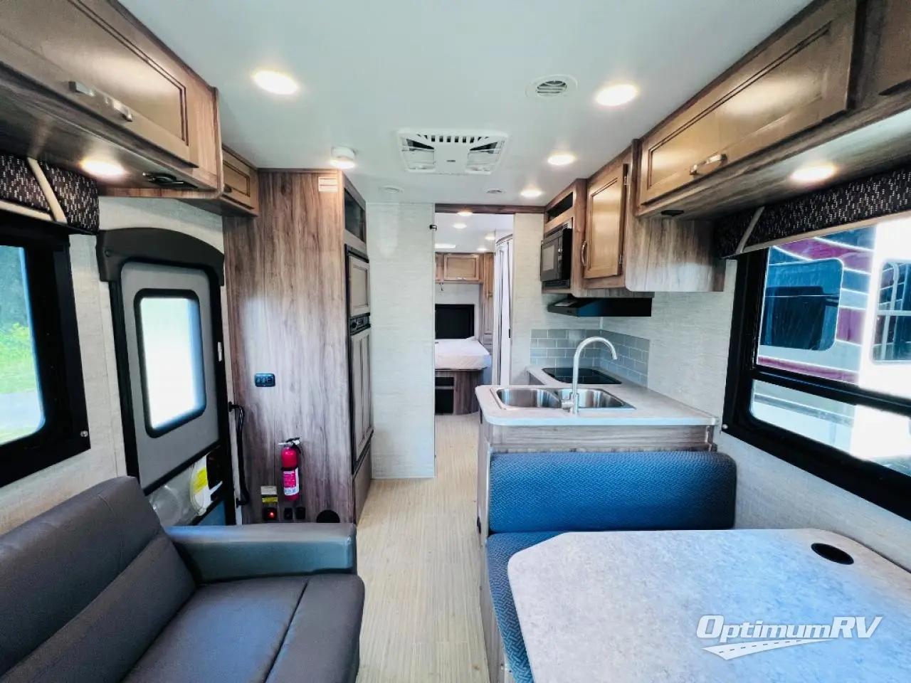 This motorhome will feel just like home with its private bedroom and walk-around queen bed. The independent shower is right across from the private toilet and sink so you and your spouse can both freshen up at the same time. Bring the grandkids along and let them sleep on the overhead bunk that has a 750 lb. capacity. There is also a booth dinette and a sofa that can be converted to sleeping space. Preparing meals each day will be a snap with the two burner cooktop, the convection microwave, plus there is a 6 cu. ft. flush-mount refrigerator to store your perishables.