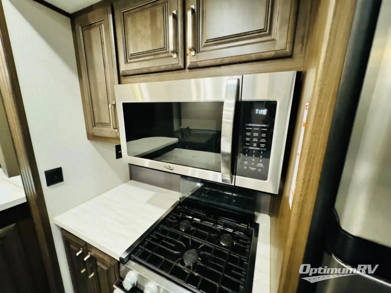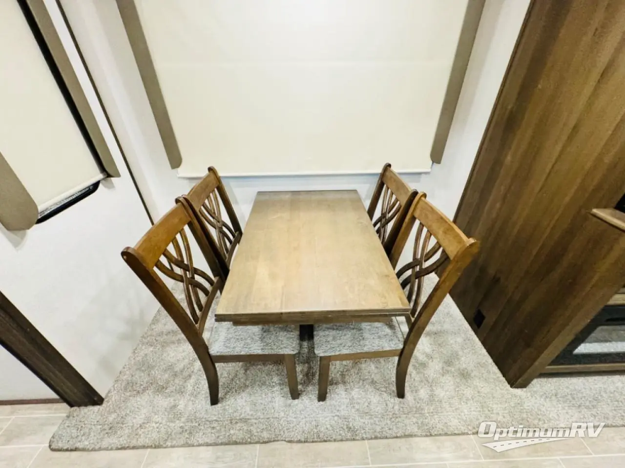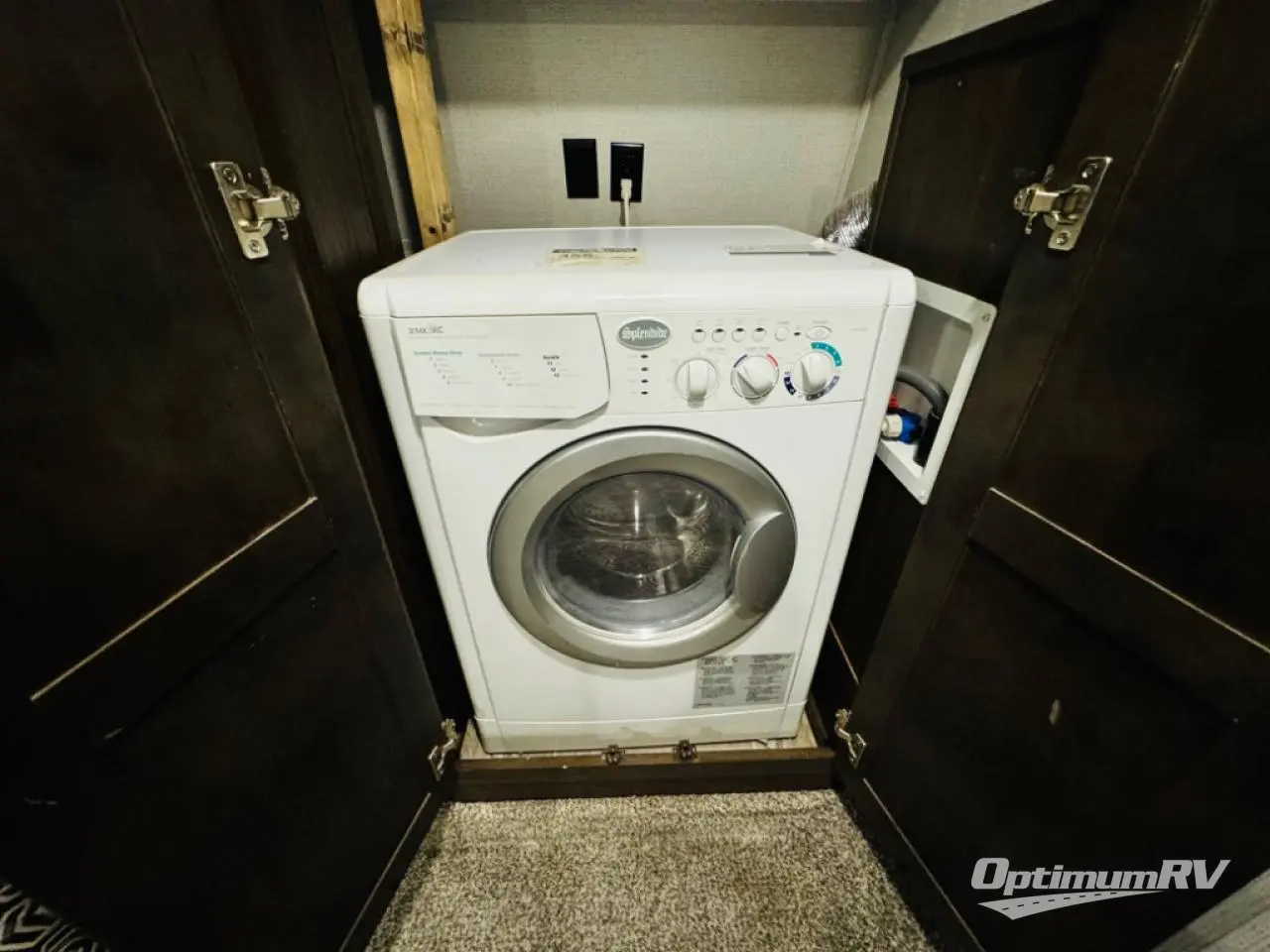 This grand kitchen offers the cook their own space to prepare and serve meals from the large L-shaped counter peninsula bar with stools, and the large pantry and curio will come in handy as well. Dining is also available at the free standing dinette with four chairs and some might even enjoy sitting on the hide-a-bed sofa sleeper, and theater seats that are equipped with heat, massage, LED lights and USB charging. The master bedroom offers a king bed with storage underneath and lots of storage plus a space prepped for a washer/dryer option. Having a separate living area from the kitchen gives everyone their space and outside there are two power awnings offering an outdoor living area protected from the elements. The cook will enjoy the outside kitchen amenities, and if you need more cold storage, add the optional residential refrigerator.