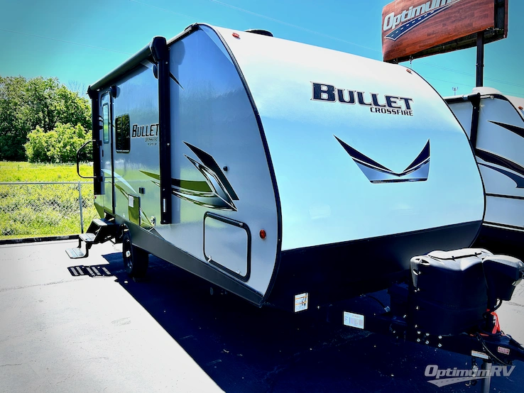 This Bullet Crossfire travel trailer is the perfect complement to all of your upcoming travel plans! Because of the single slide, the interior feels spacious as you sit back and relax on the 68" tri-fold sofa and set your cup of coffee on the end table. The stainless steel sink and two-burner range in the kitchen will ensure that you can create delicious meals while you're out exploring, and the radius shower in the back will give you an area to get cleaned up whenever you need.