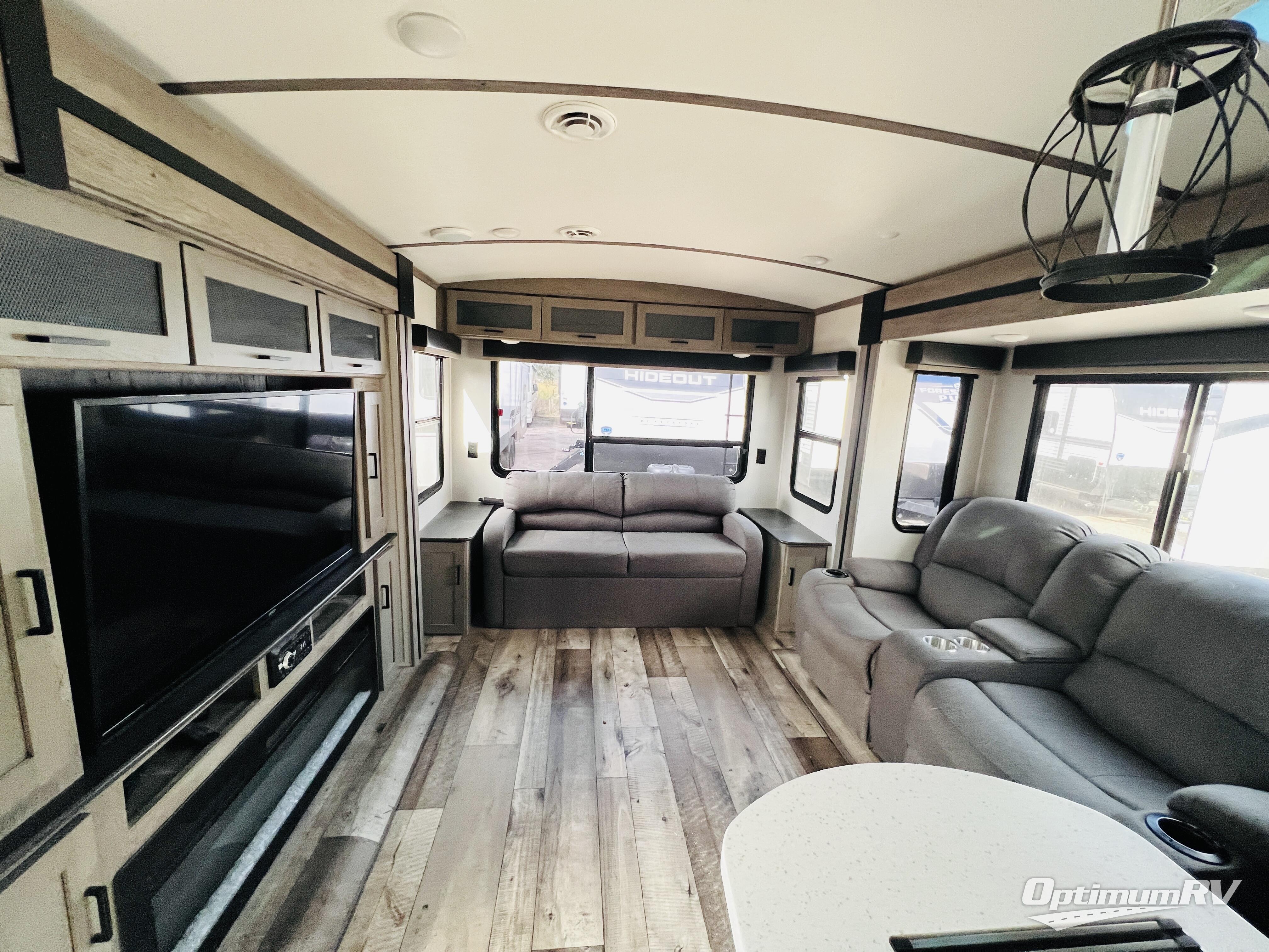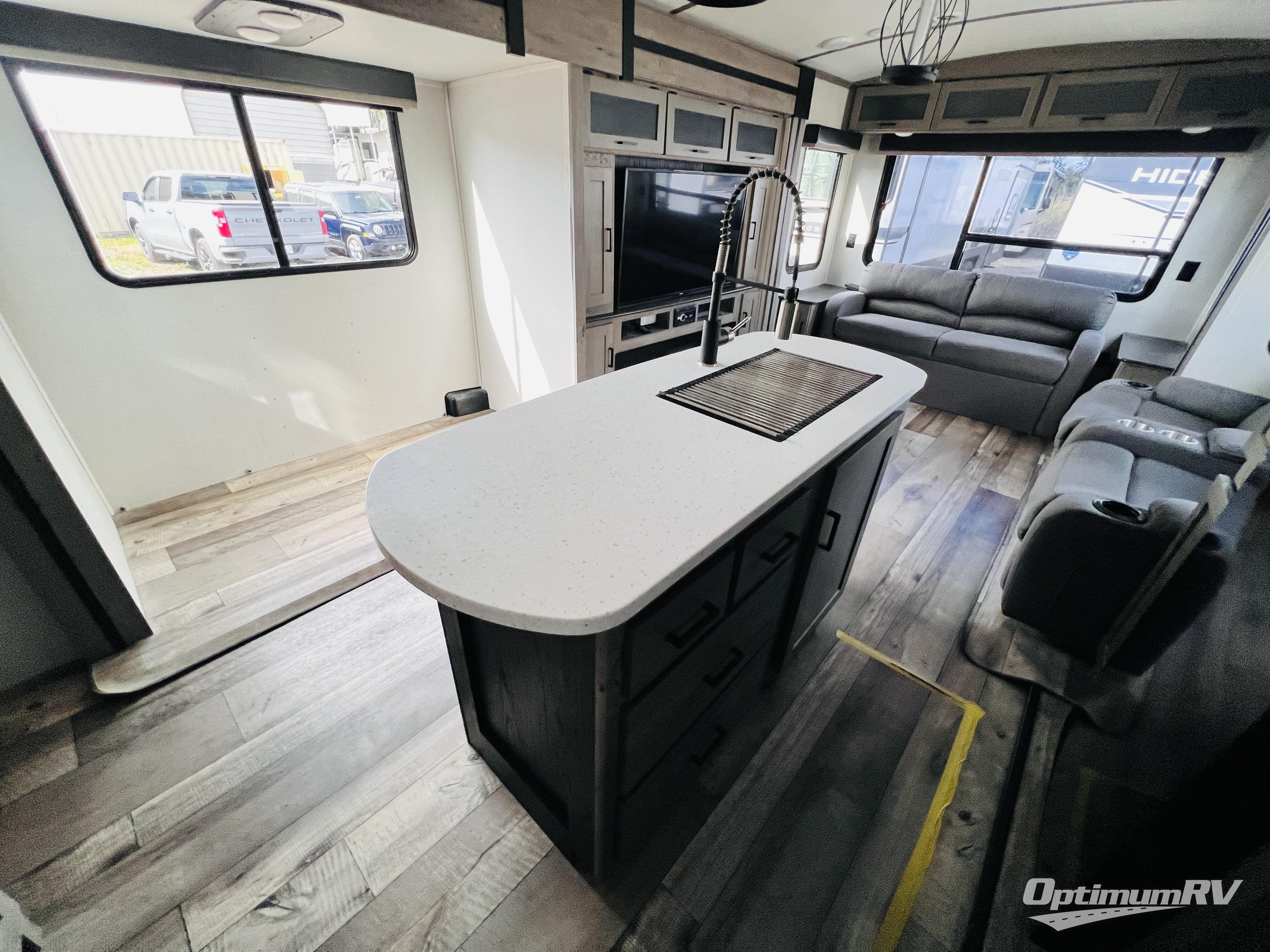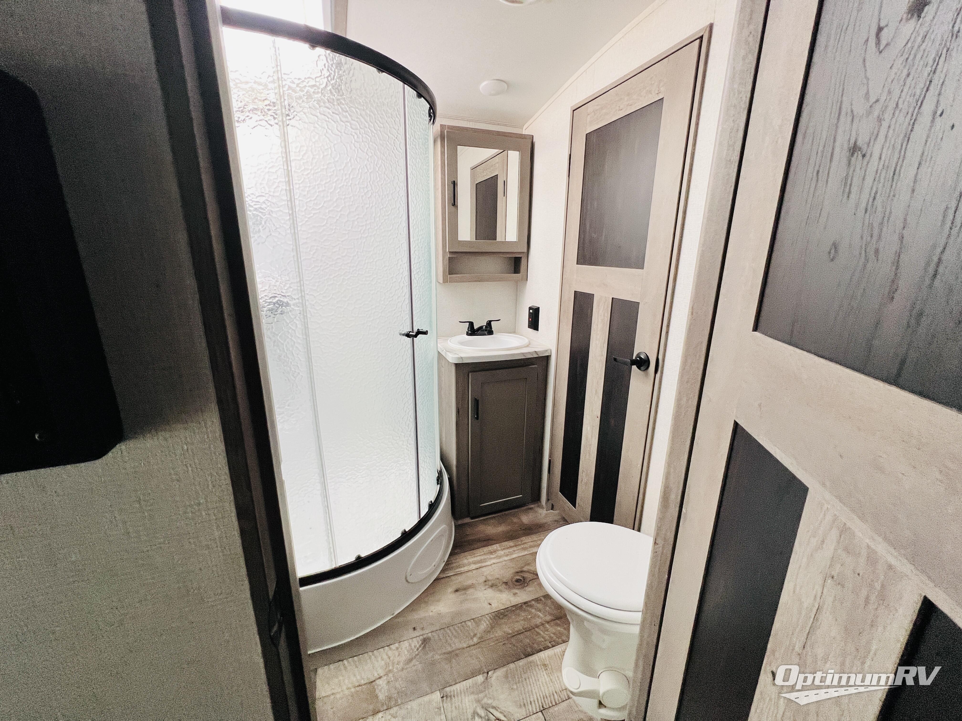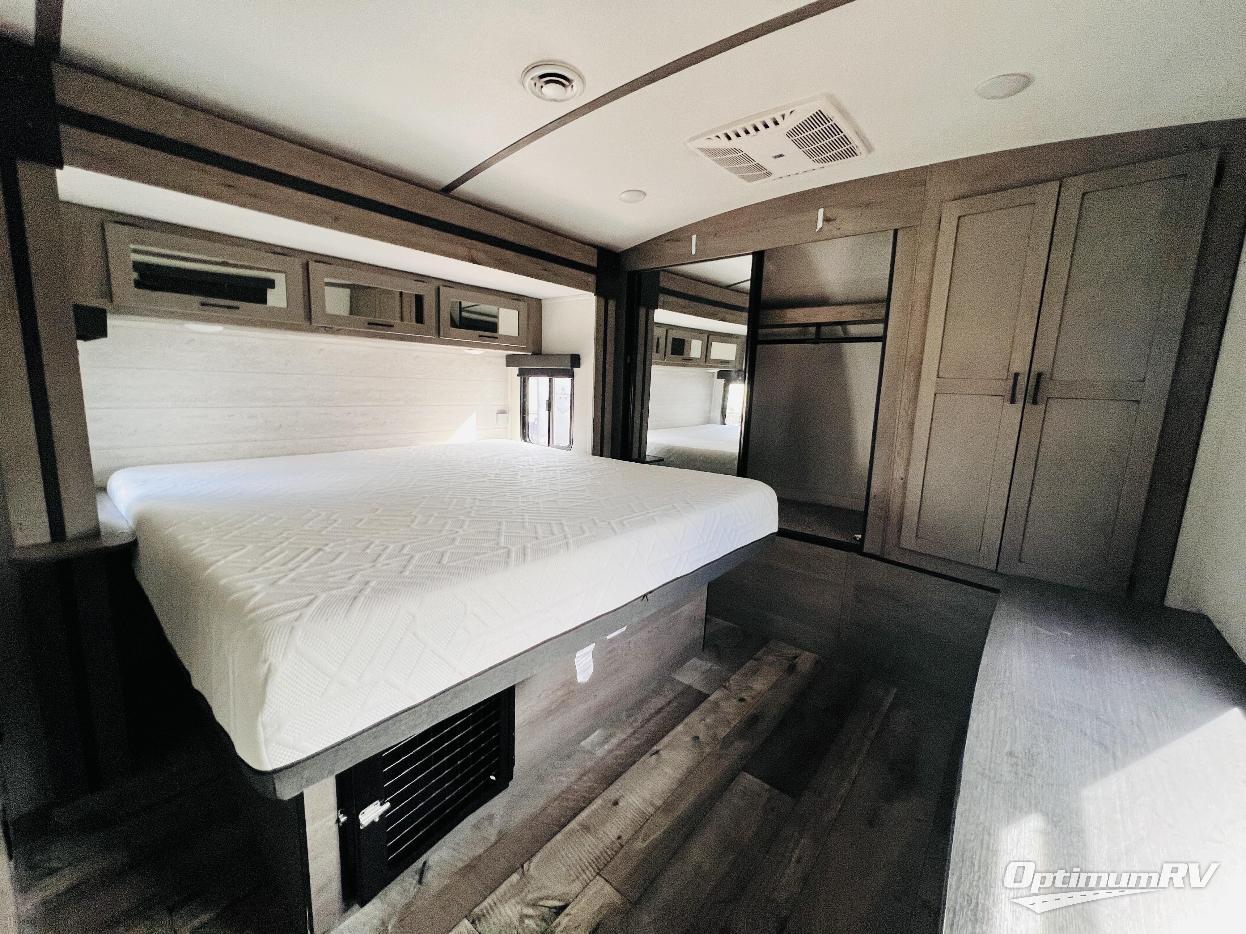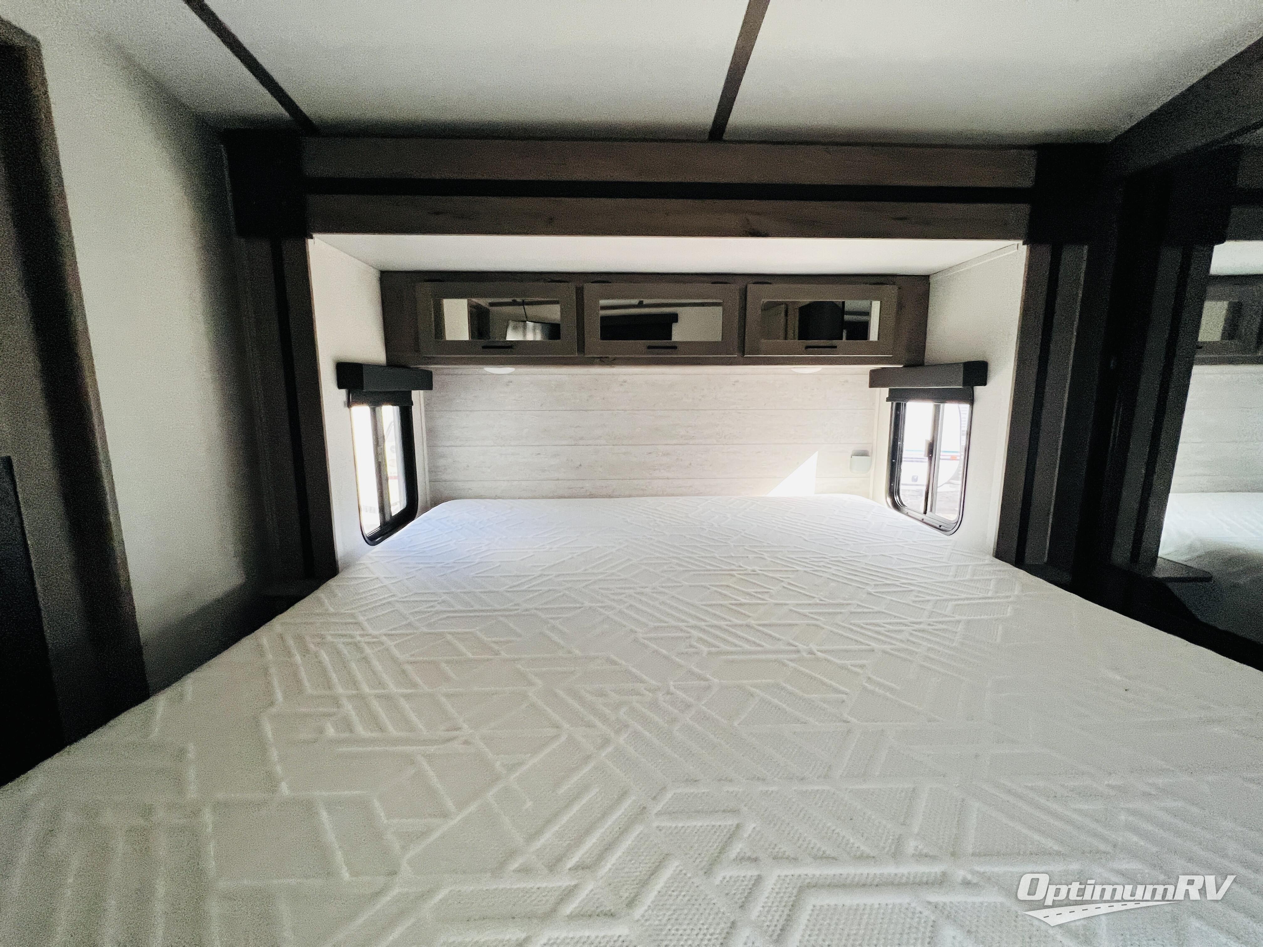 With any Keystone Outback travel trailer and toy hauler you will enjoy a lighter wallboard and white countertops for the modern farmhouse feel with more refined flooring, furniture, and cabinet hardware. You can extend your camping season thanks to the Astro-foil barrier added to the fully enclosed underbelly with ducted heat, the Coleman-Mach Quiet Series A/C offering a significant reduction of in-cabin sound levels, and an upgraded 10 cu. ft. 12V GE refrigerator to mention a few notables. The Lippert Step Above entry steps, the water docking station, the rear ladder, and the HyperDeck high performance, water-resistant RV floor are a few more reasons you will want to own an Outback for years to come!