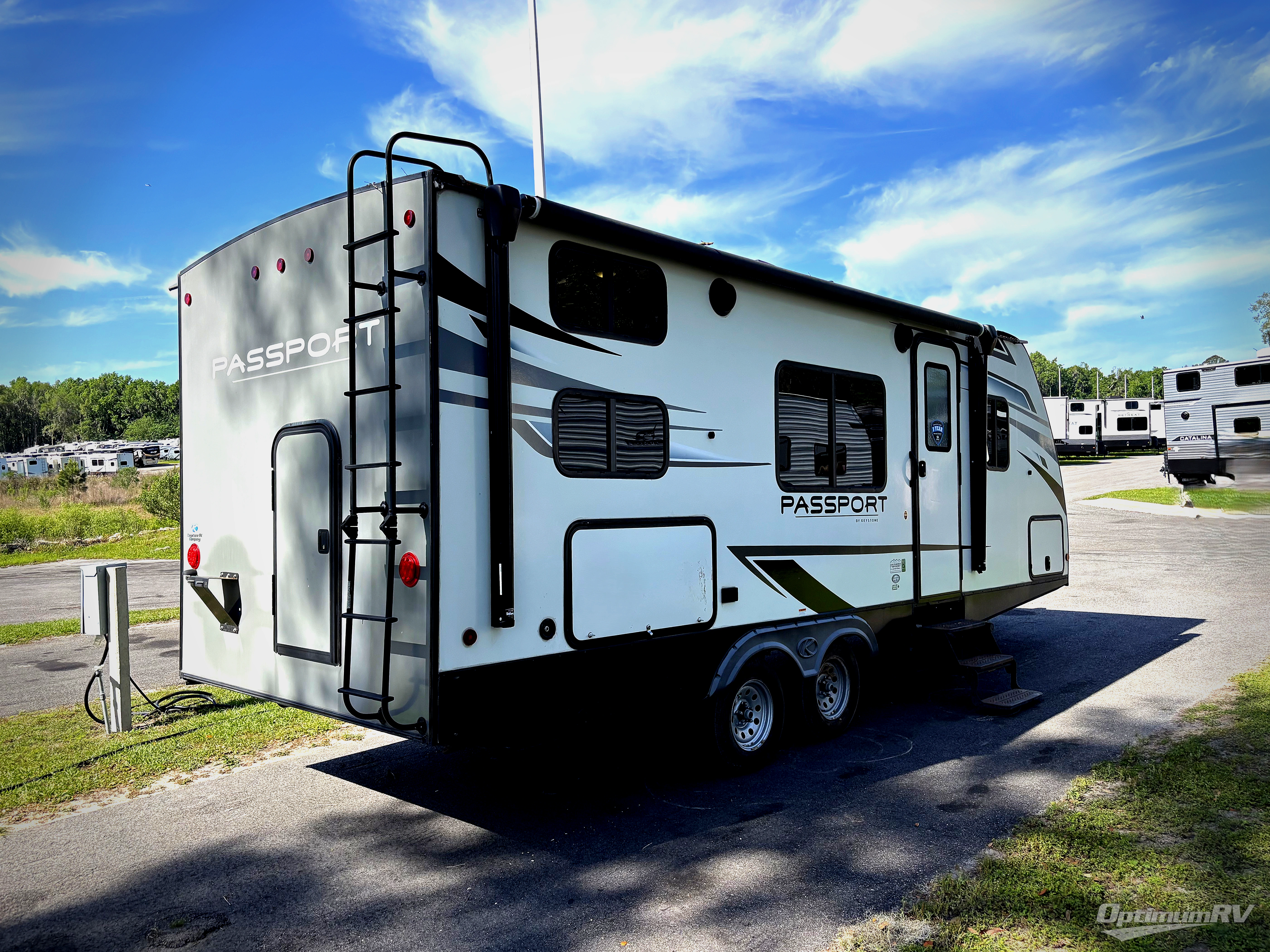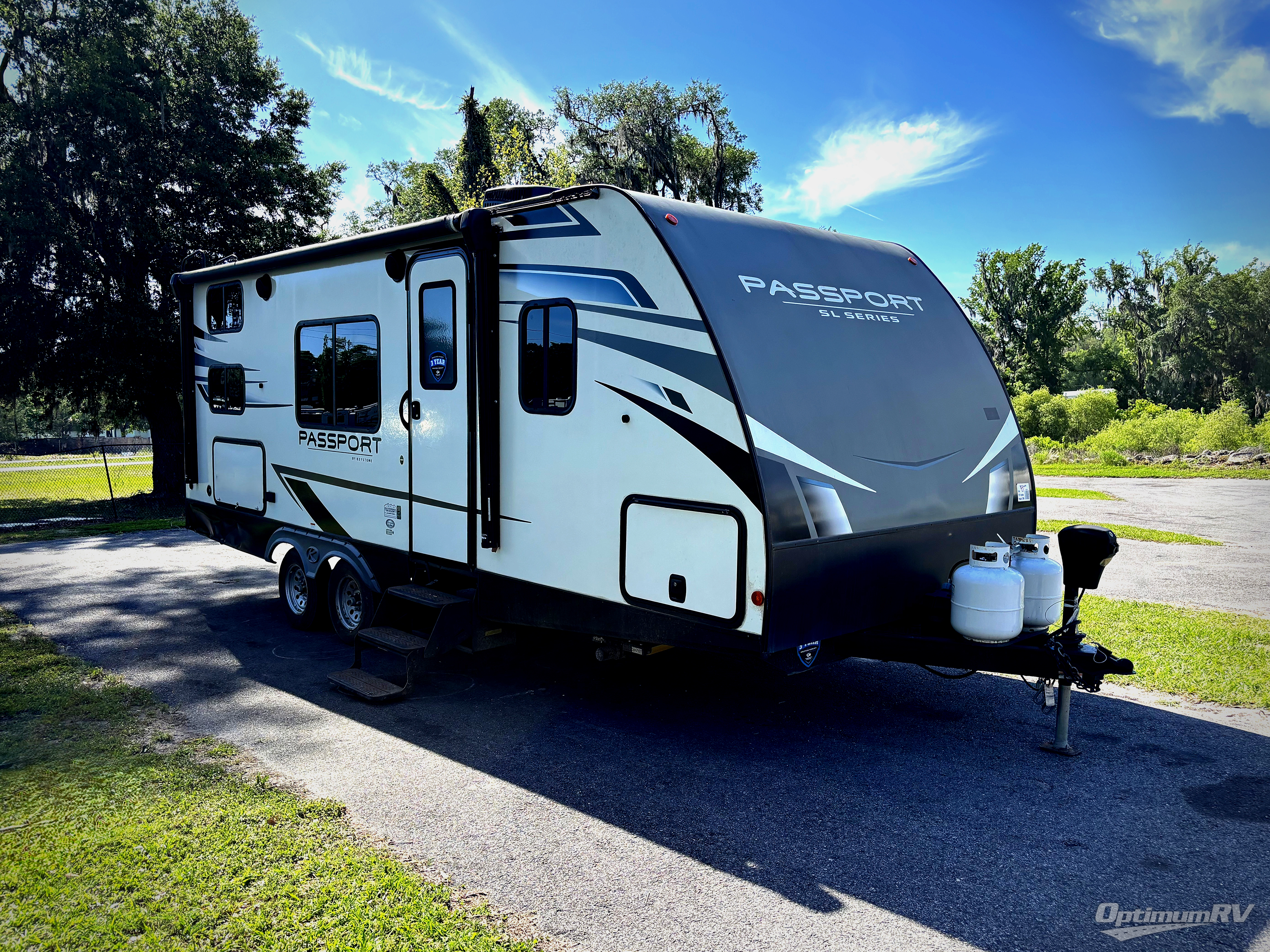 The Passport SL travel trailers by Keystone RV come in a compact design with travel-friendly lengths that are lightweight and easy to tow behind many smaller crossover SUVs. You will find several residential-style features such as durable Armstrong vinyl flooring, upgraded window treatments and valances, and bathroom countertops. The exterior shower with hot and cold water is very useful as you get cleaned up before entering the RV, wash your pets, or even rinse a few dishes outside. The Passport also now contains a HyperDeck flooring system which is a high-performance, water-resistant RV floor that comes as a breakthrough design from the Keystone Innovation Lab. This flooring is more resilient, stronger, and lighter than traditional laminated wood construction.