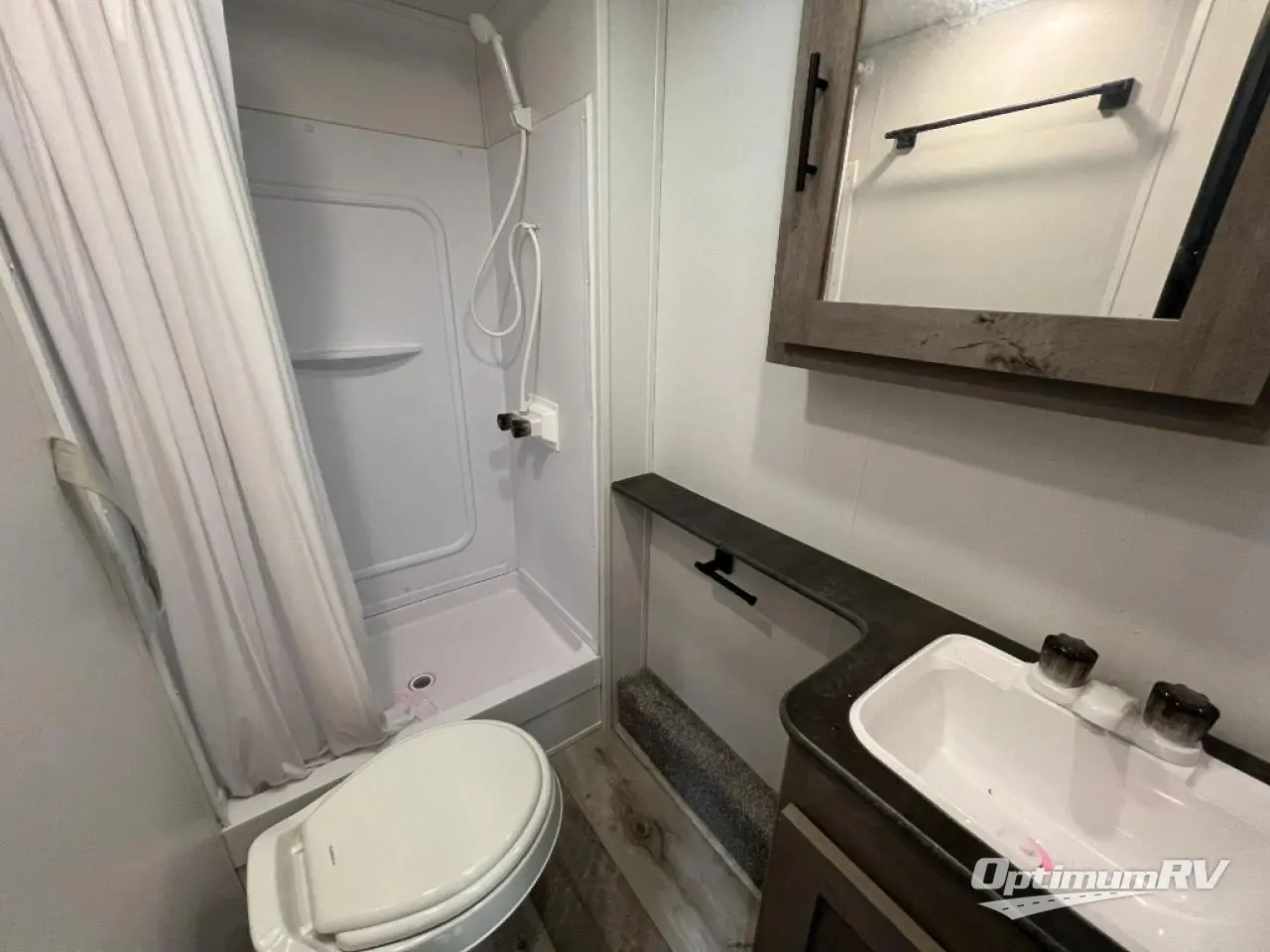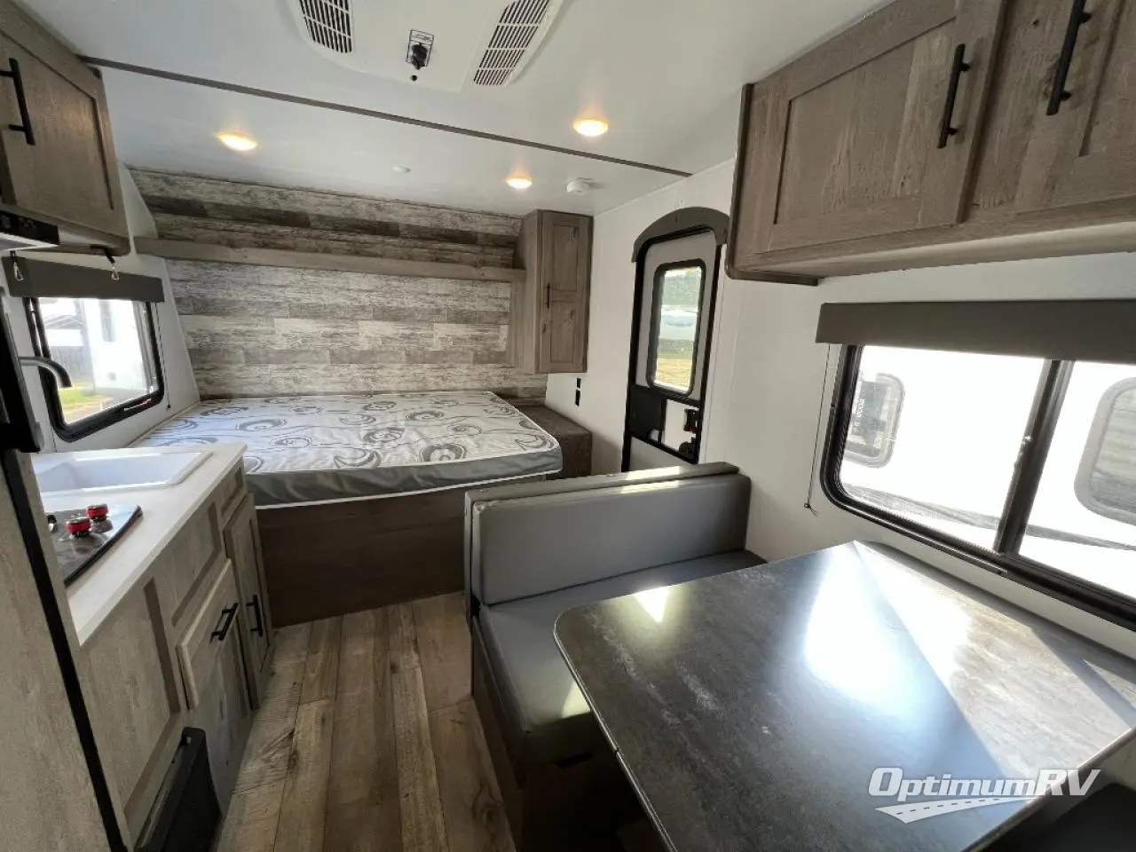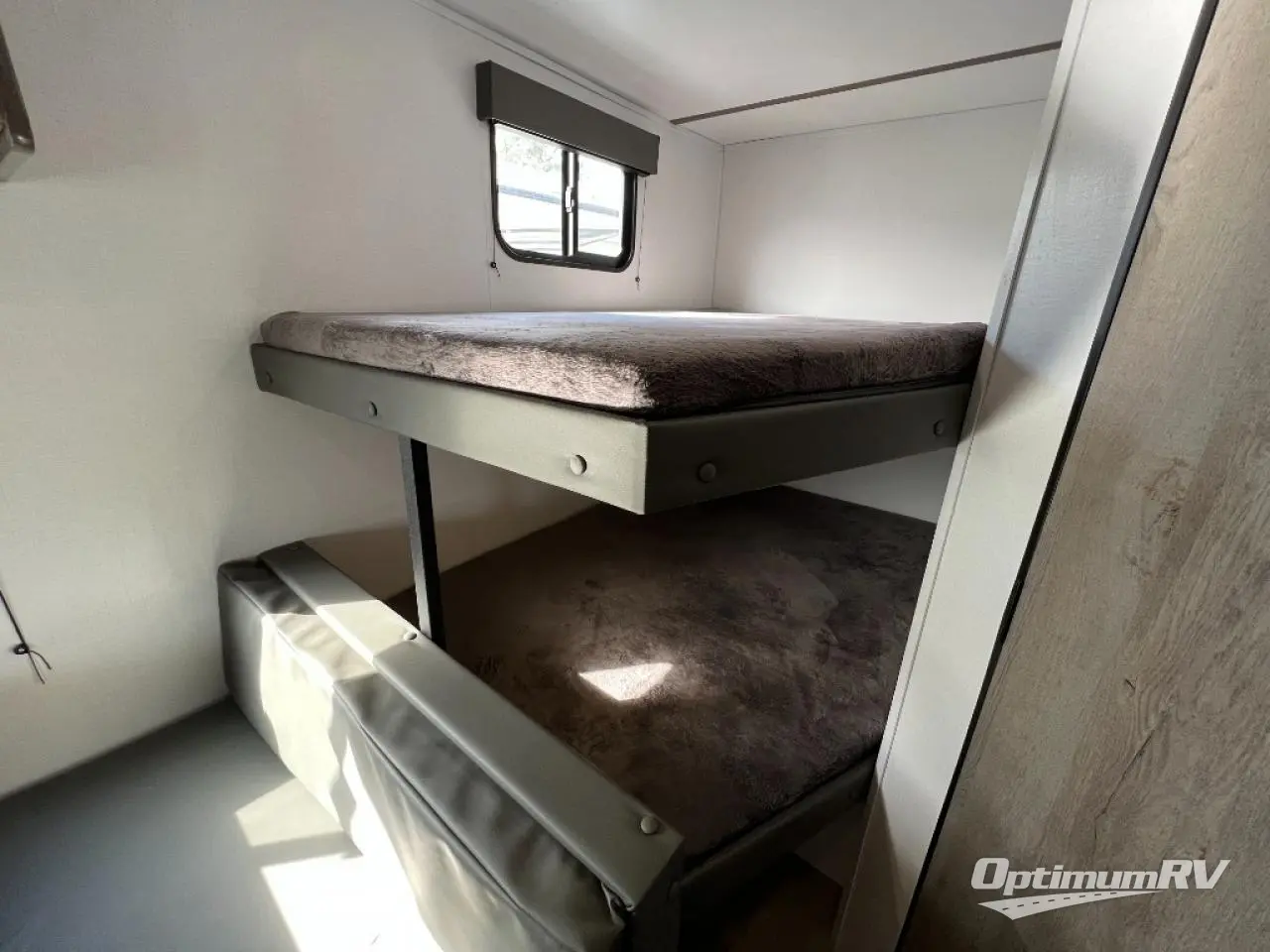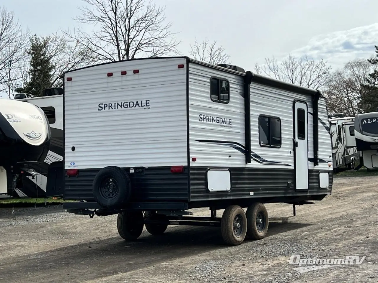 If you're ready for camping near or far, you will want an easy to tow, lightweight Keystone Springdale Mini travel trailer. These models include a power awning with LED lights, a pass-through storage compartment for all your gear, and LCI SolidStep entry steps for your convenience. The interior is made bright and open with a Whitewashed brick accent wall, larger windows, and lighter vinyl flooring throughout. You will find many convenient storage solutions, such as wall-mounted cargo nets next to each USB port for your tablet, camera, or phone, two shelves above the bed for your books, and easy access storage under the sofa or bunks where applicable. These travel trailers also include safety measures for your peace of mind, including GFI receptacles, smoke and carbon monoxide detectors, a fire extinguisher, plus more!