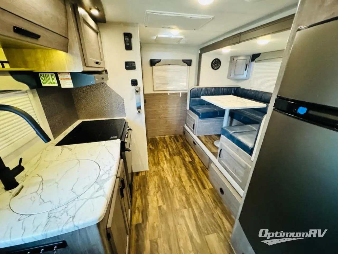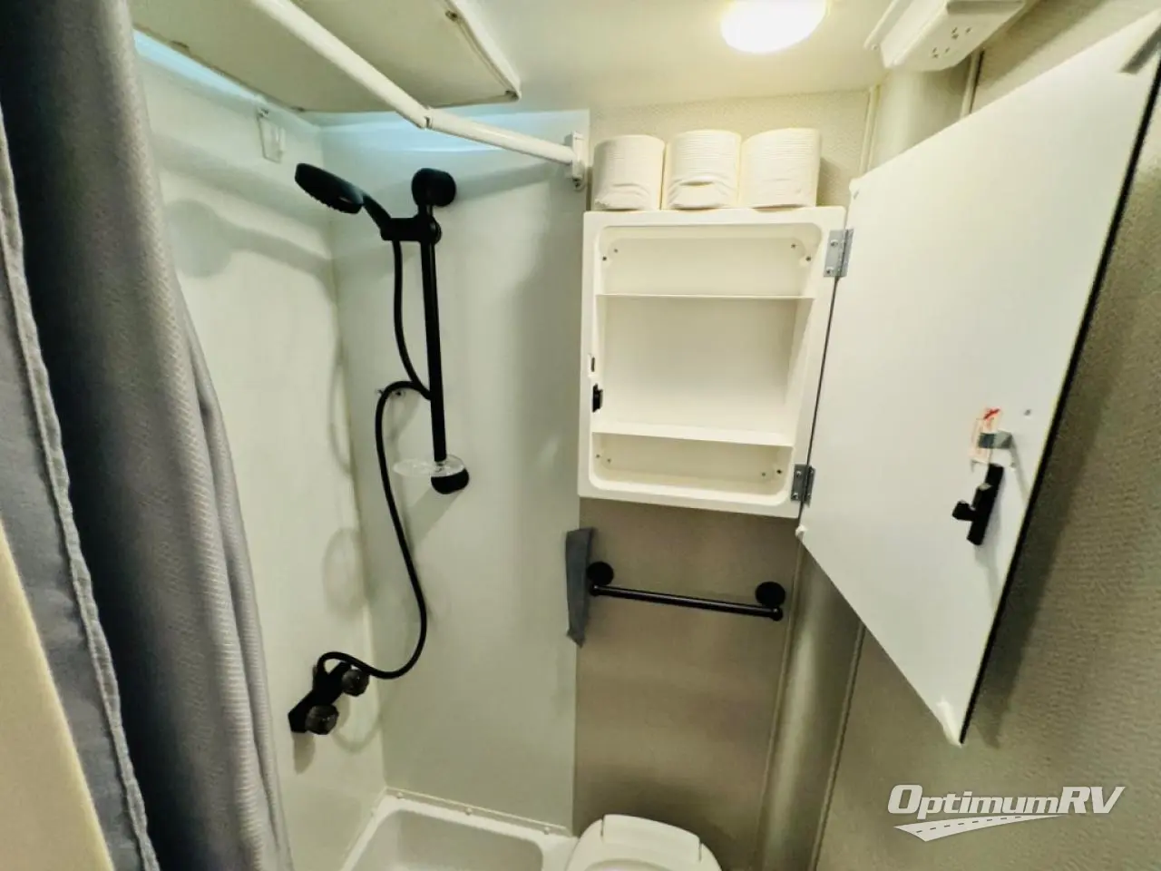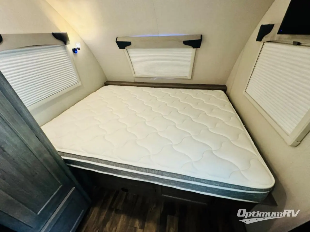You will love the added interior space you have in this travel trailer thanks to the slide out U-shaped dinette. The dinette can be converted to a 46" x 78" bed for two overnight guests, while you and your spouse sleep on the front queen bed. Prepare all your meals on the three burner range, and you can choose to add the optional stainless steel "flat bed" microwave oven for meals on-the-go. This model includes a convenient dry bath with a skylight, a medicine cabinet with a mirror, plus a tub to make bath time for the little ones easier than ever. If you enjoy spending more time outdoors, you may want to choose the optional 12' awning with LED lights and the optional pull-out storage tray for your hiking gear!