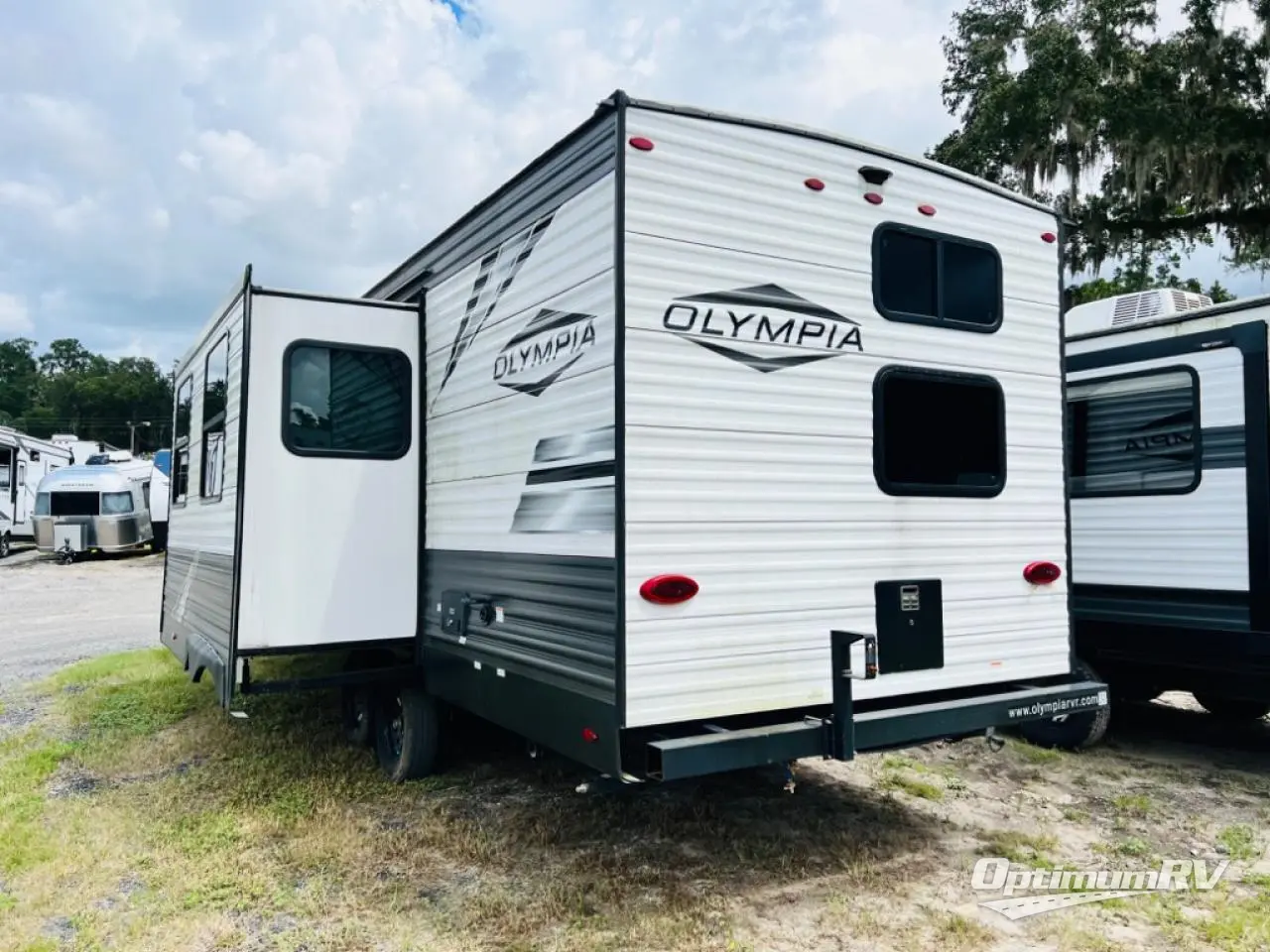 With any Olympia travel trailer you will enjoy years of use and memories thanks to the solid construction that includes a PVC roofing membrane, fiberglass insulation, and an enclosed, insulated and heated underbelly. You will appreciate the nitrogen filled radial tires and self-adjusting electric brakes with E-Z Lube axles for smooth towing, plus stabilizer jacks for easy set-up. Choose the optional electric stabilizer jacks for even more convenience! These travel trailers include an AM/FM/Bluetooth radio with indoor/outdoor zoned speakers so you can listen to your favorite tunes, and the power awning with LED lights will create an outdoor living space your whole group will love. Inside, you'll find roller blackout night shades, 75 lb. ball bearing drawer guides, hardwood cabinet doors, plus many more comforts to make you feel right at home!