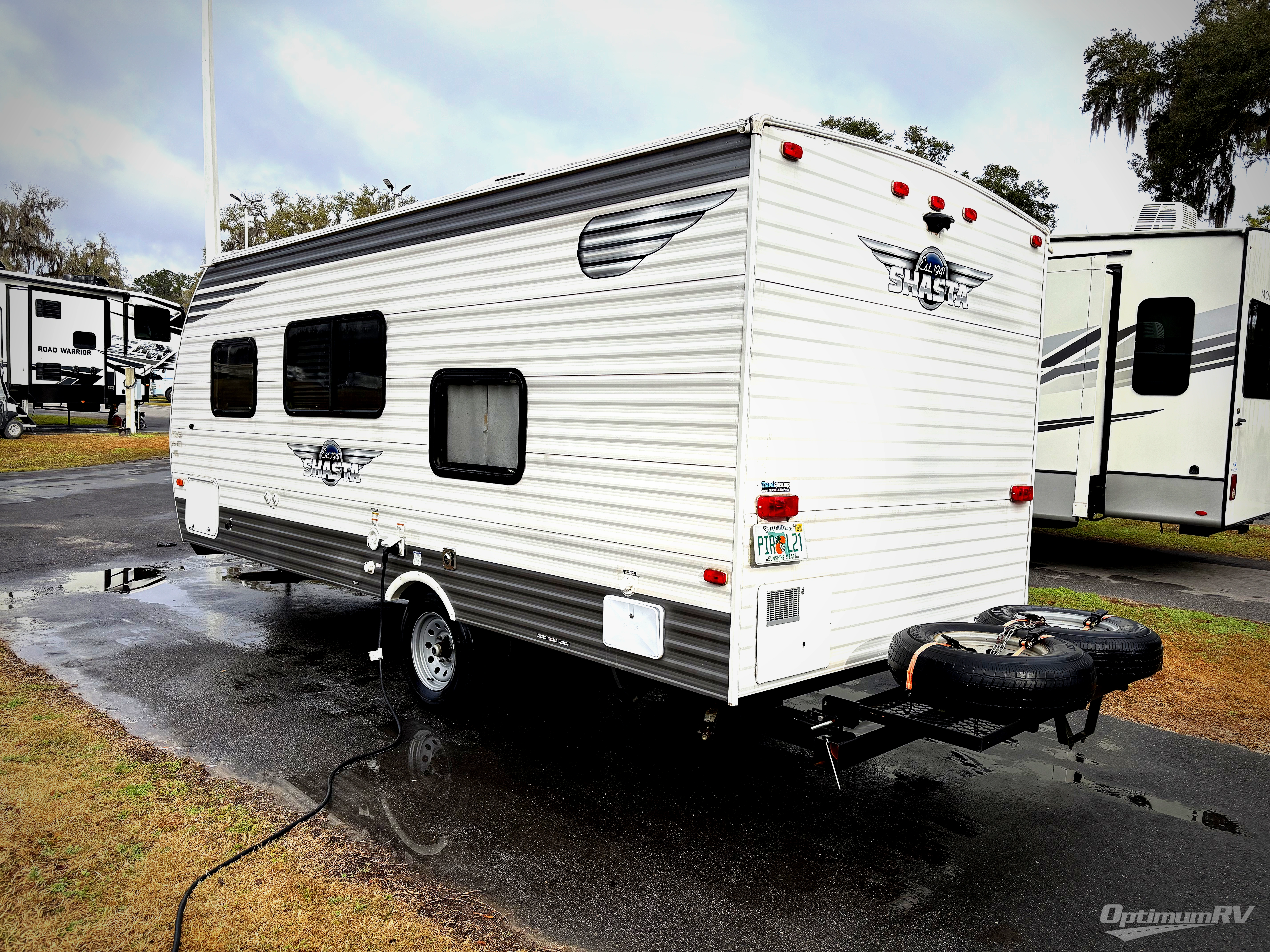 You are sure to find a Shasta travel trailer or toy hauler by Shasta RV that will fit your needs with a variety of models packed with convenience and value! They are constructed with a cambered steel I-beam frame, Diflex II TPO roof material, and a .024/.030 aluminum exterior skin with an 8' exterior width, plus the aerodynamic radius front profile makes it easier to tow. Their interiors are bright thanks to the LED lighting and are modern with woodgrain cabinetry and residential styling countertops. Each model includes a Shasta sanitize station so you can clean up after fishing, plus there is an outside shower to wash the mud off your hiking boots! Each one is also prepped for you to add extra conveniences like the back-up camera, a solar panel, and even Wi-Fi!