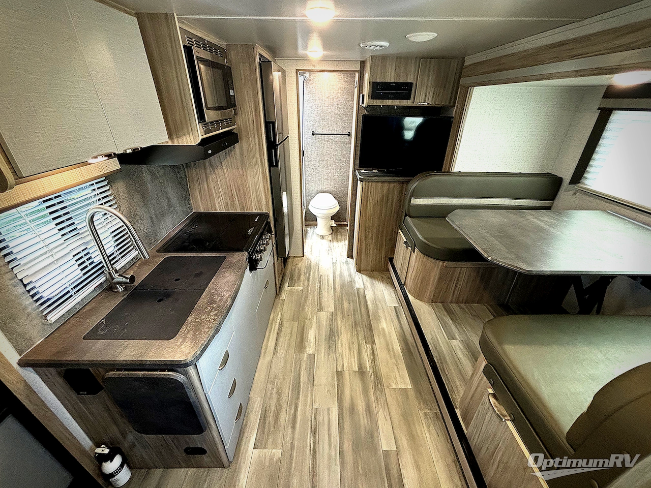 If you're looking for versatility then you need this travel trailer! Depending on the time of day you enter will determine whether you see the Murphy bed or the sofa up front. The 44" x 72" booth dinette slide can be used for eating your meals, playing games, and sleeping space at night. The full rear bathroom is equipped with everything you will need to freshen up each morning and provides a skylight above the shower and a wardrobe for your clothes and linens, plus a pocket door to save space. The LED TV is conveniently located so you can watch your favorite shows, plus the pantry offers a place to store your snacks and such for easy access. And the cook will love all the amenities to make meals including the handy flip-up counter.