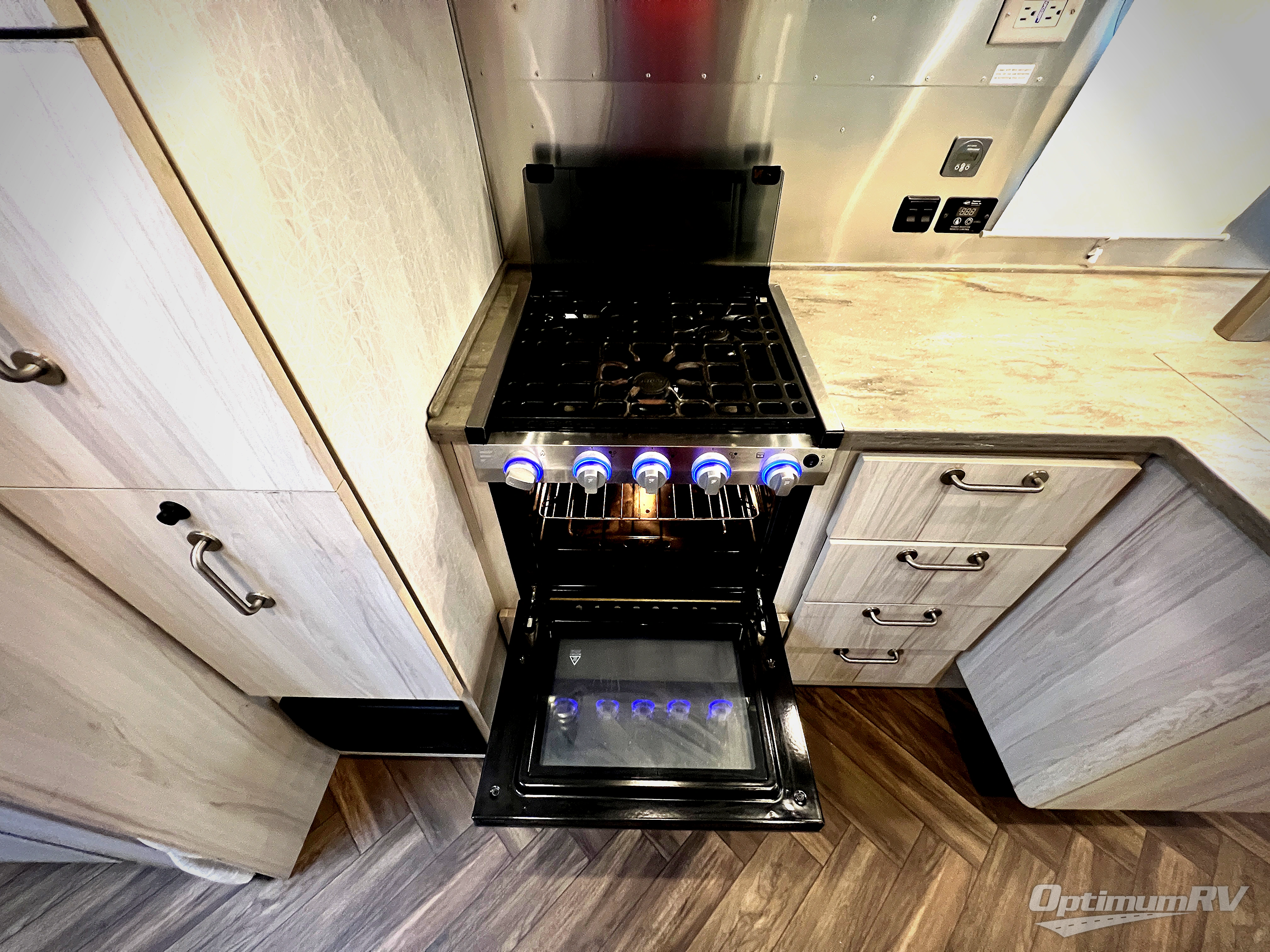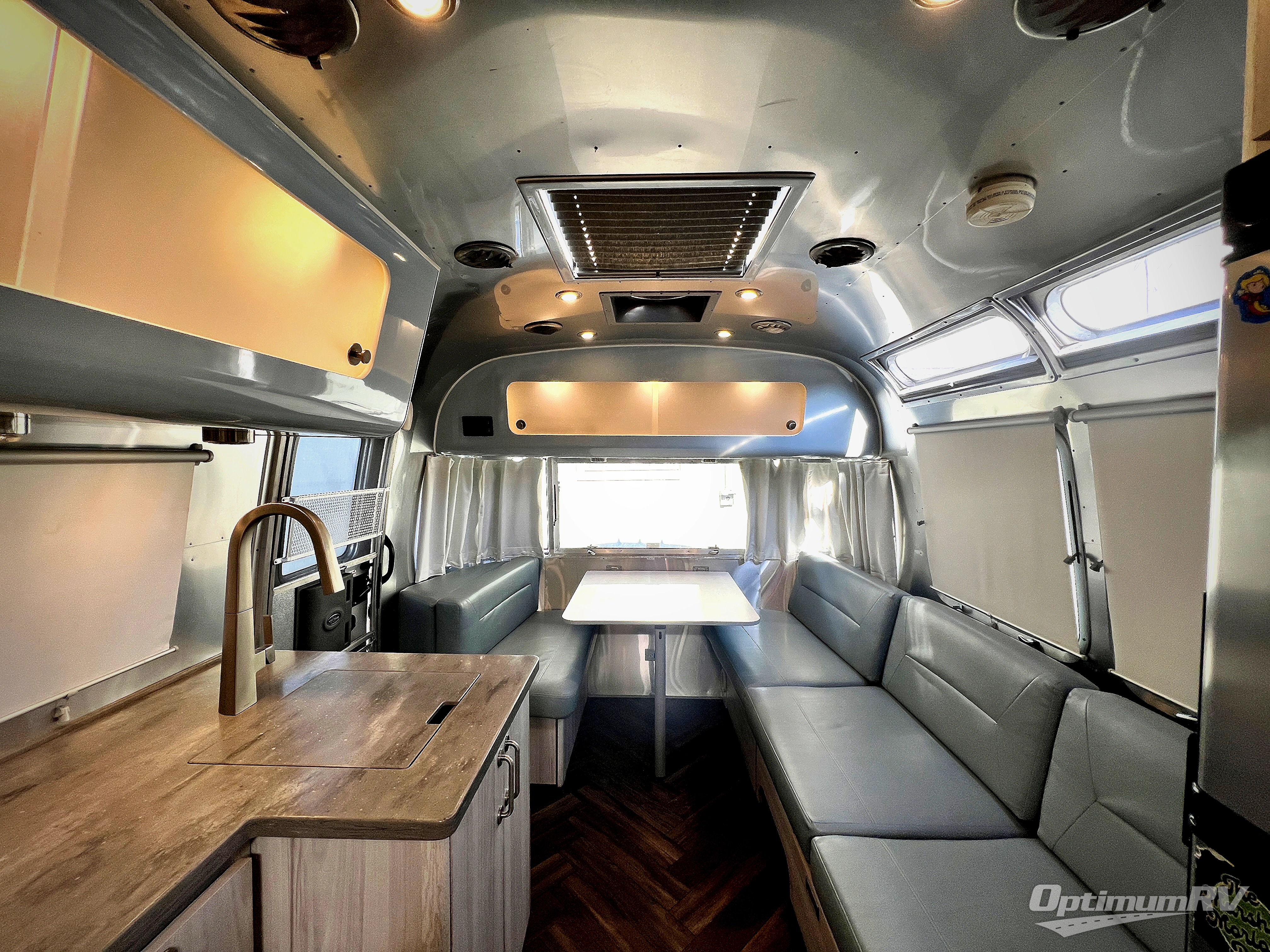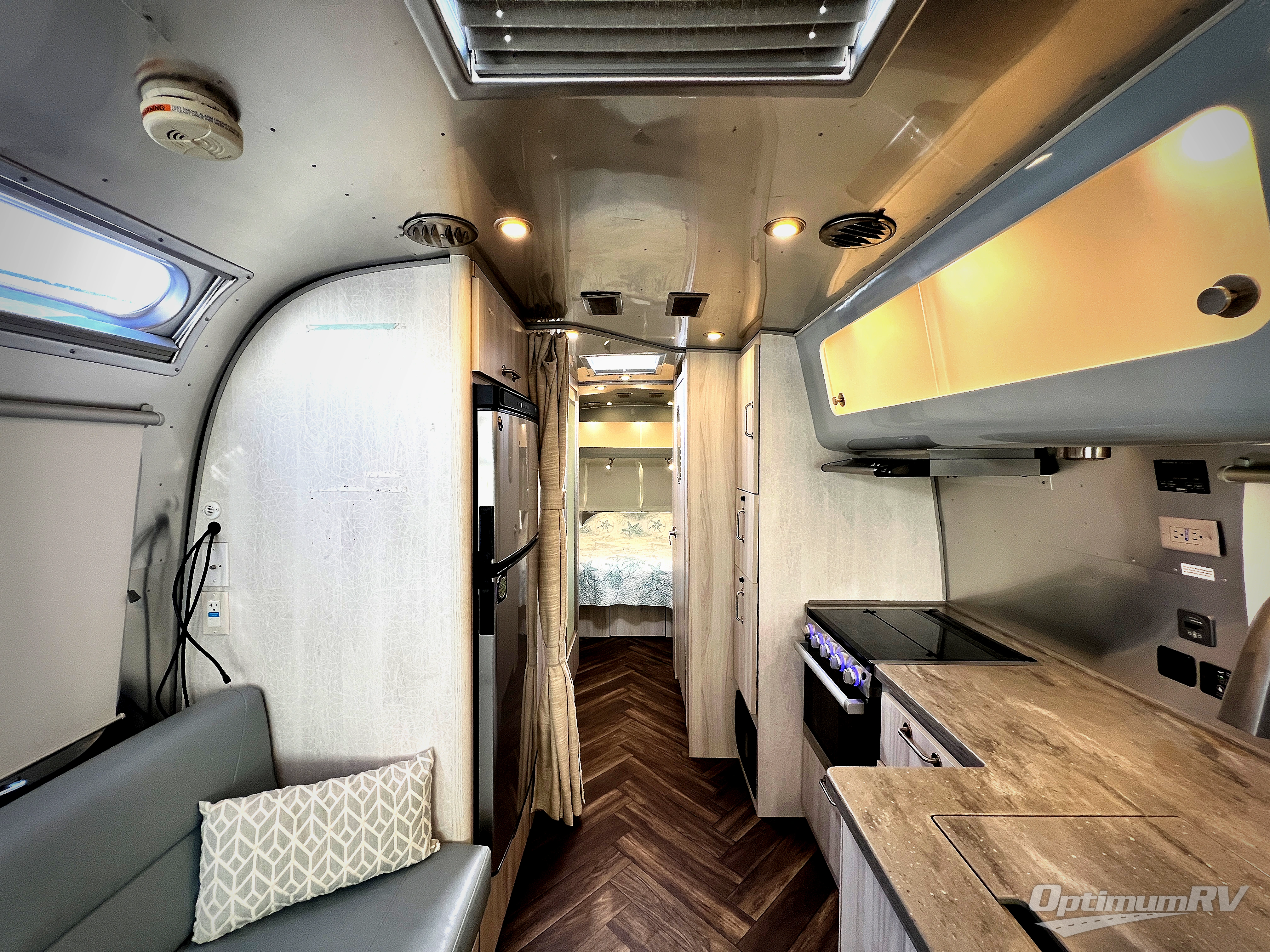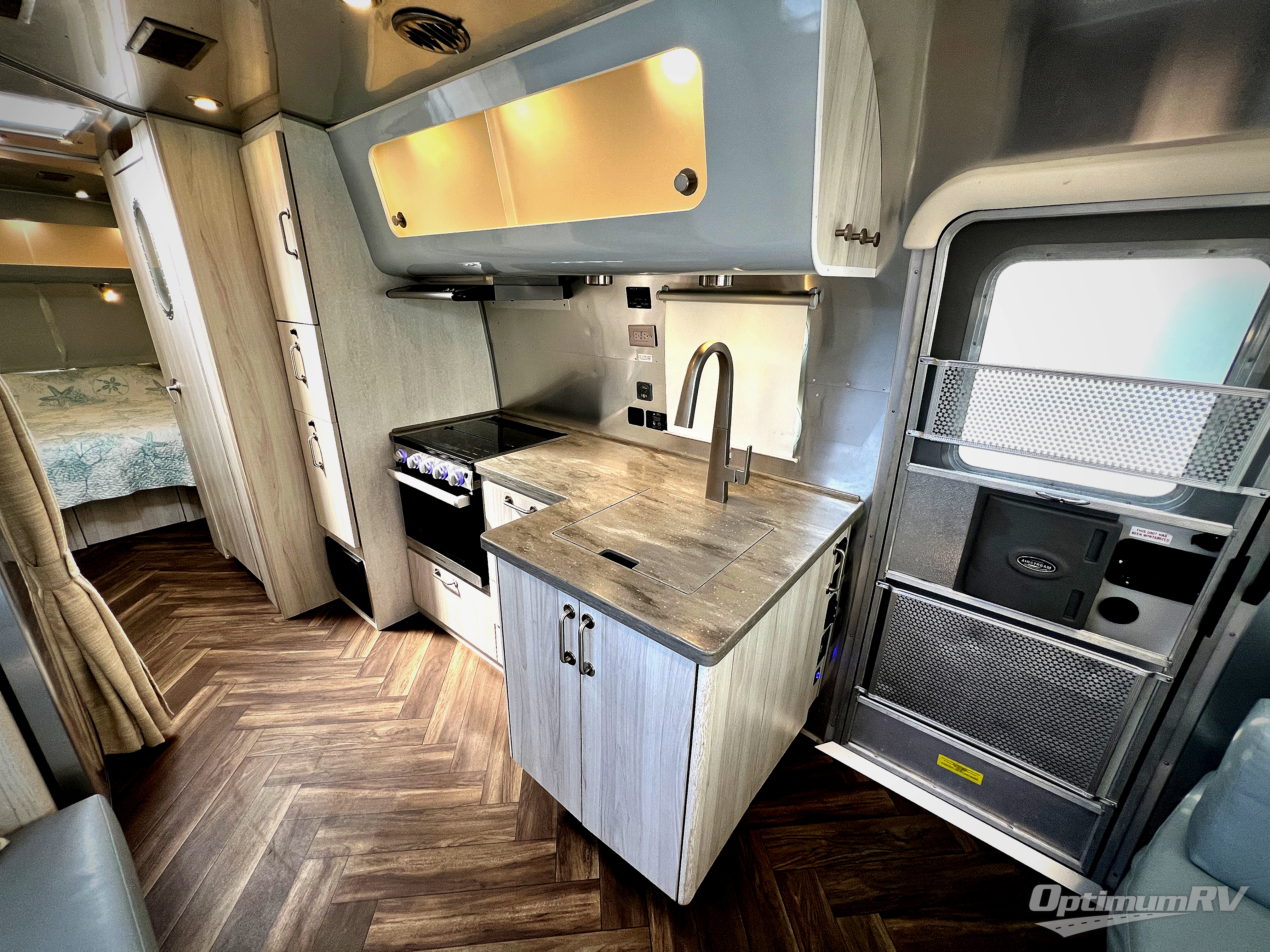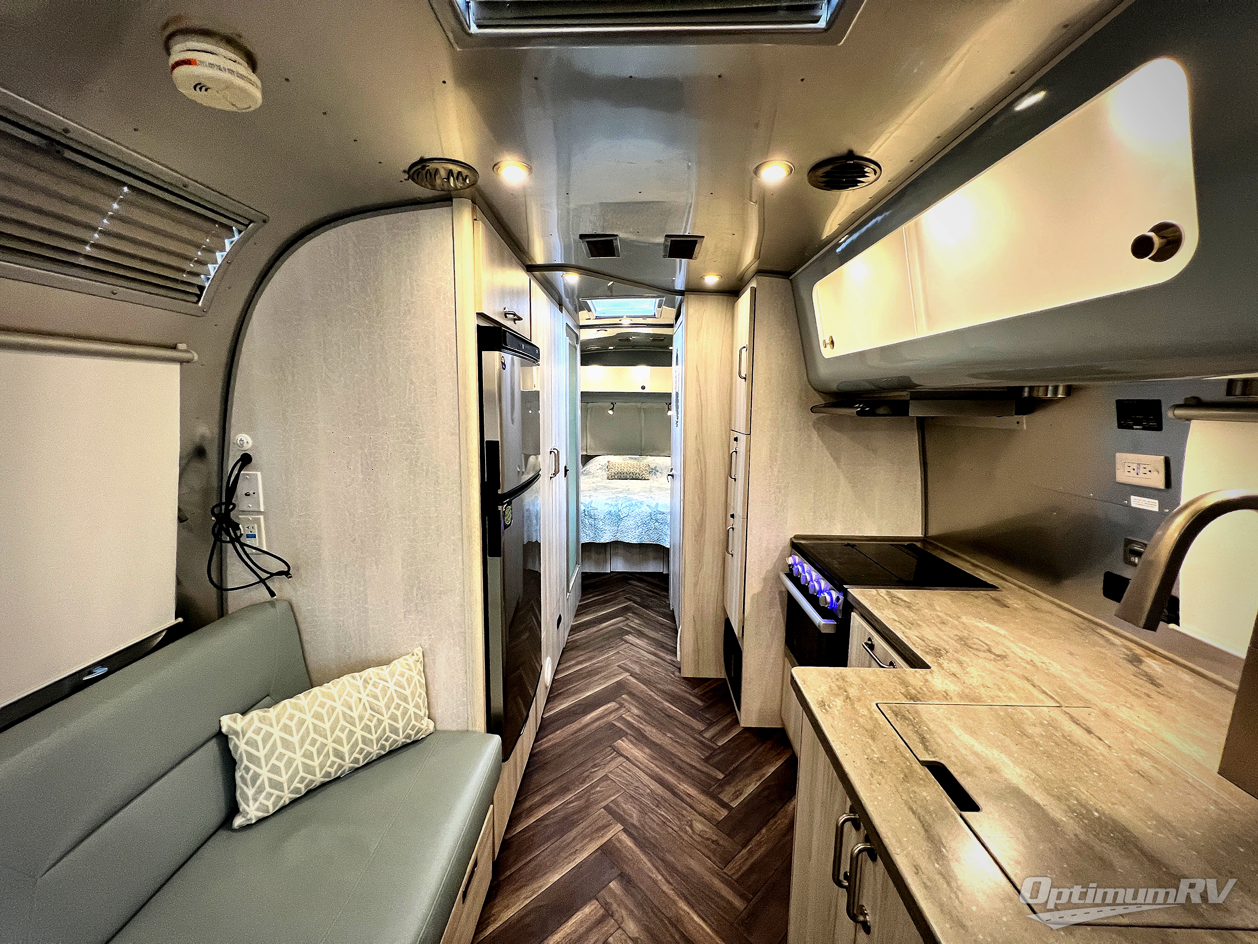 The first thing you will notice about this International travel trailer is the calming atmosphere! Airstream has done a wonderful job of creating a tranquil sanctuary for you to take your vacations in. The kitchen has a three-burner cooktop, stainless steel sink, 8 cu. ft. refrigerator, and microwave so that you can create new and exciting dishes each time you are away. This trailer also has excellent storage space with the overhead storage lockers, the wardrobe with hanging bar, the under-bed storage, and the exterior storage compartment. You can also find great entertainment as you spend your time in this trailer because the two LED HDTVs will allow you to watch a movie on the Blu-Ray DVD player.