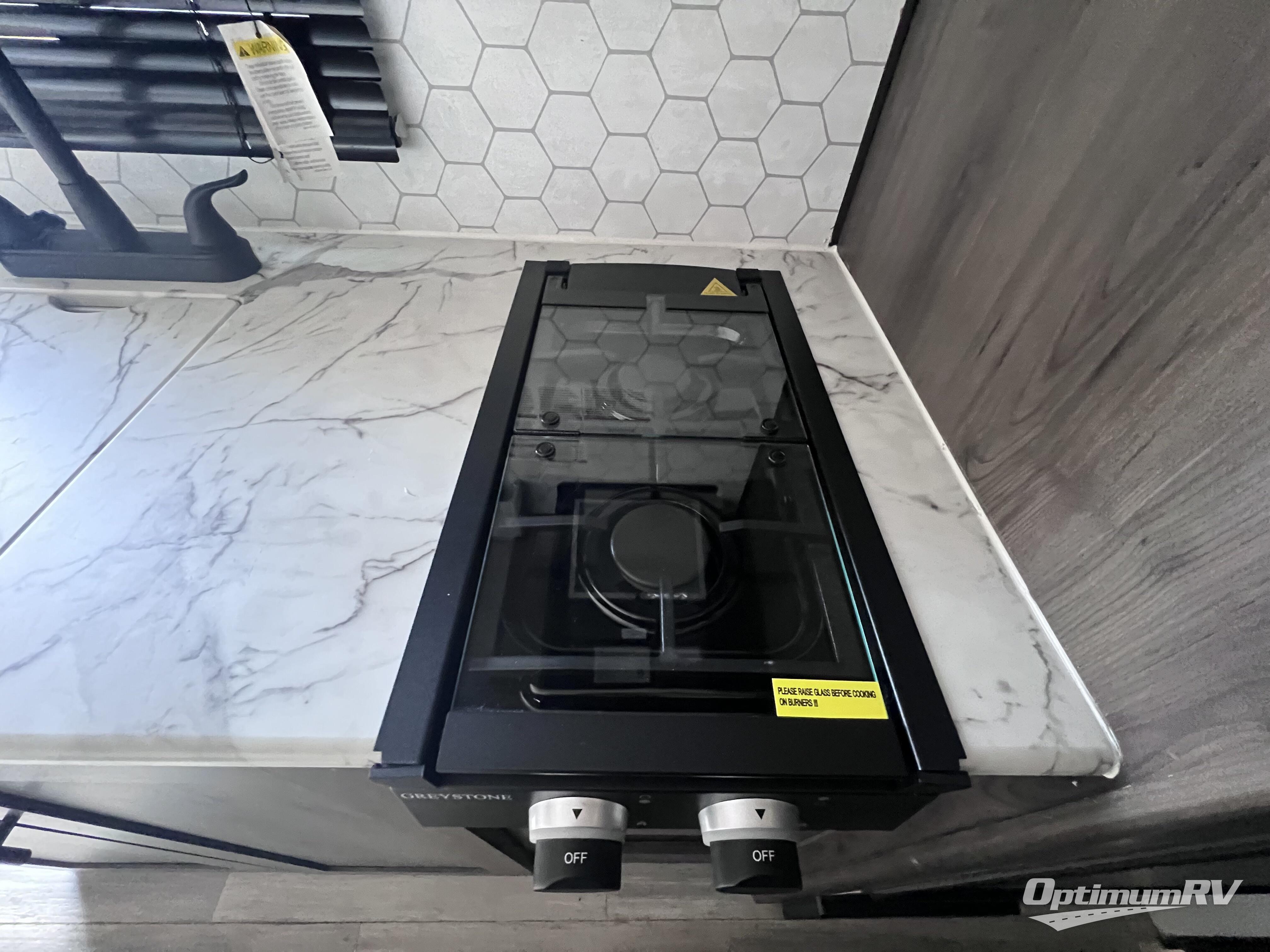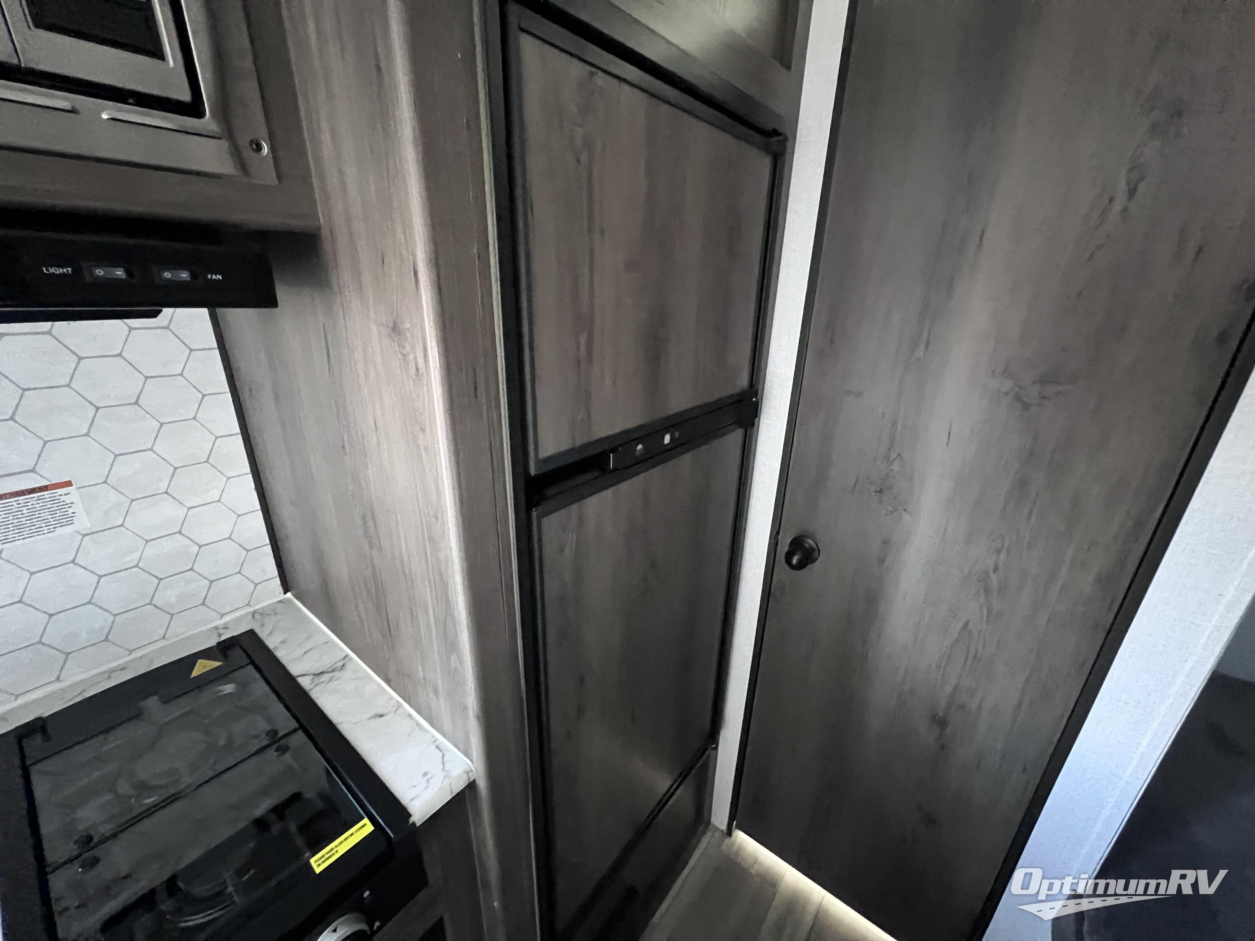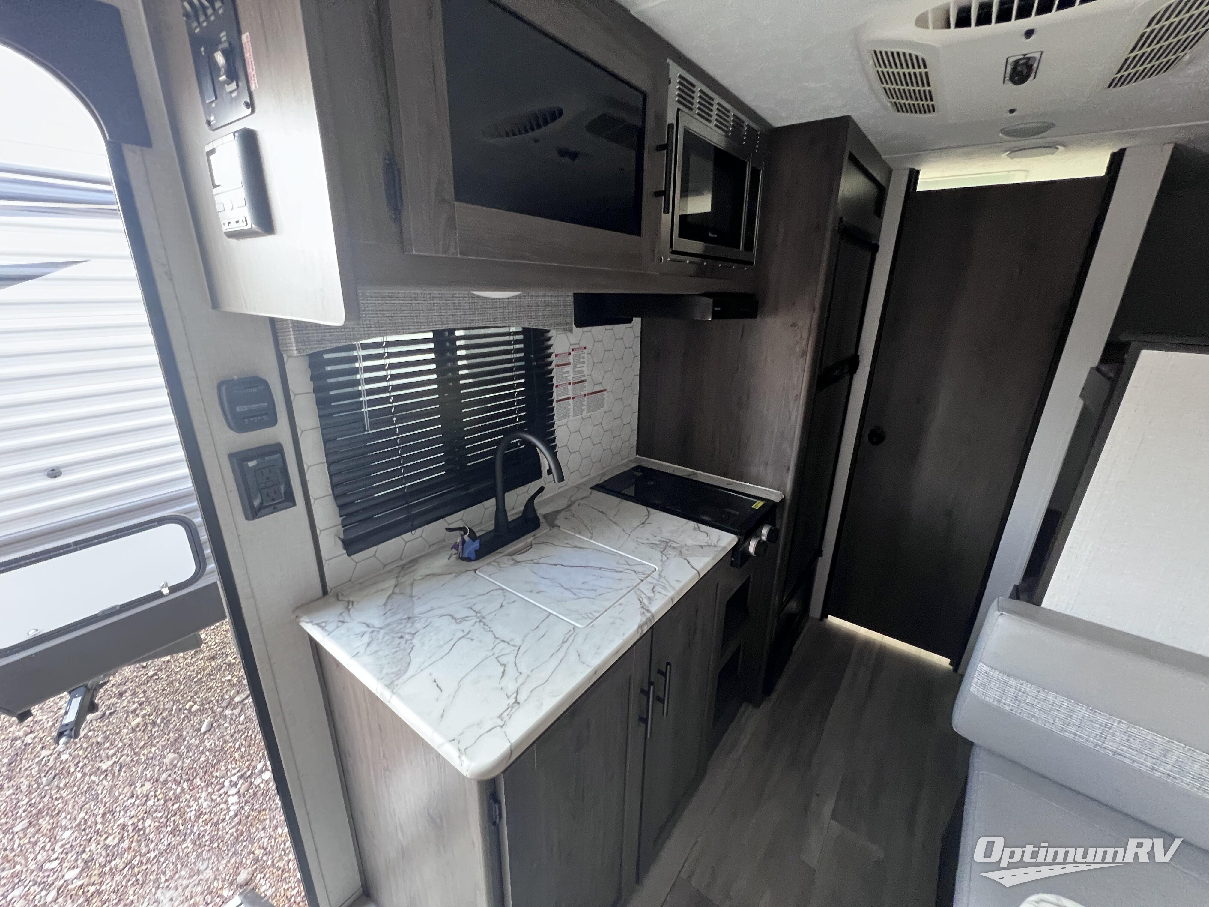 Pack your bags and hitch up this travel trailer for a fun family vacation! The kiddos can sleep on the set of 28" x 72" bunk beds and you can sleep on the front 54" x 74" bed with overhead cabinets and a storage space. Keep everyone's bellies full with the two burner cooktop, the 7 cu. ft. gas/electric refrigerator, and kitchen pantry. Enjoy your meals together at the booth dinette then play a card game or two. Everyone will stay squeaky clean between the rear corner bathroom with the ABS tub surround shower and the outside shower with hot and cold water!