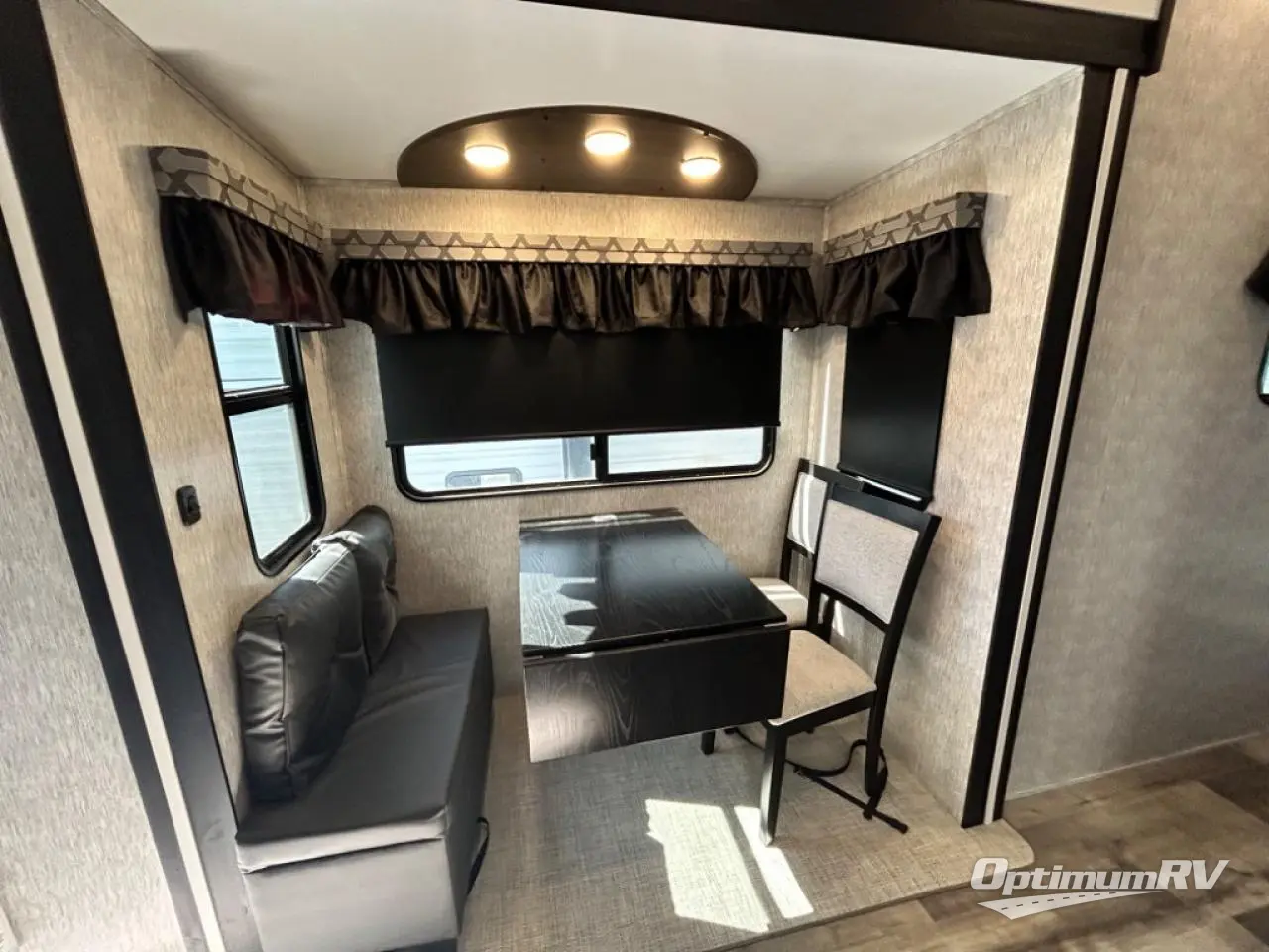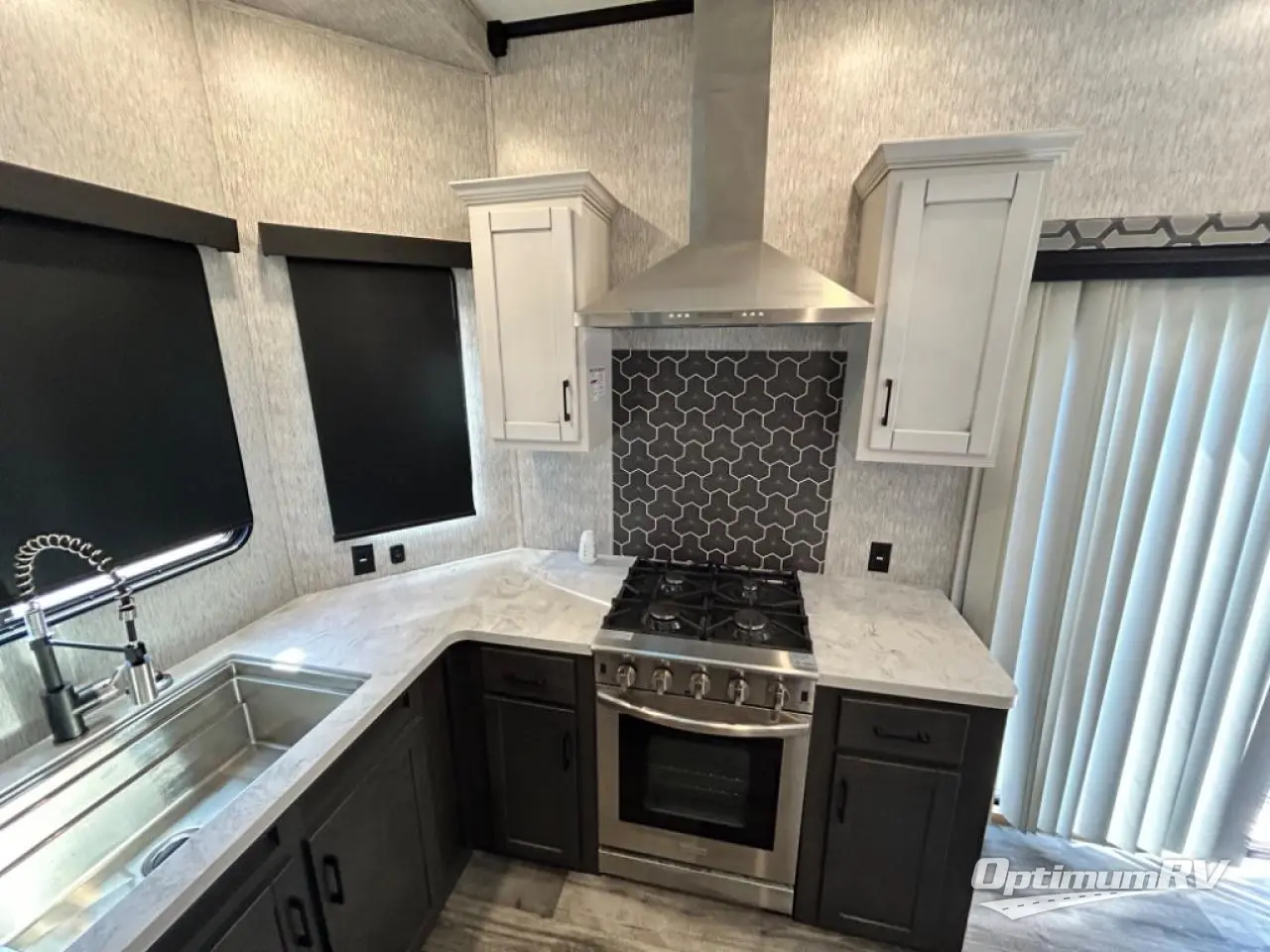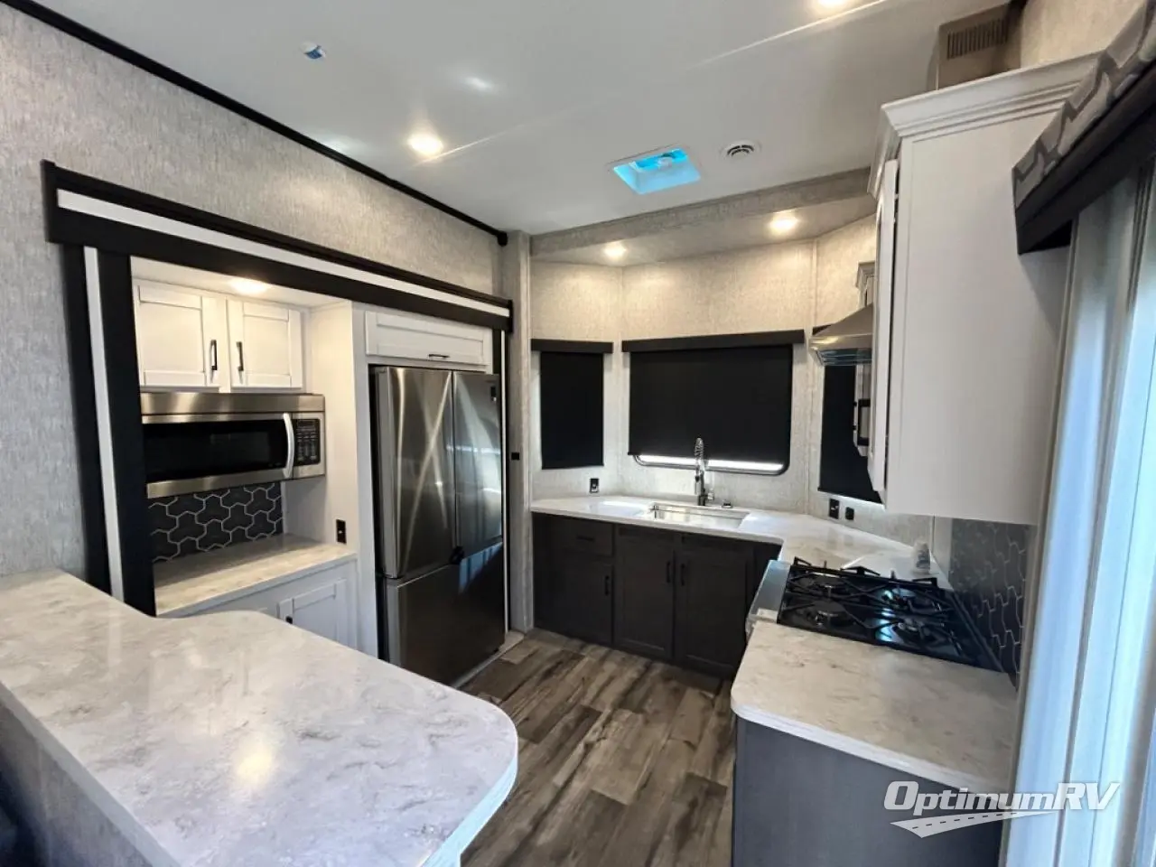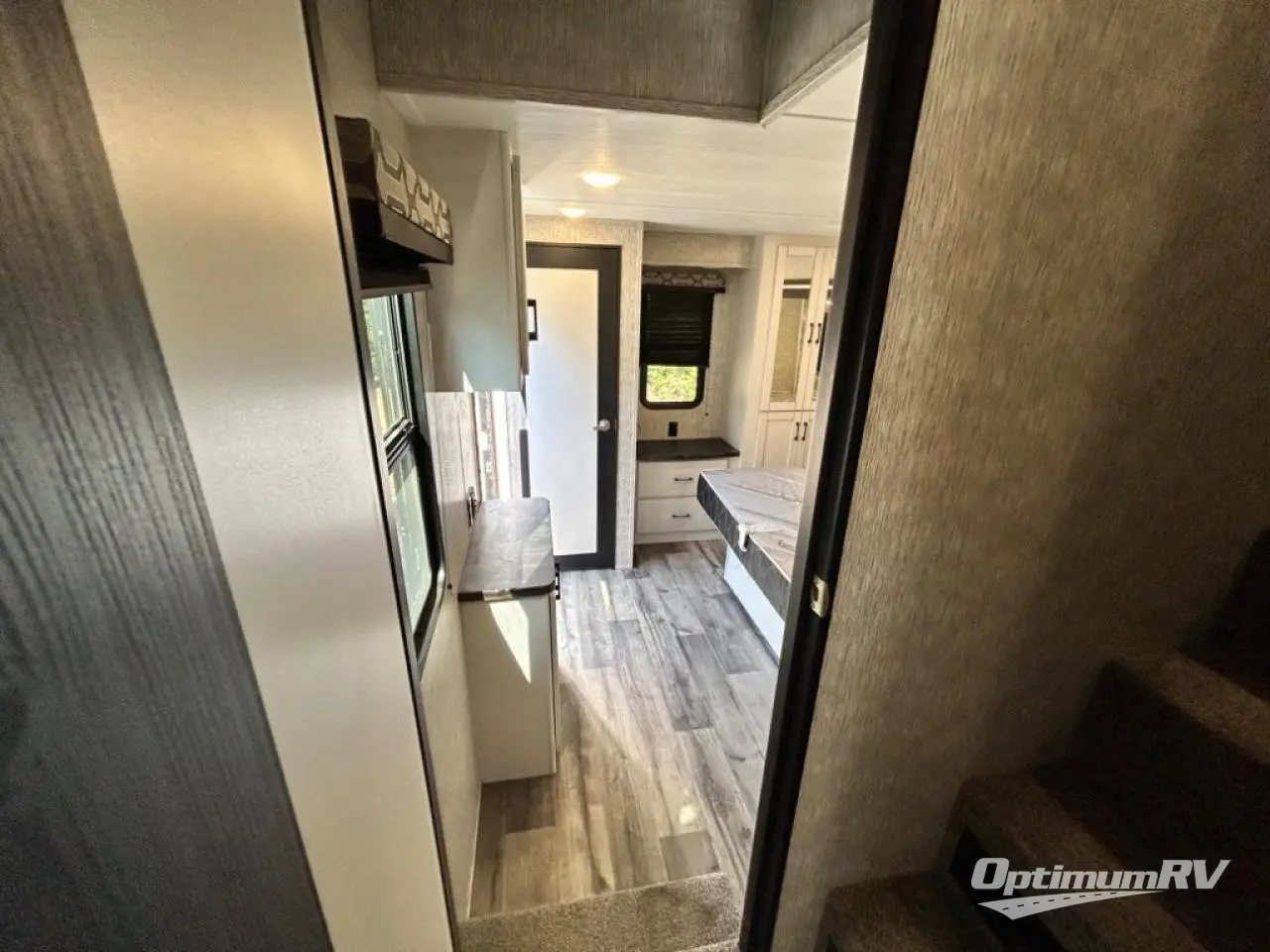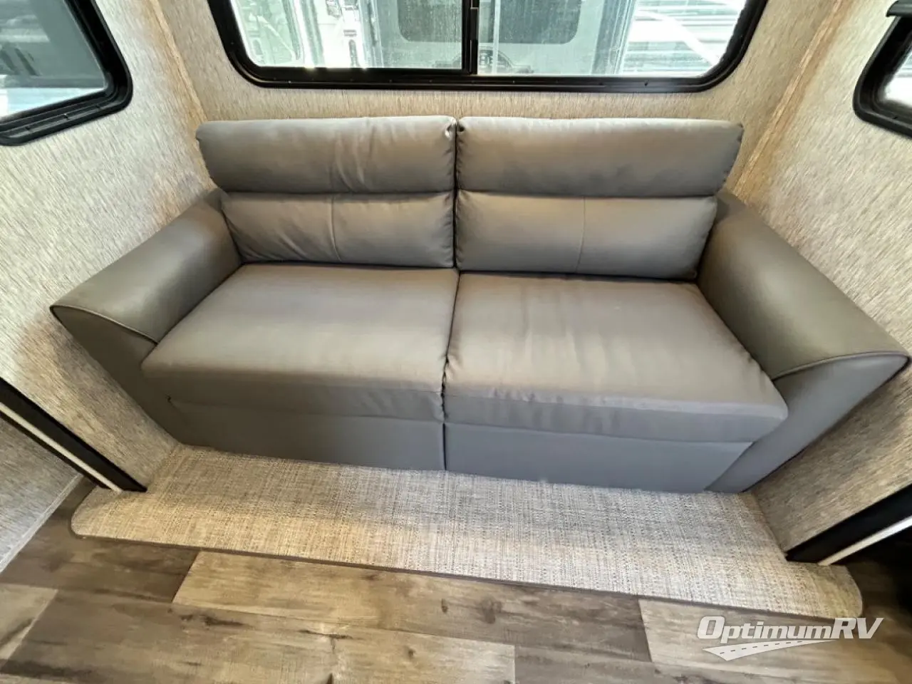 Are you looking for a destination trailer that can fit your whole crew? Look no further than this unit with four slides, three bunk mats in the loft areas, plus a spacious full bath that will allow everyone to stay clean each day. The front kitchen is any chef's dream with its ample counter space, pantry/cabinet, Insignia four burner cooktop, and residential refrigerator. After dinner is cleaned up, everyone can meet in the middle living area to watch a movie on the 50" TV, and the fireplace here will make it feel more like home.