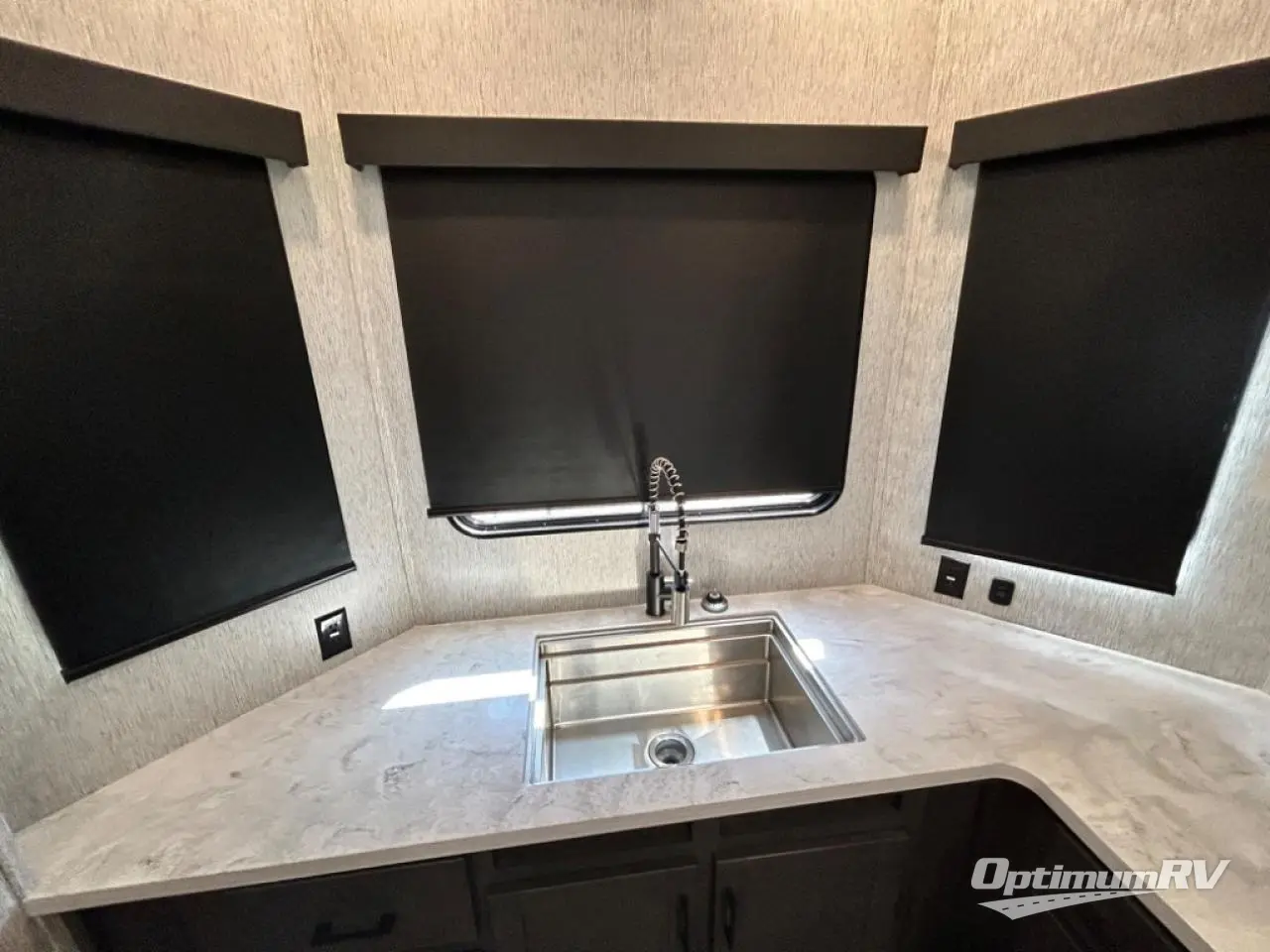 Each Hampton destination trailer by CrossRoads RV includes a one-piece fiberglass front cap, tinted glass windows, and an outside faucet that will surely come in handy when wanting to rinse off your hands or even shoes after exploring outdoors. Each is constructed with a fiberglass roof and floor insulation with radiant tech foil, an enclosed underbelly, and severe weather welded mounts and rain gutters along the entire roof line. And, the Convenience package that comes standard includes KeyTV, a microwave, a quilted bedspread, a power vent in the bathroom, and more. Other interior features offered include decorative accent lighting, an 8-foot floor to ceiling height, a patio door with a swing-out assist rail, and two-toned wood fascia. So choose your destination, select your favorite Hampton, and start feeling at home when you are actually on vacation!
