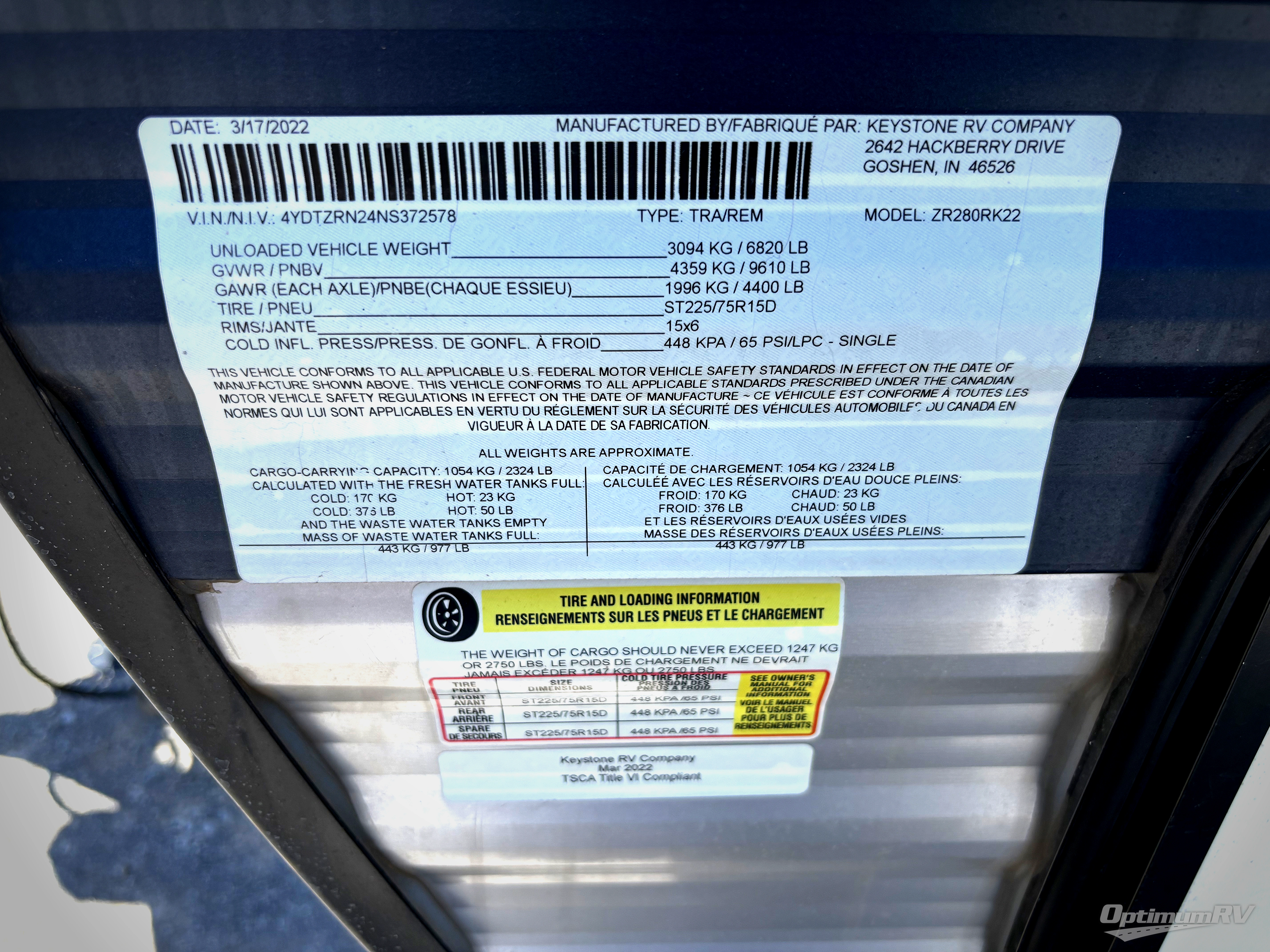 CrossRoads Zinger travel trailer ZR280RK highlights: