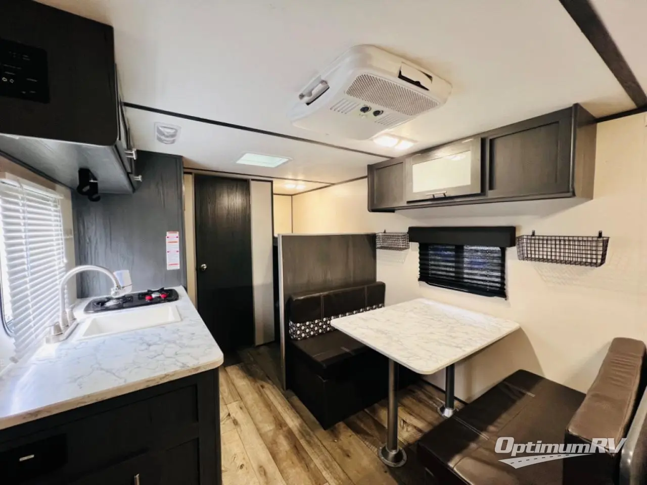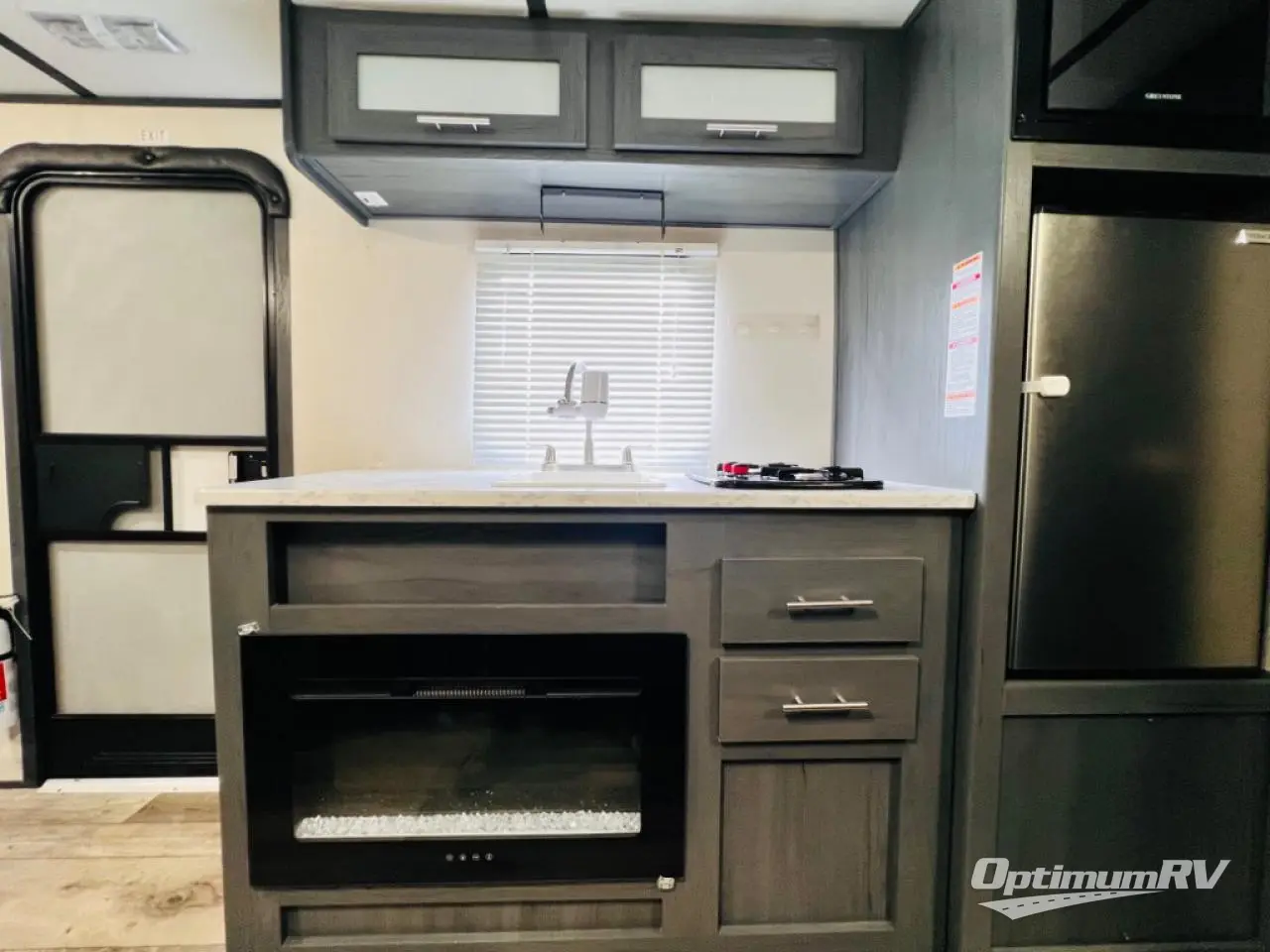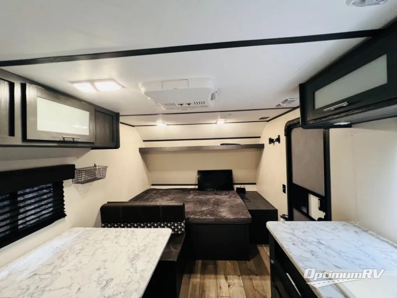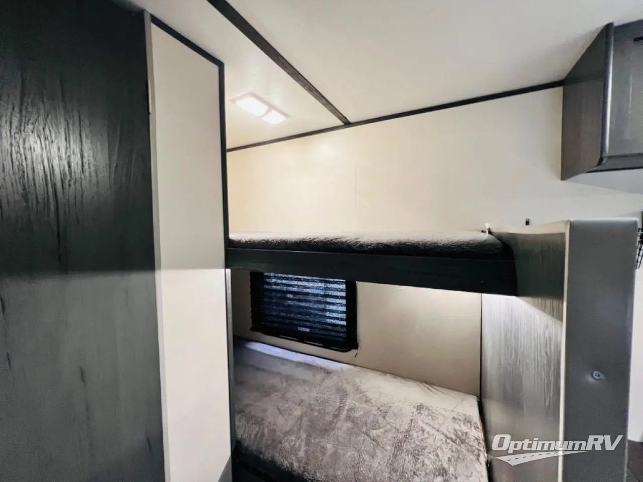 Step inside this travel trailer and see just how fun your next camping trip can be! The kids will love the set of rear corner bunk beds and you will love the front queen-size bed, plus the booth dinette can transform into an extra sleeping space when not in use. You can rinse the sand off in the rear corner bathroom, grab a cold drink from the 3.3 cu. ft. refrigerator, and then head outside and relax underneath the 10' power awning with LED lights!