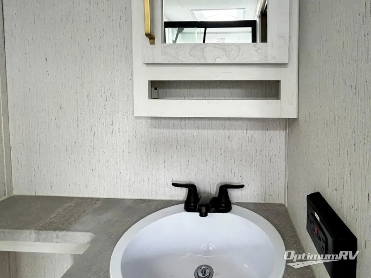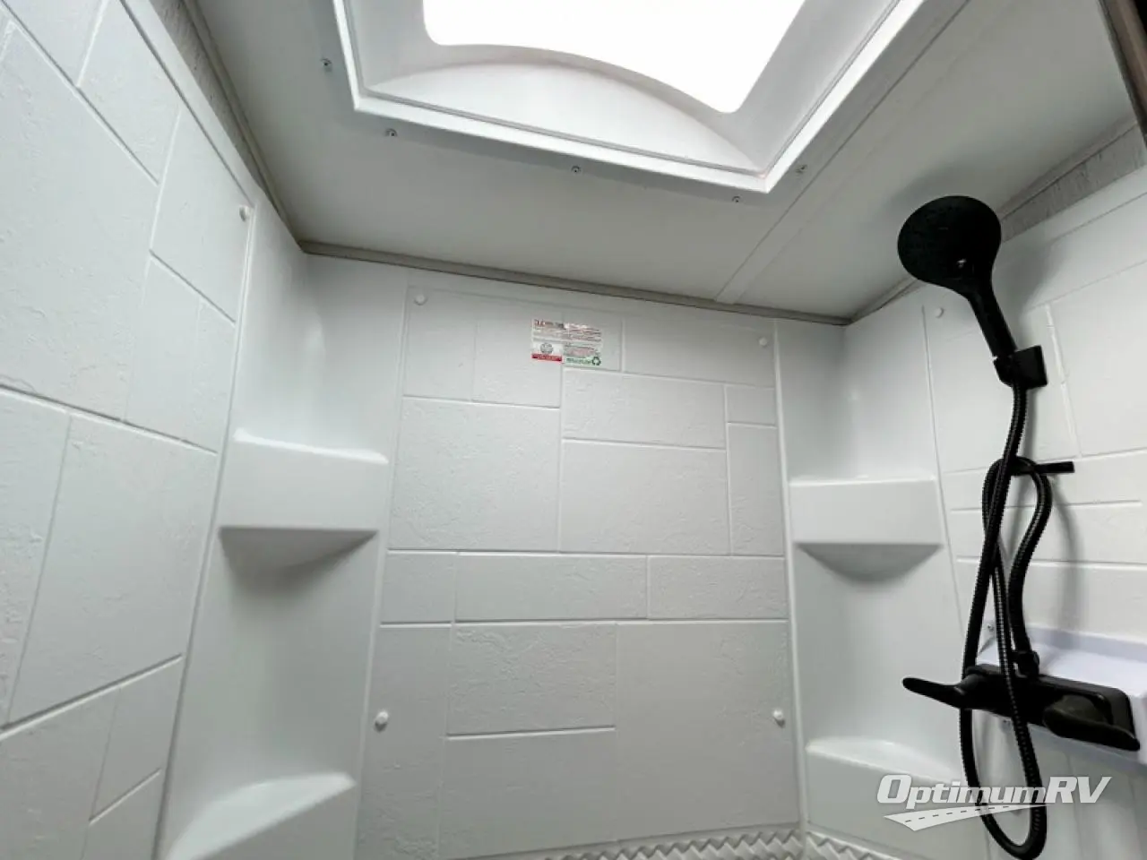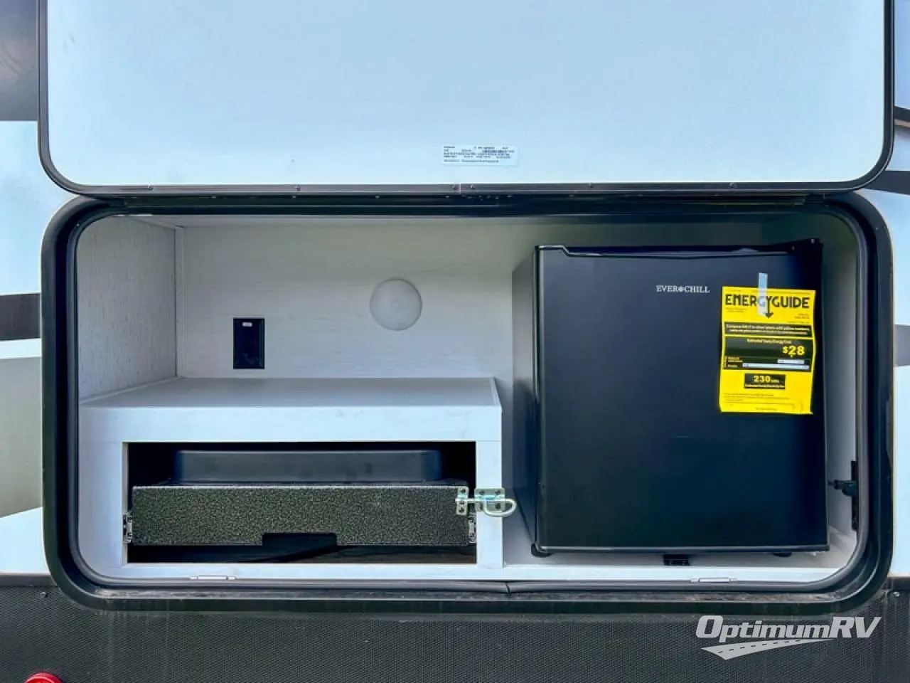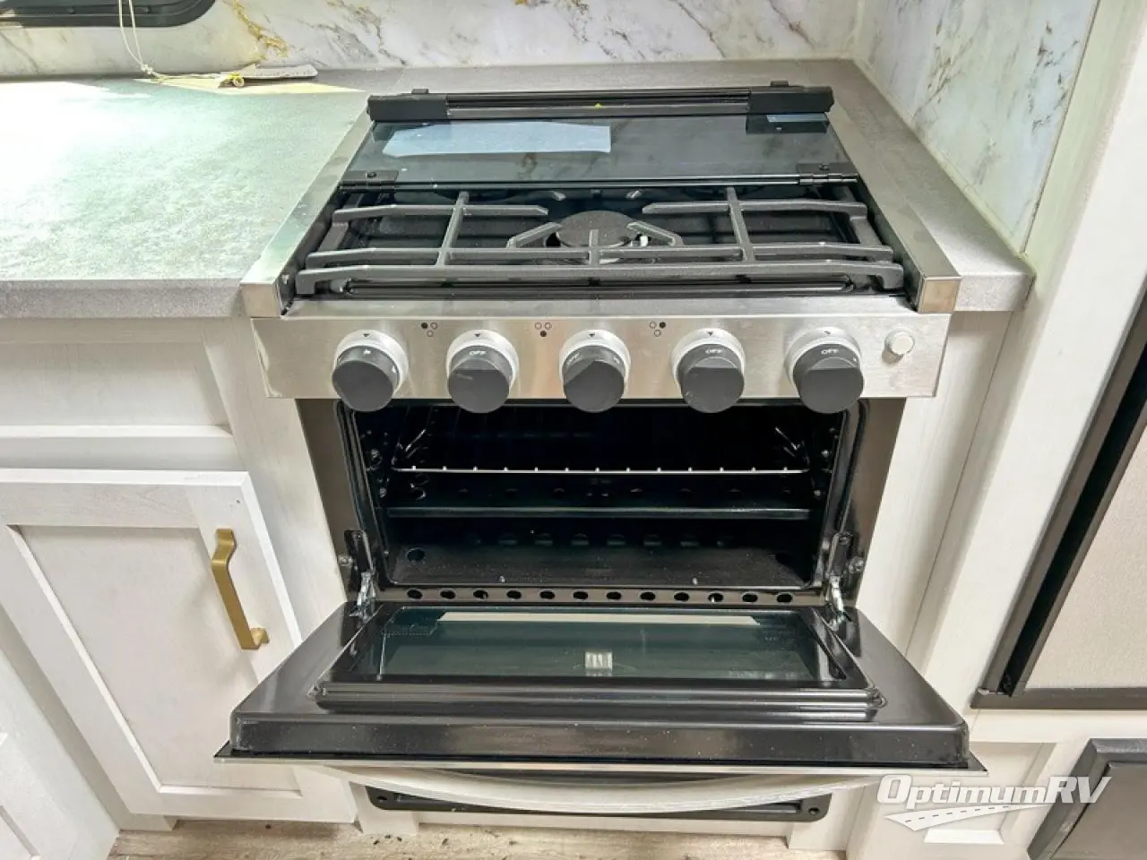 There are plenty of sleeping spaces for everyone in this travel trailer! From the rear private bunkhouse with a set of bunk beds along one side and a bunk bed above a sofa on the other to the front private bedroom with a king bed. You can even transform the tri-fold sofa and U-shaped dinette slide into extra sleeping spaces if needed. The walk-through bathroom has everything you will need to freshen up each morning. The chef will love cooking indoors with the glass top three burner cooktop with a 17" oven, yet may love cooking at the outdoor kitchen even more. Grab a snack from the walk-in pantry behind the entertainment center and watch your favorite movie on the 40" LED TV while a fire roars in the 30" glass fireplace!