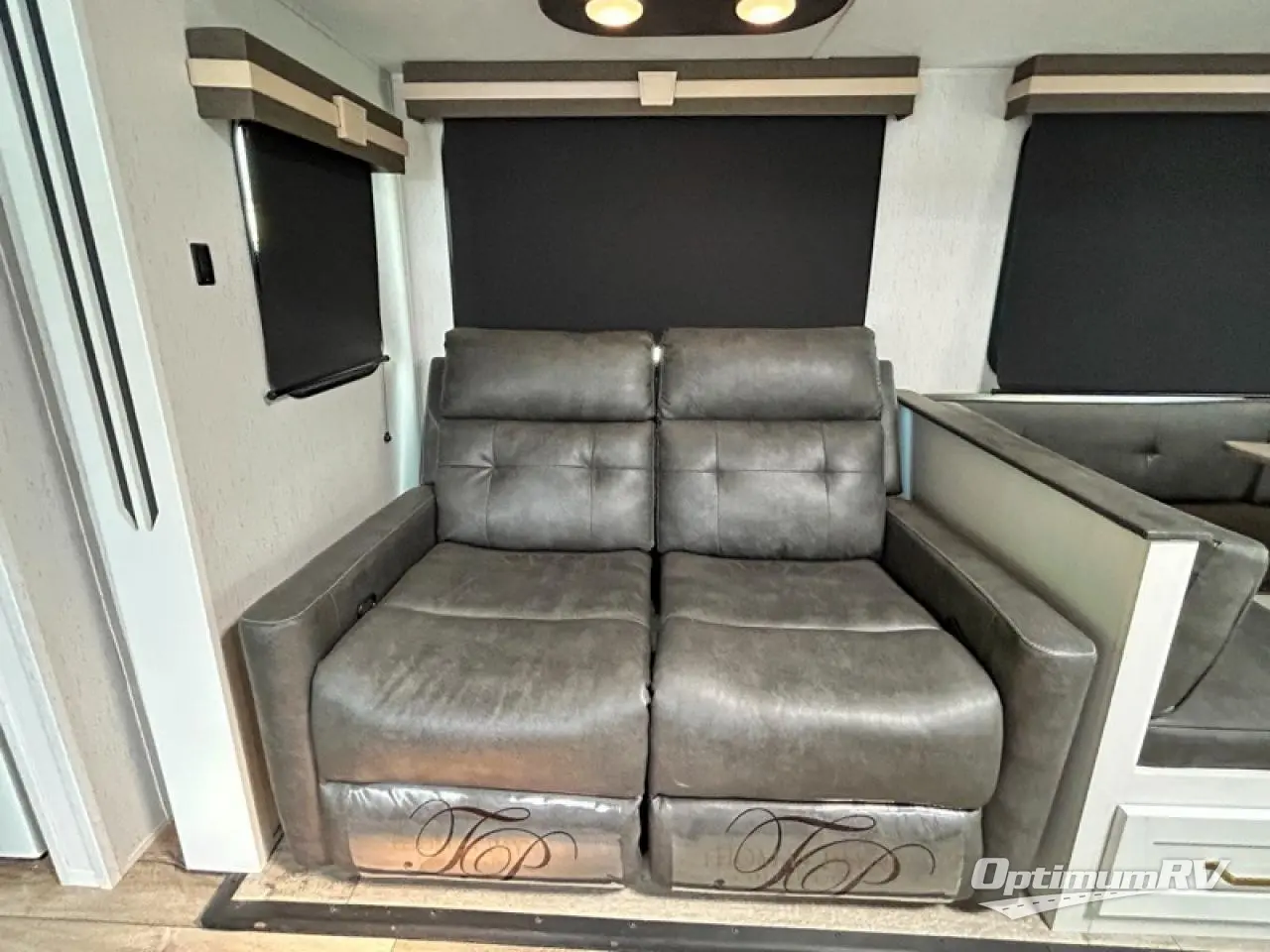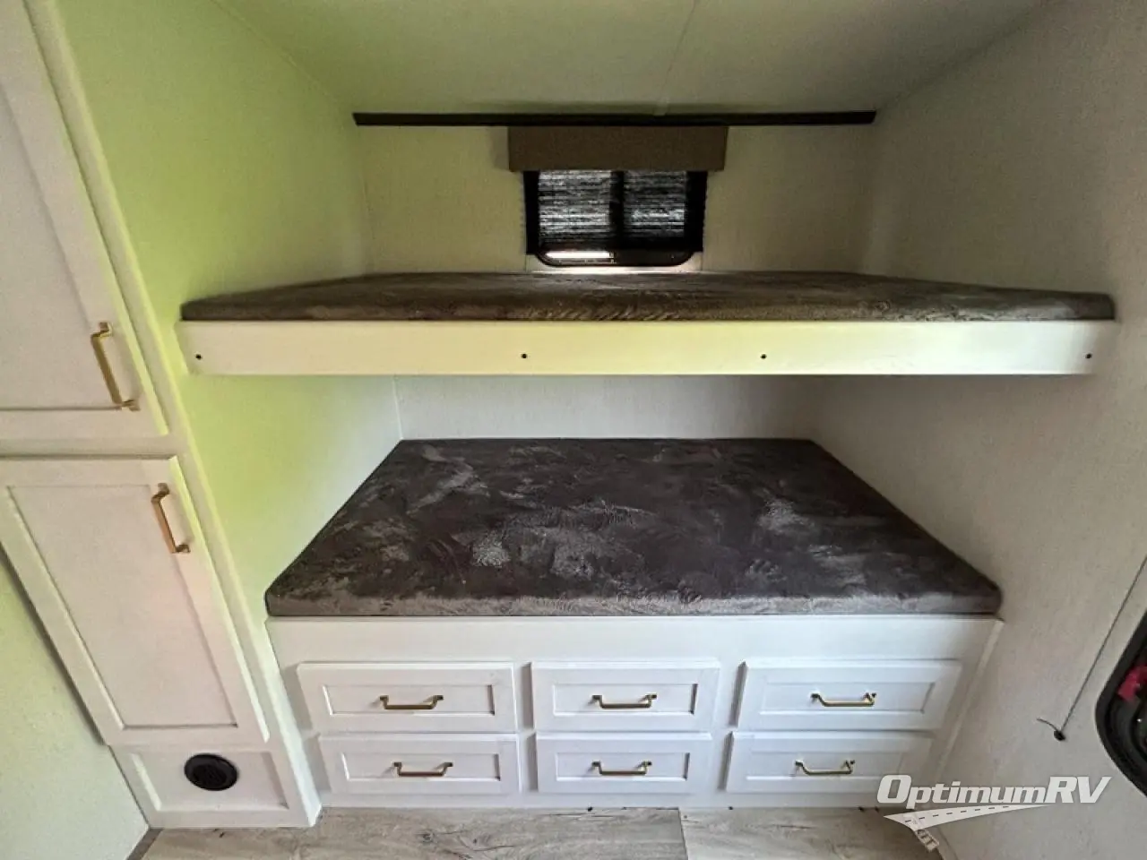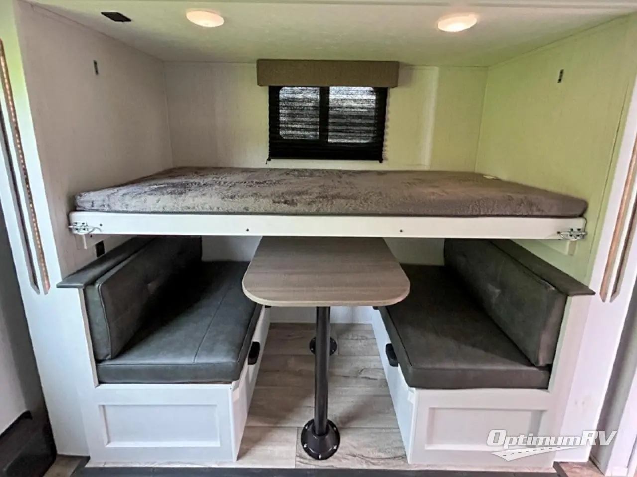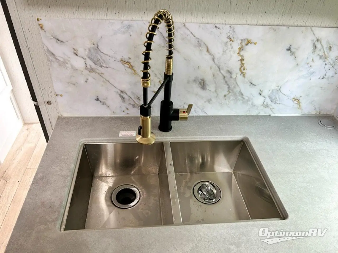 There are plenty of sleeping spaces for everyone in this travel trailer! From the rear private bunkhouse with a set of bunk beds along one side and a bunk bed above a sofa on the other to the front private bedroom with a king bed. You can even transform the tri-fold sofa and U-shaped dinette slide into extra sleeping spaces if needed. The walk-through bathroom has everything you will need to freshen up each morning. The chef will love cooking indoors with the glass top three burner cooktop with a 17" oven, yet may love cooking at the outdoor kitchen even more. Grab a snack from the walk-in pantry behind the entertainment center and watch your favorite movie on the 40" LED TV while a fire roars in the 30" glass fireplace!