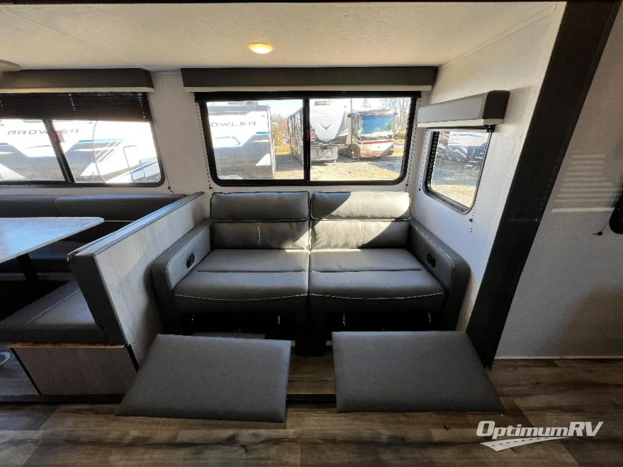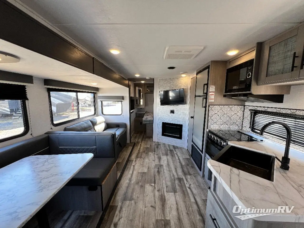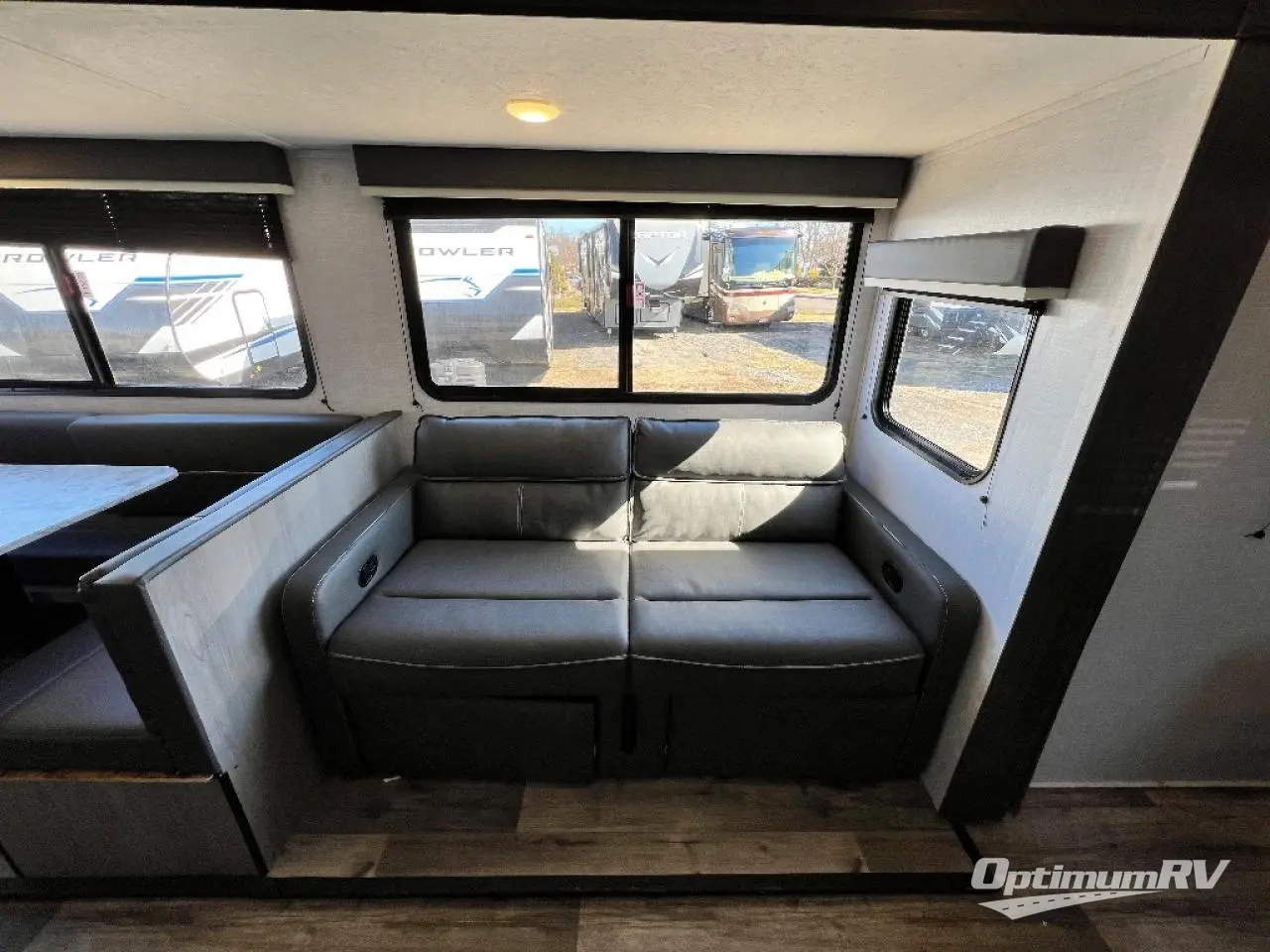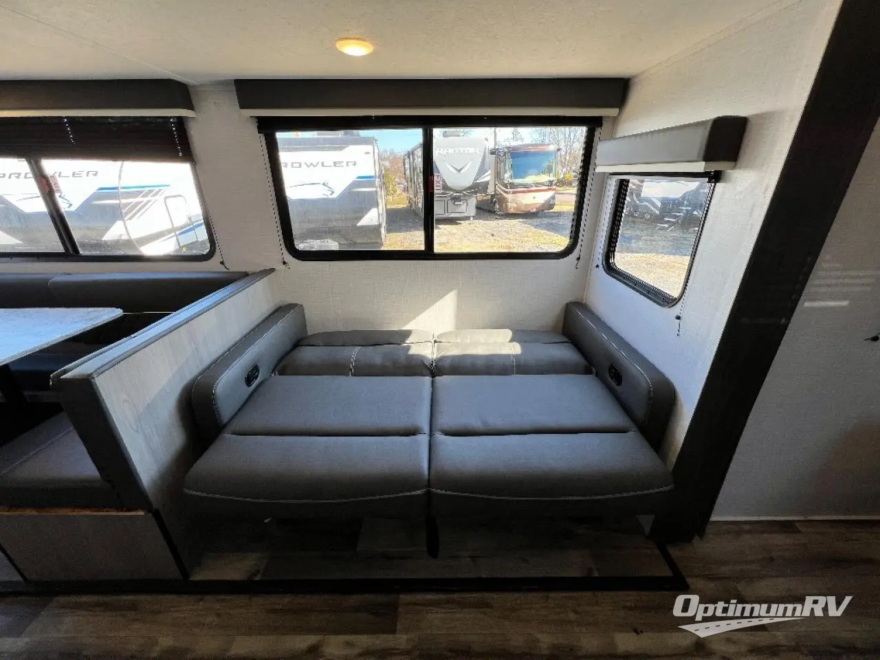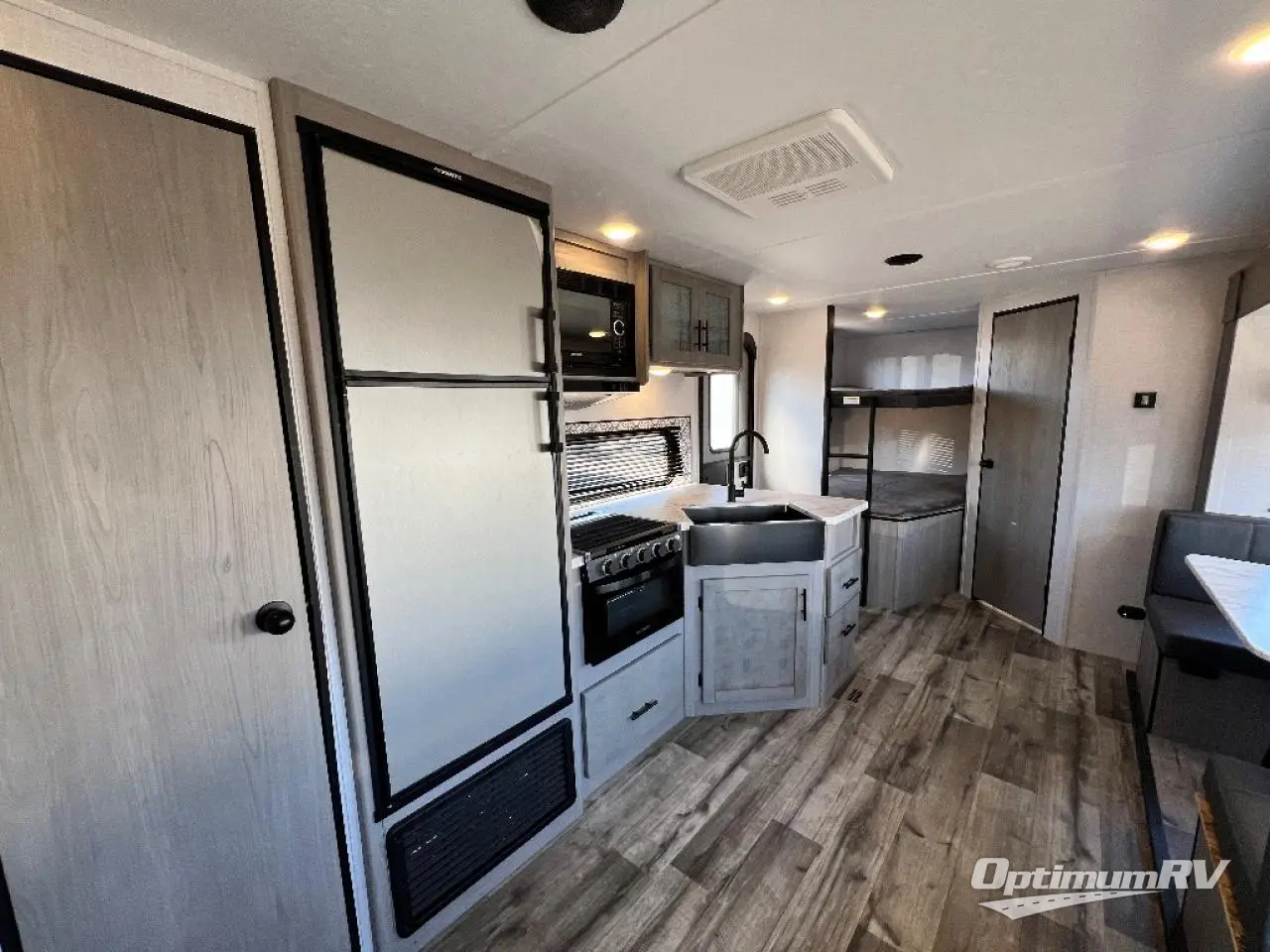 The Dutchmen Coleman Light travel trailer features an upgraded kitchen package with residential appliances, high-rise faucets, and a stainless steel farm-style sink. The fully enclosed underbelly allows all of your trailer's vital functions to be kept out of the freezing cold, and you'll have great stability as you enter your trailer by using the solid entry steps. Each model includes power stabilizer jacks, a power tongue jack, dual 20-LB propane tanks, a residential queen bed, and preparations for Wi-Fi 4G LTE. There is an aerodynamic front fiberglass cap, exterior speakers, solar charging connection, and aluminum wheels.