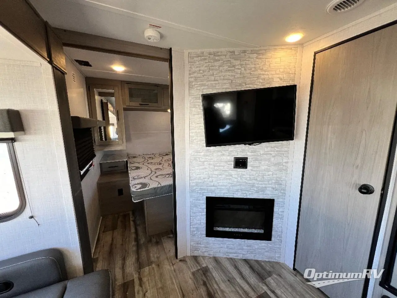 This Coleman Light travel trailer is quite accommodating with its bunk beds, U-shaped dinette, reclining sofa, and residential queen bed! There is a large slide that will create an open living area, and you can relax in front of the fireplace when you need a little extra heat on a chilly day. The hinged entertainment center hides a pantry in the kitchen, and there is also a 7-cubic foot refrigerator that you can use for cold food storage. Come and go as you please with the two entry doors, and spend some time outside cooking meals at the outdoor kitchen while the 20' power awning protects you from stray rain drops.