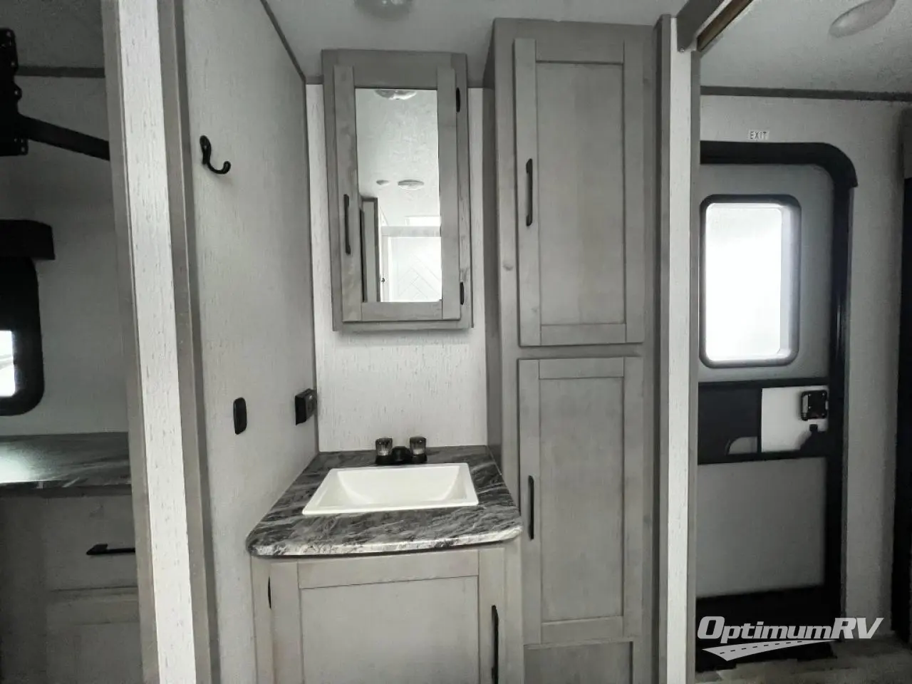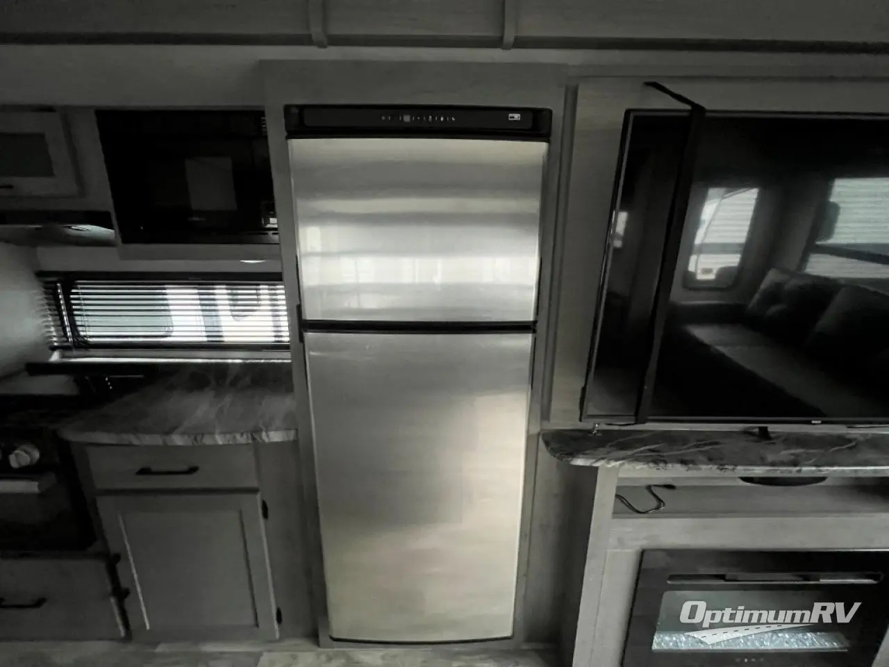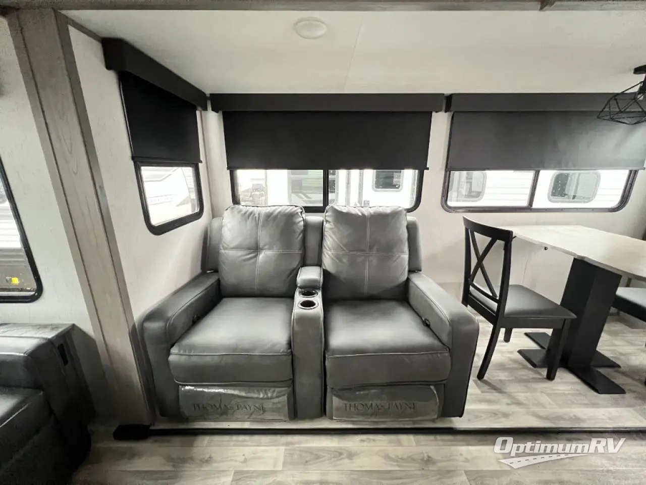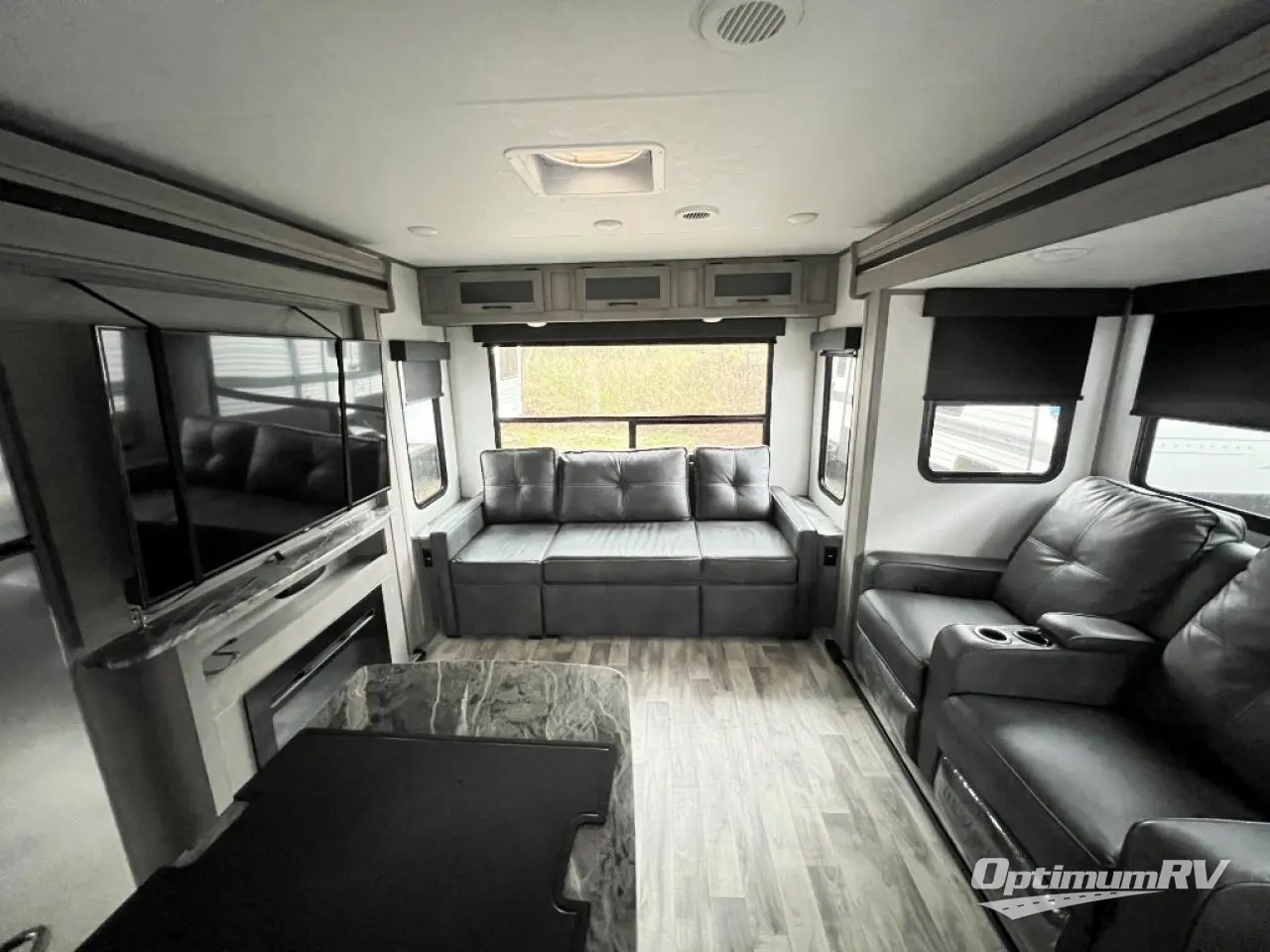 You will feel right at home in this spacious travel trailer that can sleep five people each night. The kitchen island includes a farm style sink, a three burner cooktop, plus a 10 cu. ft. refrigerator for perishables. There is also an outside kitchen, which will make the outdoor cook very happy! The pass-through storage will be perfect for bringing along fishing poles or hiking gear, and there is a 20' power awning with LED lights if you enjoy relaxing outdoors in the evenings. Get cleaned up in the walk-through bath before heading off to the front master bedroom each night. You'll love the slide out king bed, the bedroom fireplace, and the front bench seat to read a book or two!