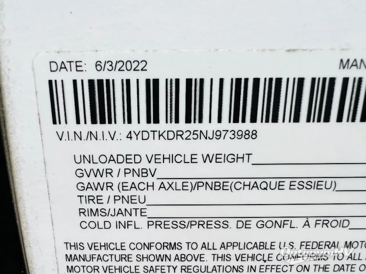 - VIN 4YDTKDR25NJ973988