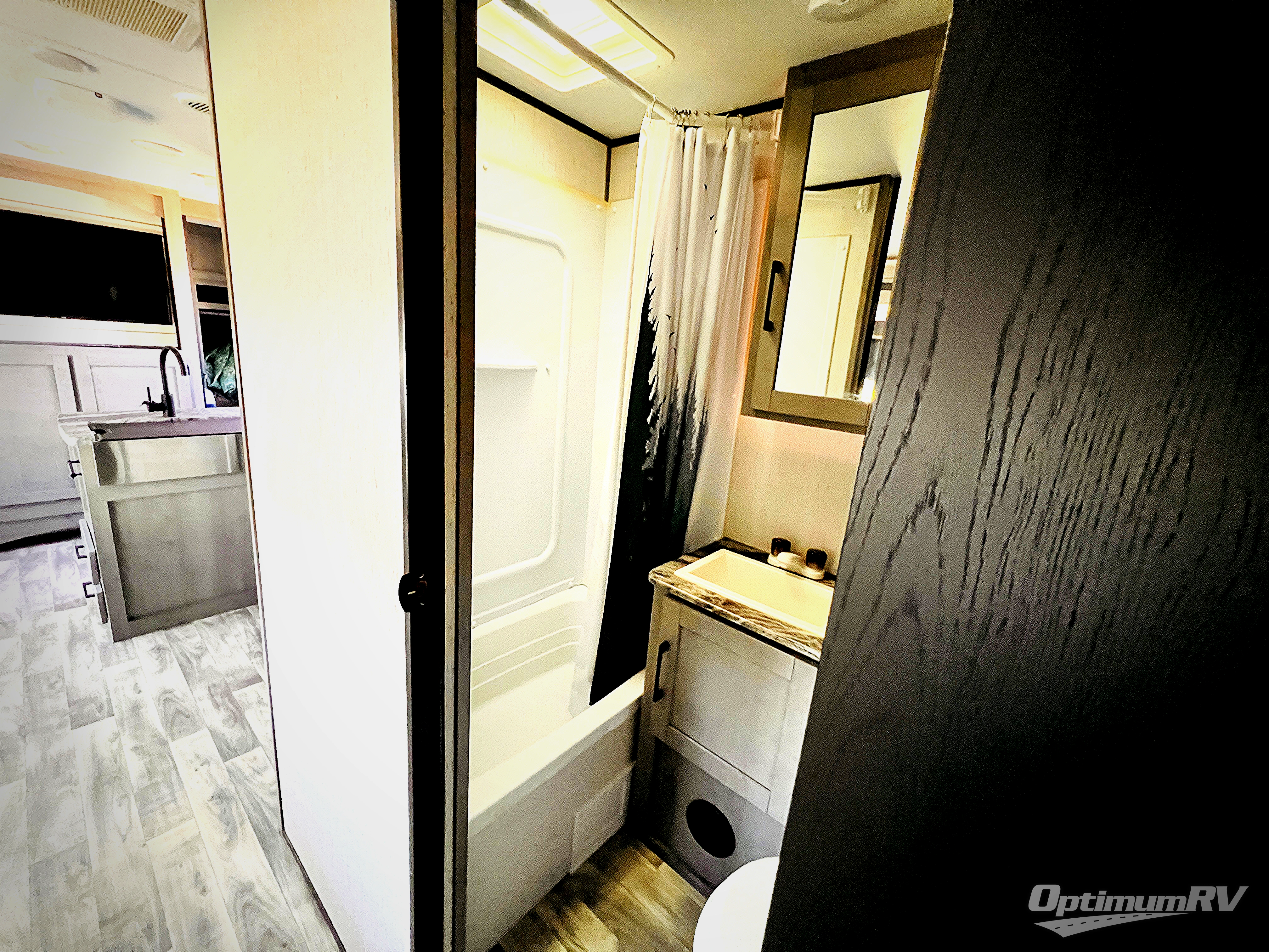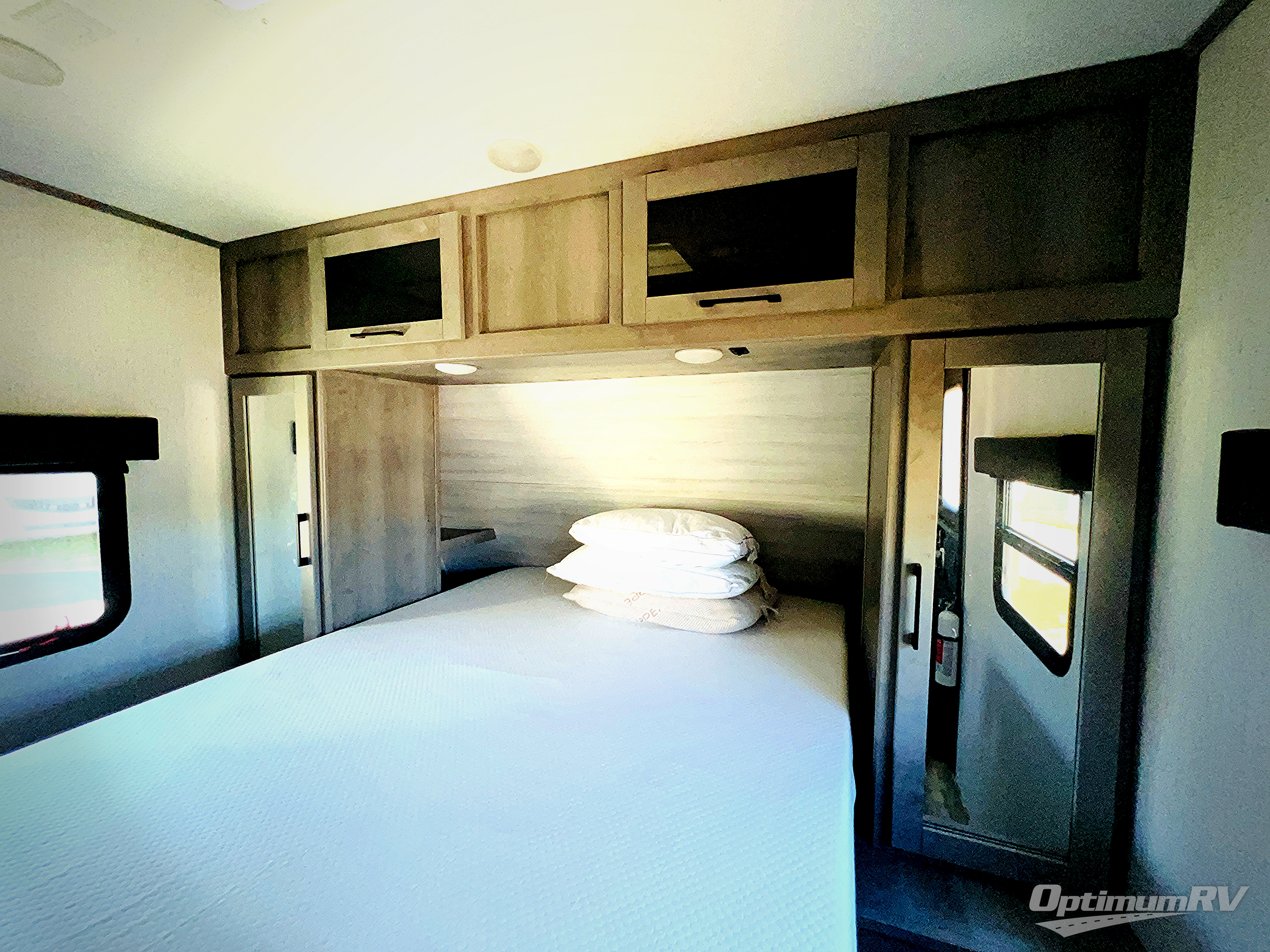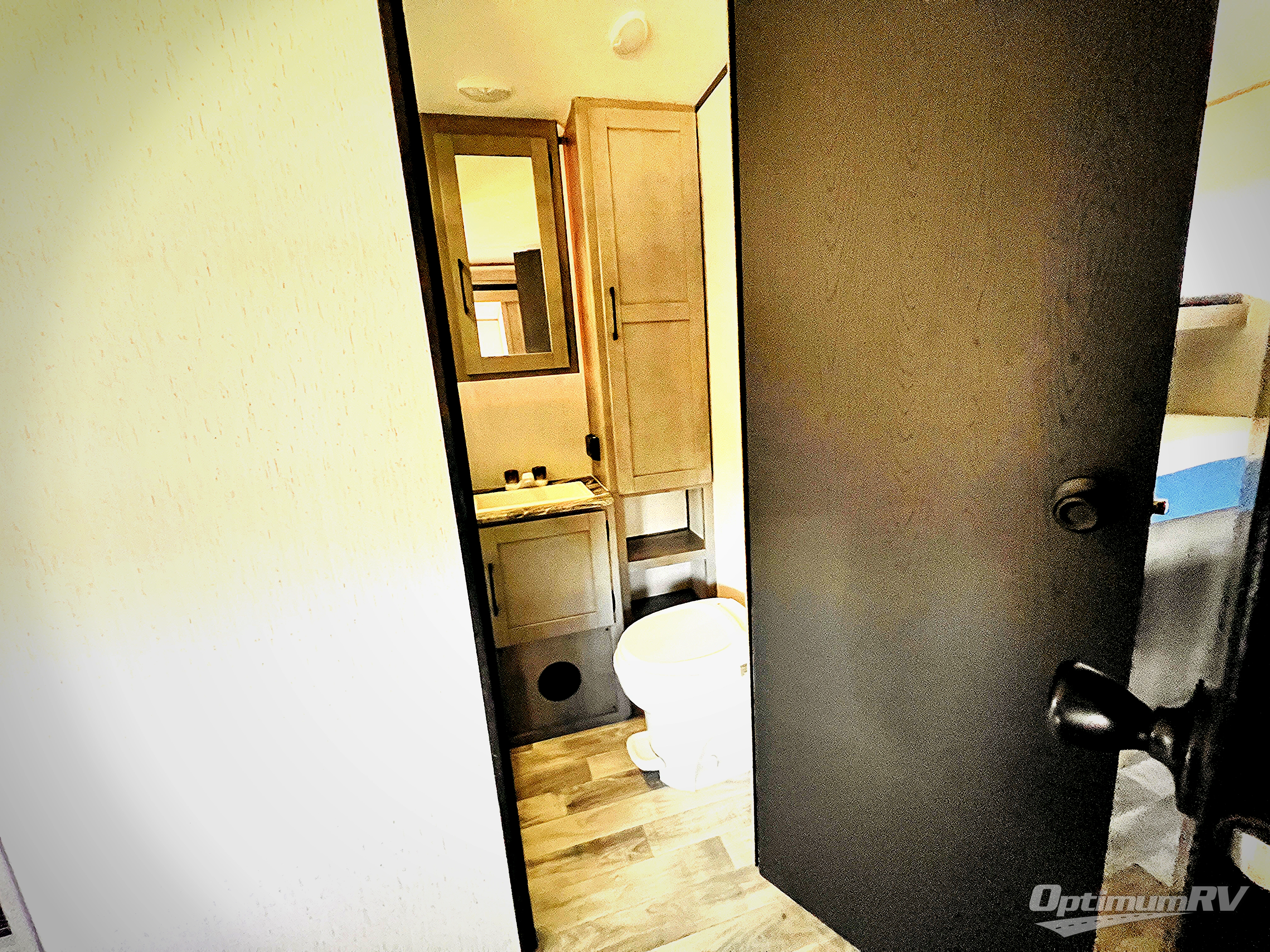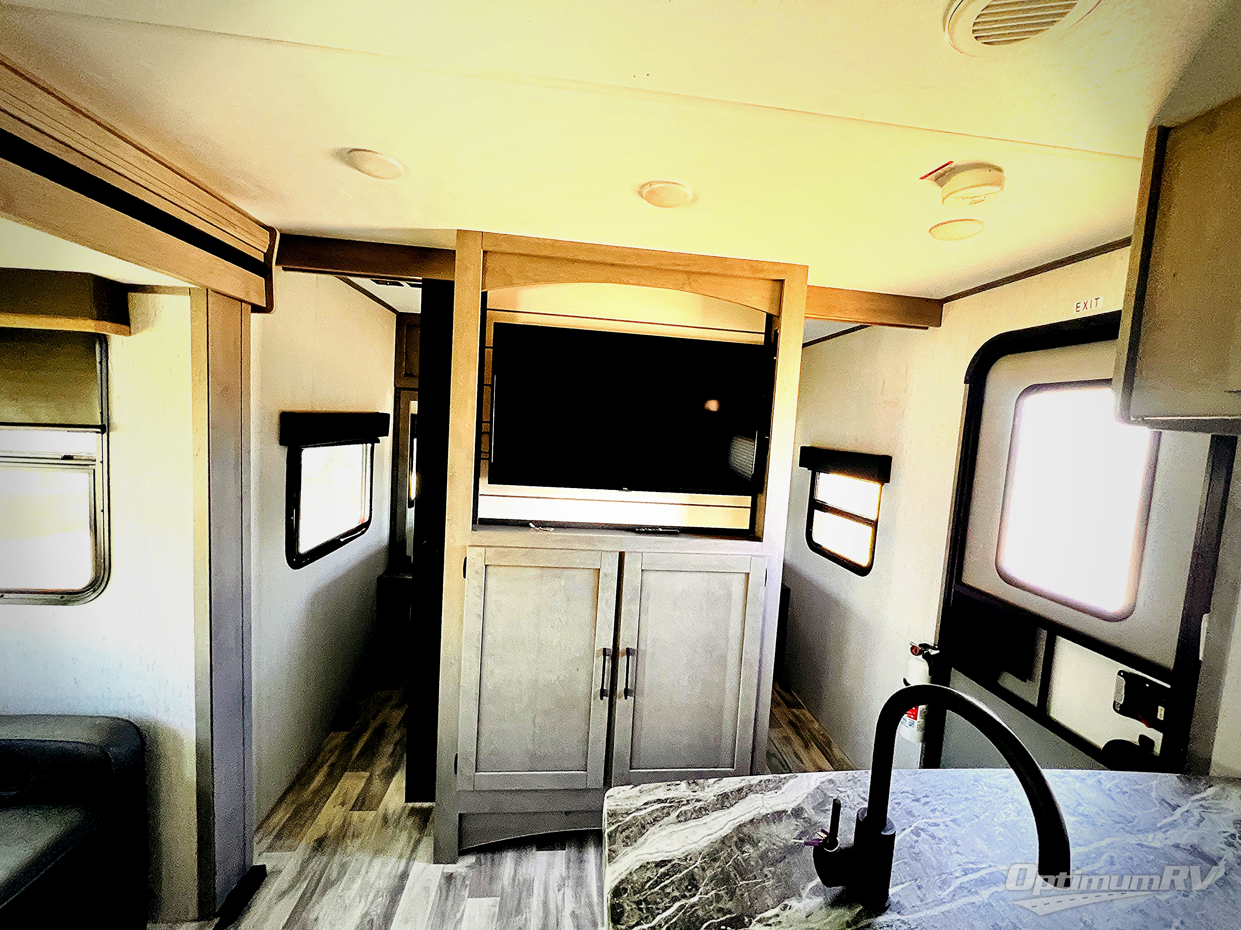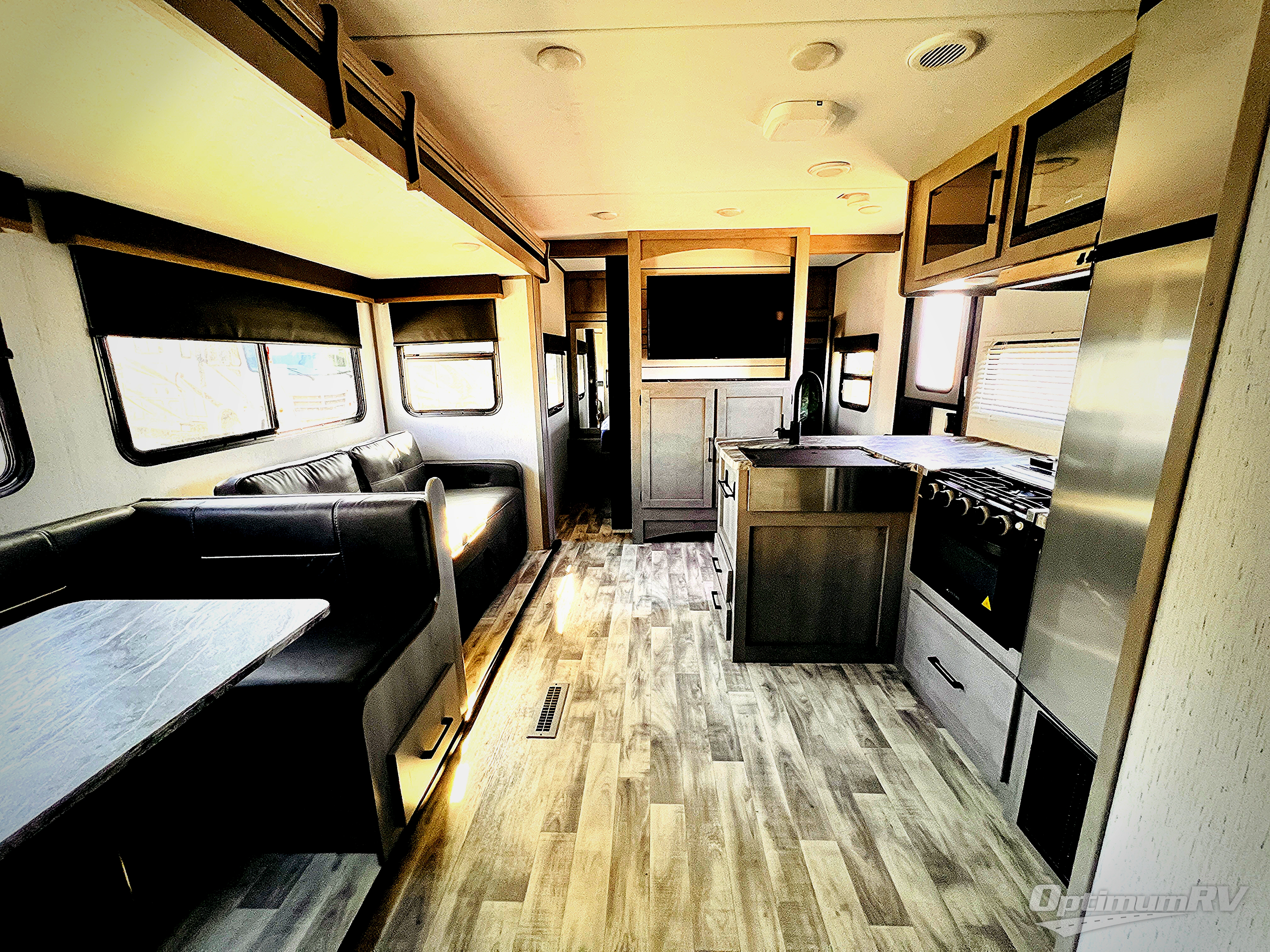 If you've been looking for a lightweight travel trailer with a large sleeping capacity, your search is over! This model can sleep nine comfortably between the queen bed, the furniture within the large slide out, and the private bunkhouse. Your group will love to visit under the 18' power awning with LED lights, especially while dinner is being made on the outside kitchen. If the weather isn't cooperating, just head indoors for game night around the U-shaped dinette!