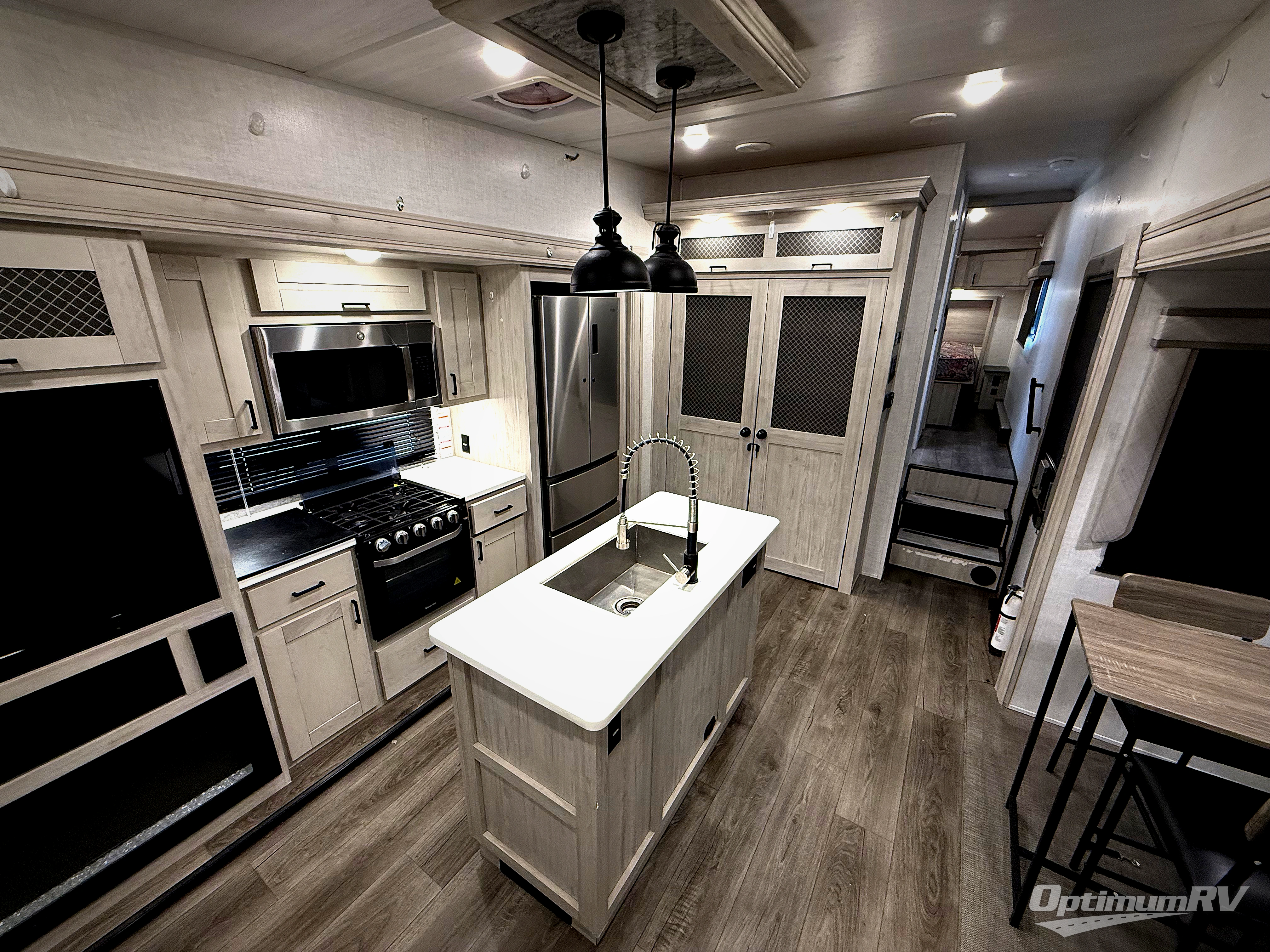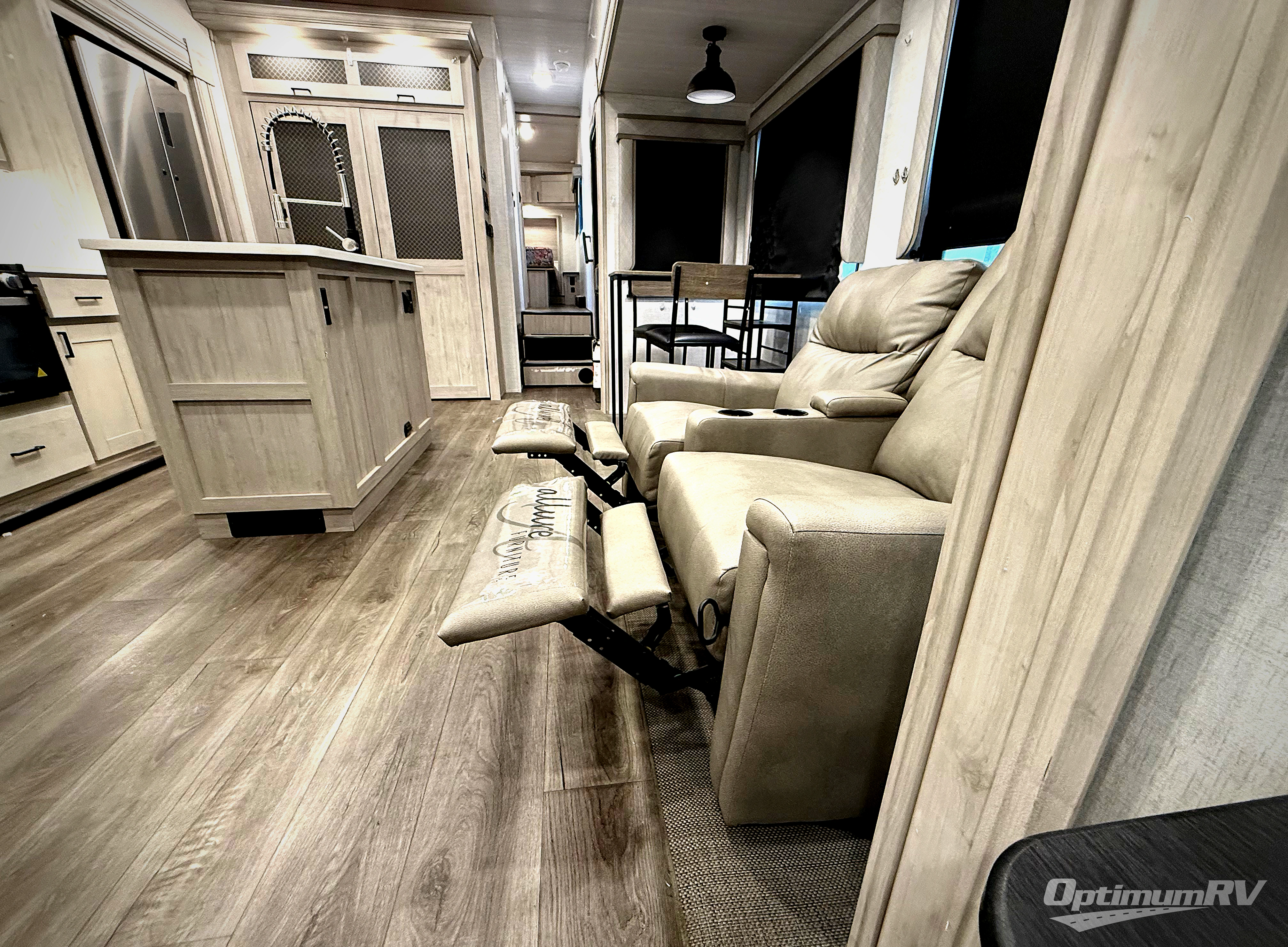 If you're ready to enjoy some luxury at an affordable price, choose this Tandara fifth wheel! The opposing slides will keep the interior feeling open and spacious so that you can enjoy some time in the theater seating. As you relax, you can watch the 50" LED TV across from you, and the fireplace below the TV will provide some extra ambiance. You'll enjoy your own private bedroom to sleep in each night, and the king-size bed is going to be ultra comfortable. There is even under-bed storage where you can keep some extra belongings. The four-burner range in the kitchen is going to be unbelievably helpful when you have a lot of food to prepare for breakfast in the morning.