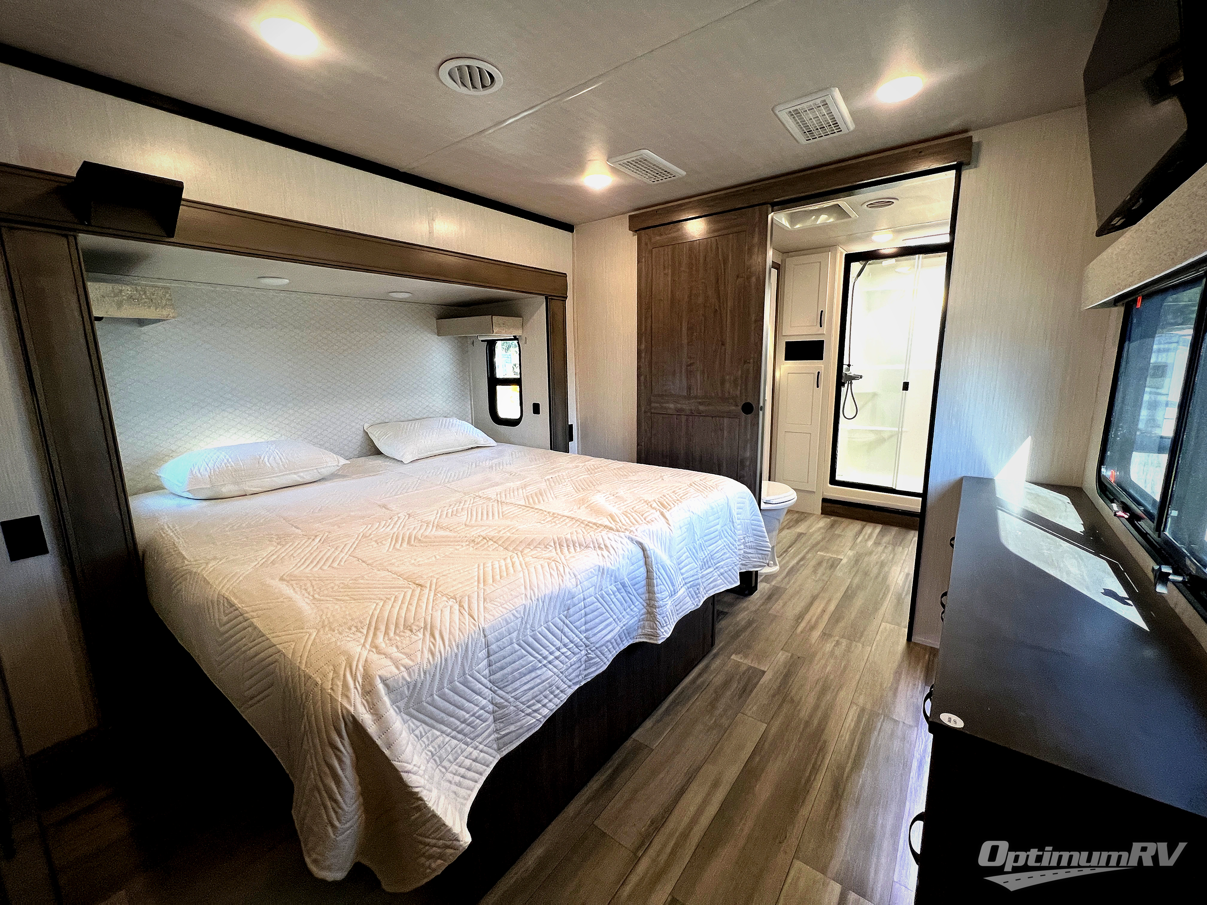 You will have peace of mind camping with any one of these Forest River Cedar Creek fifth wheels or fifth wheel toy haulers! Their aluminum superstructure, high gloss gelcoat exterior, and Dexter heavy duty axles with E-Z lube hubs will outlast all of your adventures. The Silaprene bonded sidewalls resist UV, heat, cold, oils, and highway chemicals with a bond that grows stronger with age while resisting delamination too. With the Vegatouch panel and Firefly dimmer switches, you can have total control of your unit in the palm of your hand. The exterior full docking station has multi-function tank levers, black tank flush, 12V battery disconnect, and an outside shower to keep the dirt where it belongs. The congoleum flooring throughout not only makes you feel right at home, but is also easy to clean. Come find the right model for you today!