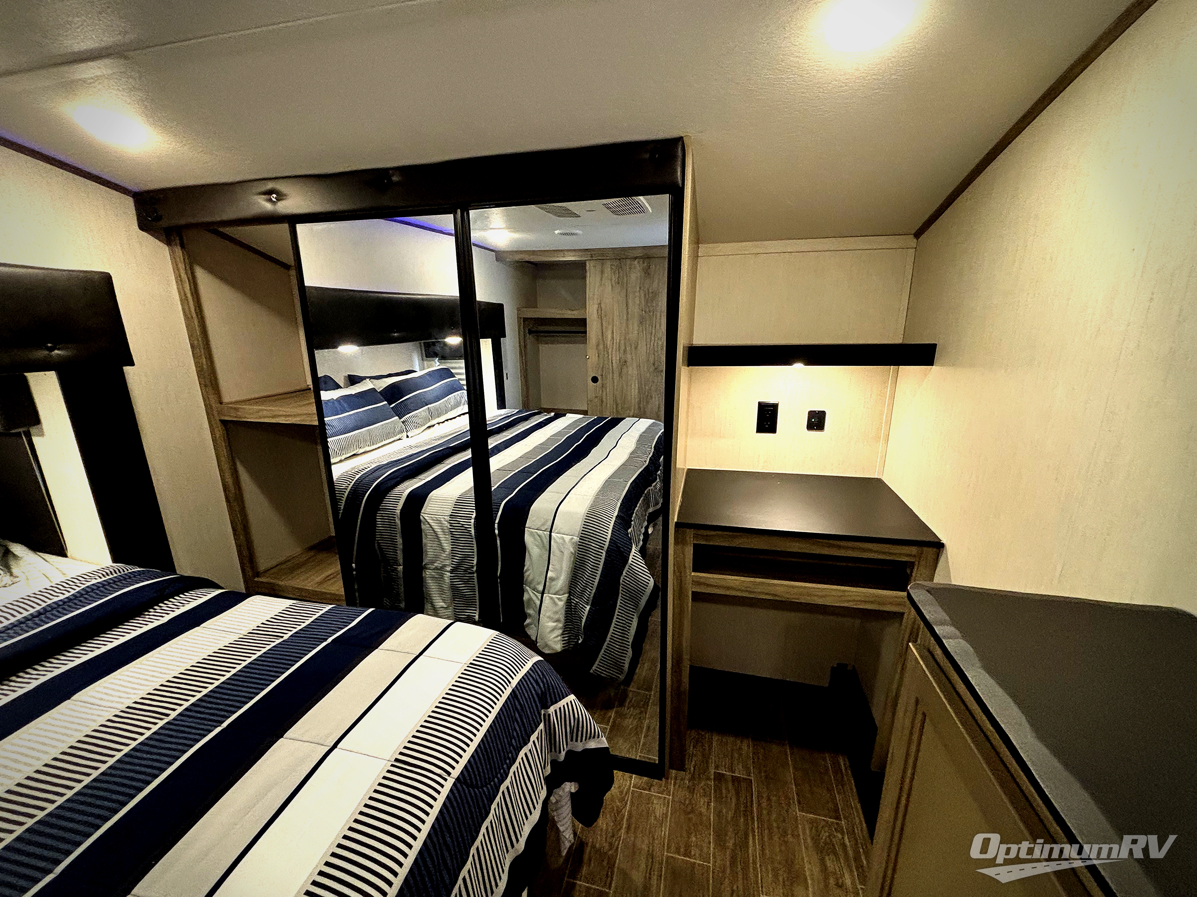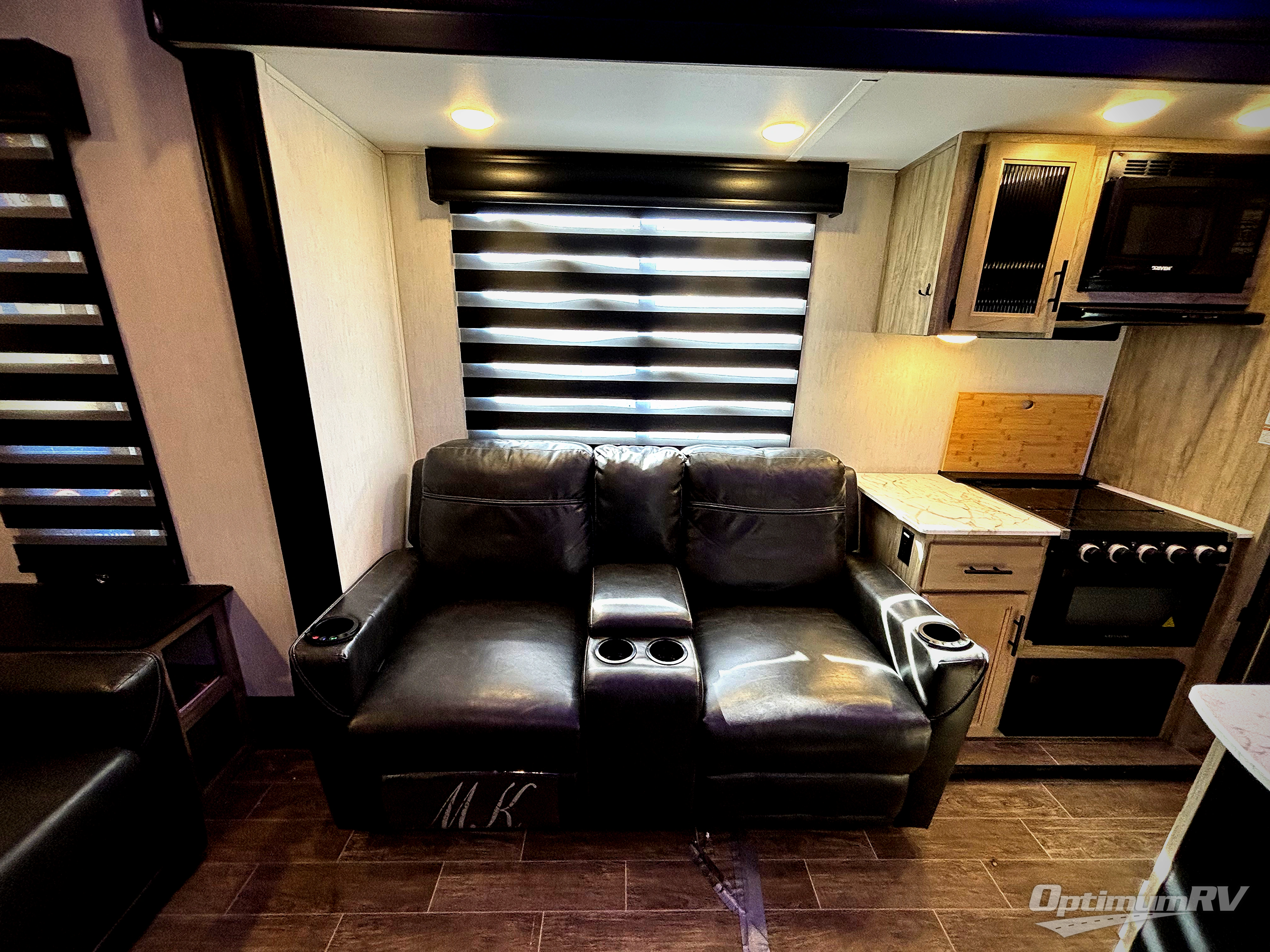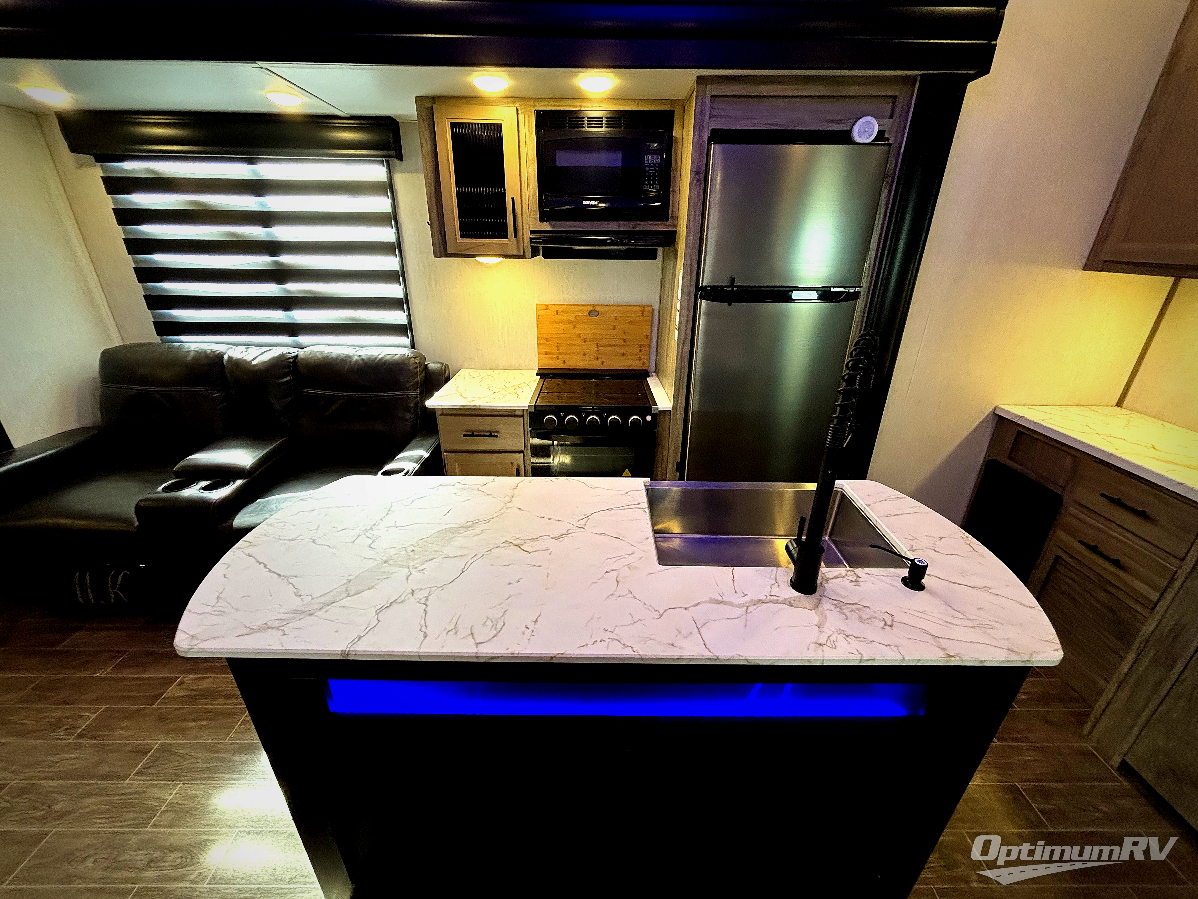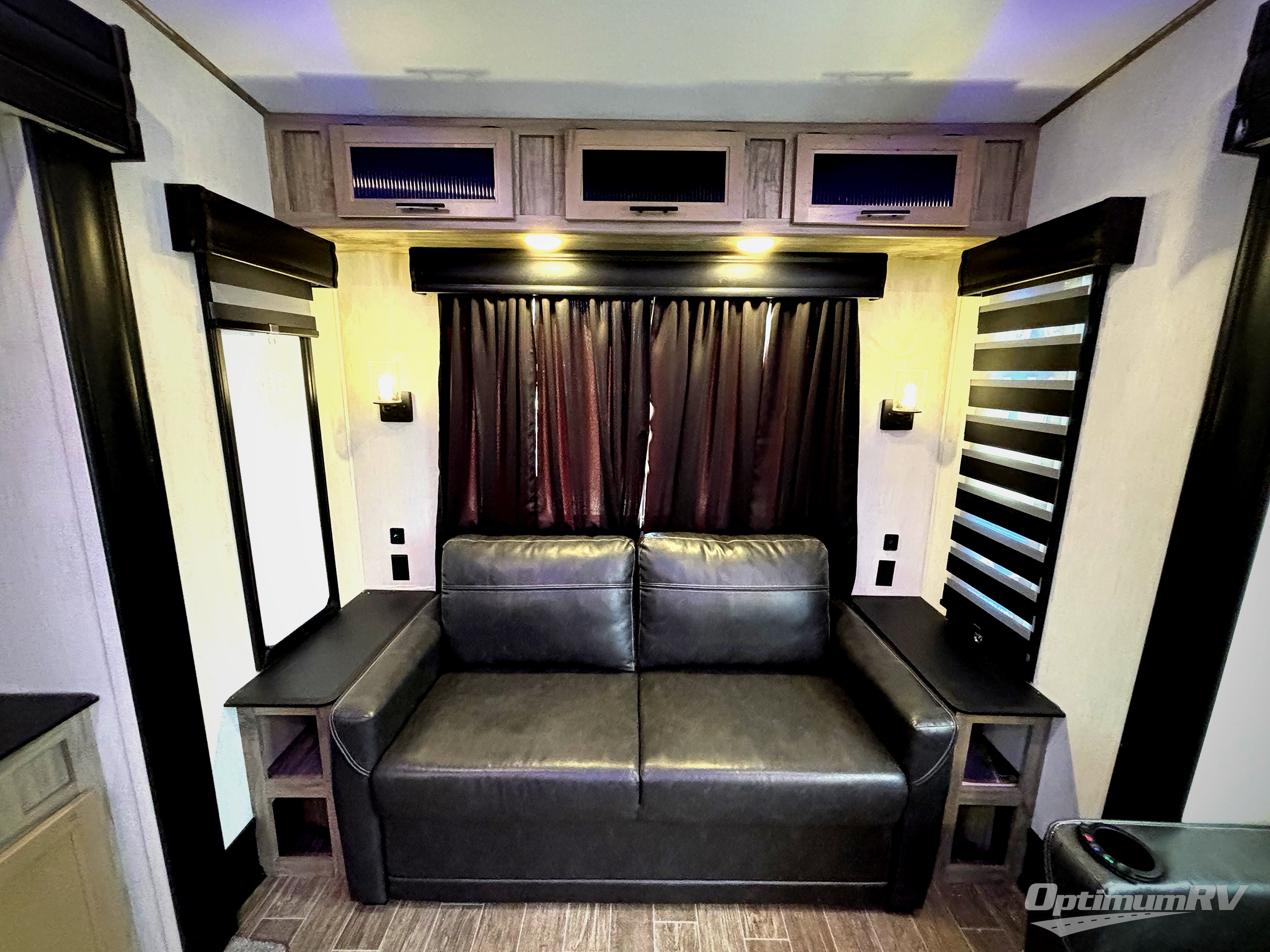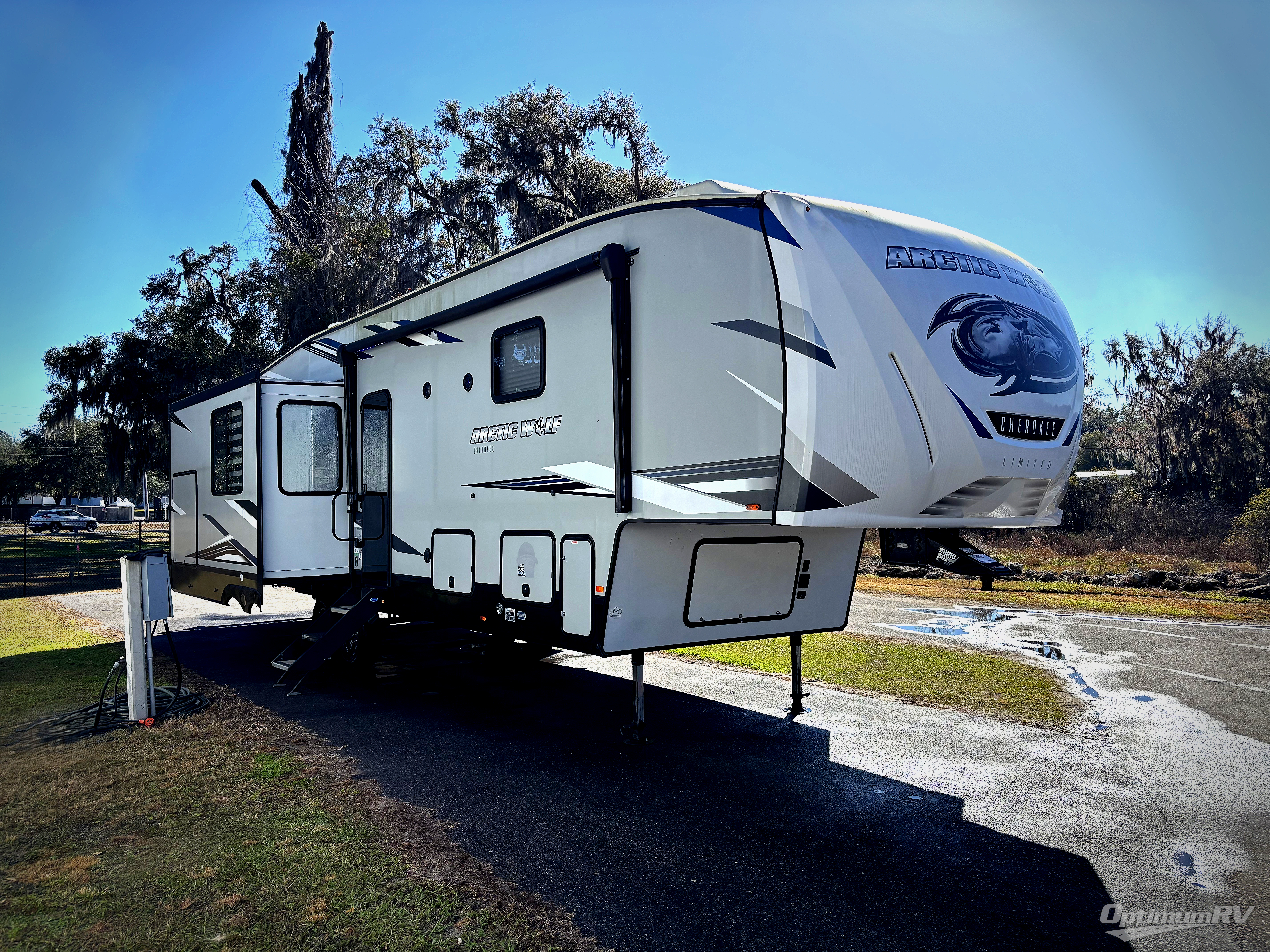 You will have amazing residential comfort in the Forest River Cherokee Arctic Wolf Suite fifth wheels! These units have a “SuperStor” dual-cavern basement storage compartment to allow you to bring more gear, and they have been constructed with a “ToughBend” rigid skirt metal design, a 1x engineered wood “SuperTruss” roof structure with 3/8" decking, and a 5/8” tongue-and-groove plywood floor decking. Each model includes Leash Latch pet safety technology, an outside shower with hot/cold water, preparations for an exterior TV, motion-sensing lighting, and a smart monitor panel with smart phone Bluetooth connectivity. The supersized central air conditioning unit (15,000 BTU) with quick cool air dump feature and second oversized 15,000 BTU ducted air conditioner will cool your unit down in a snap when you camp in the hot summer months.