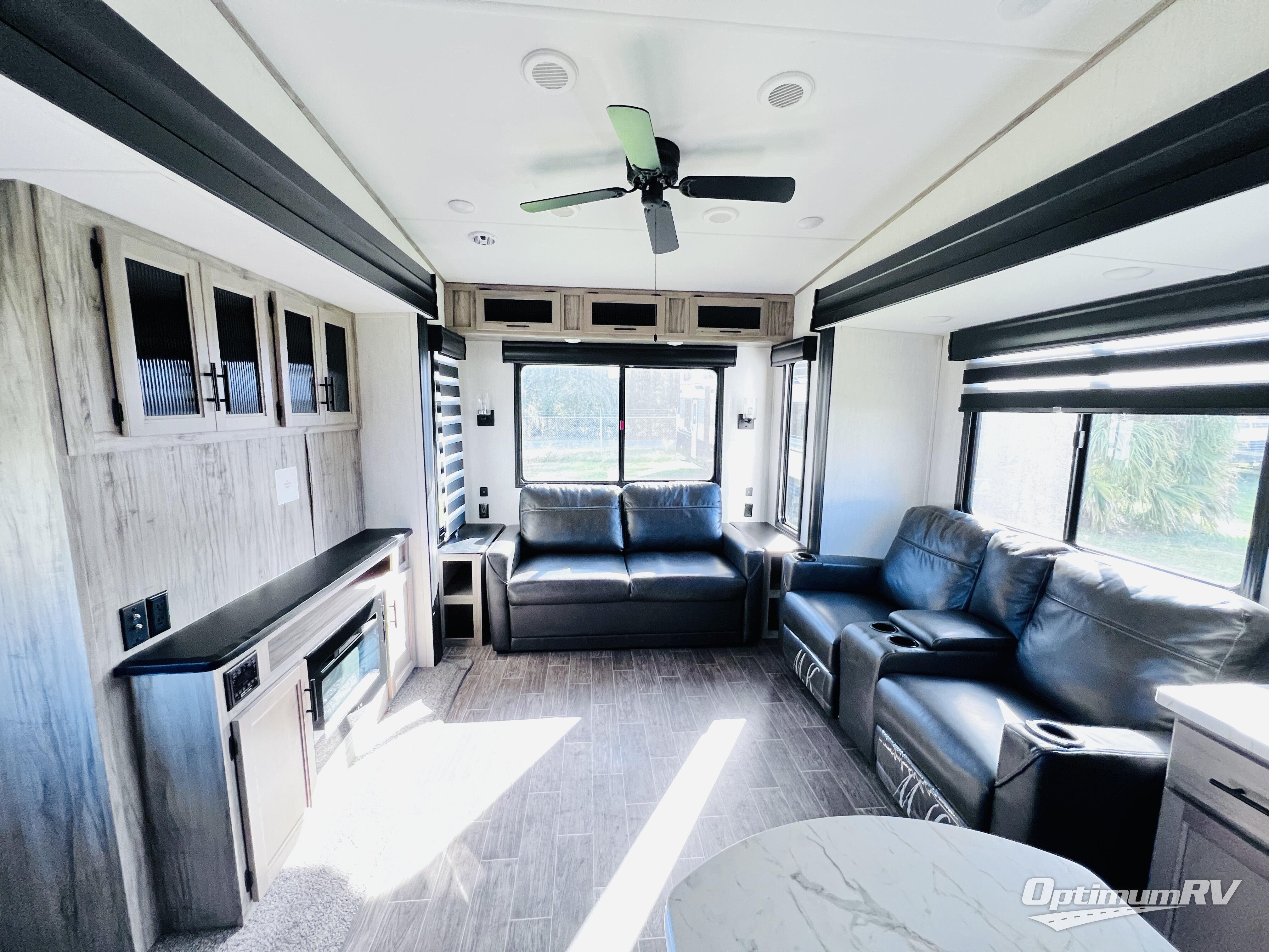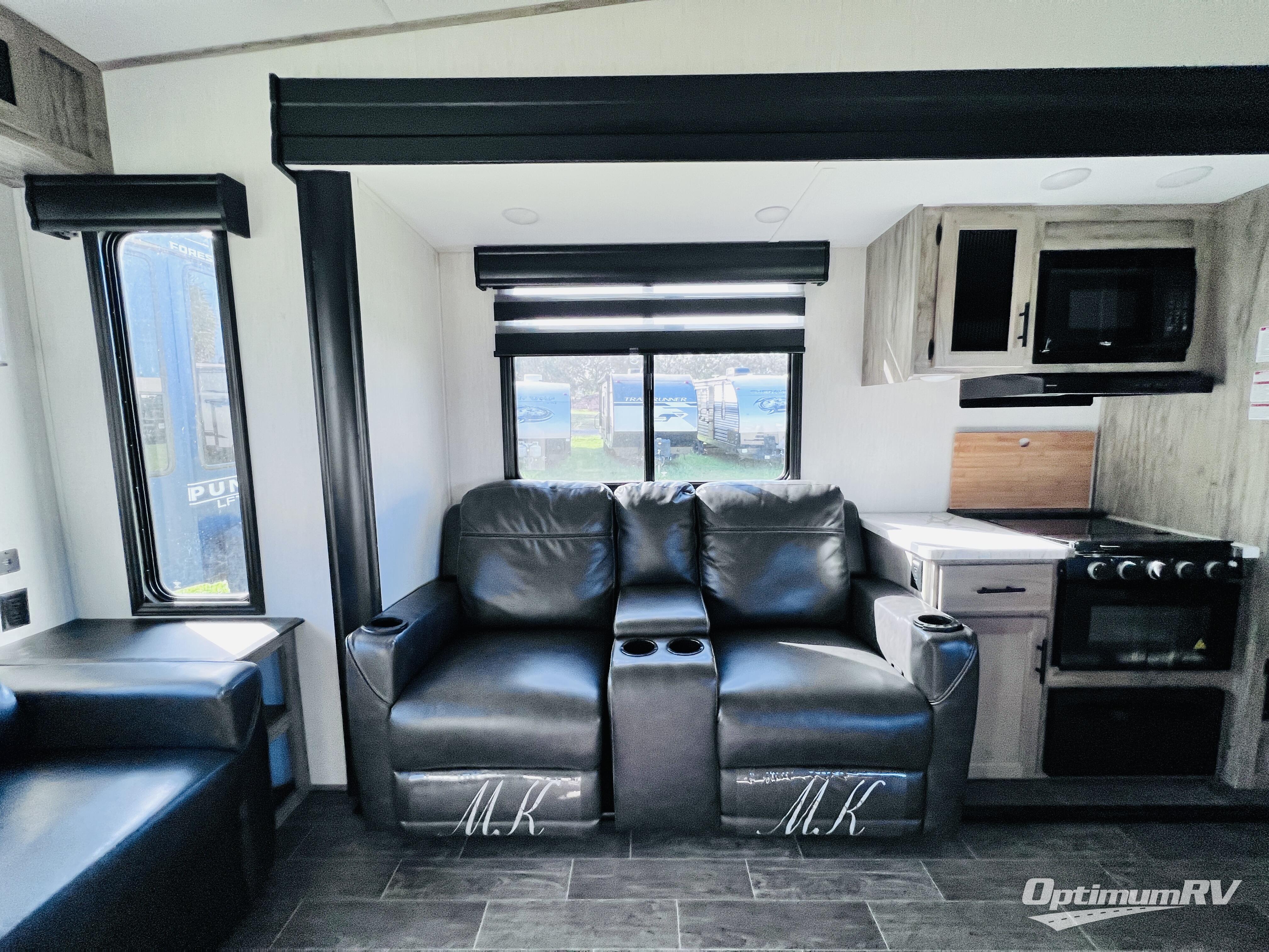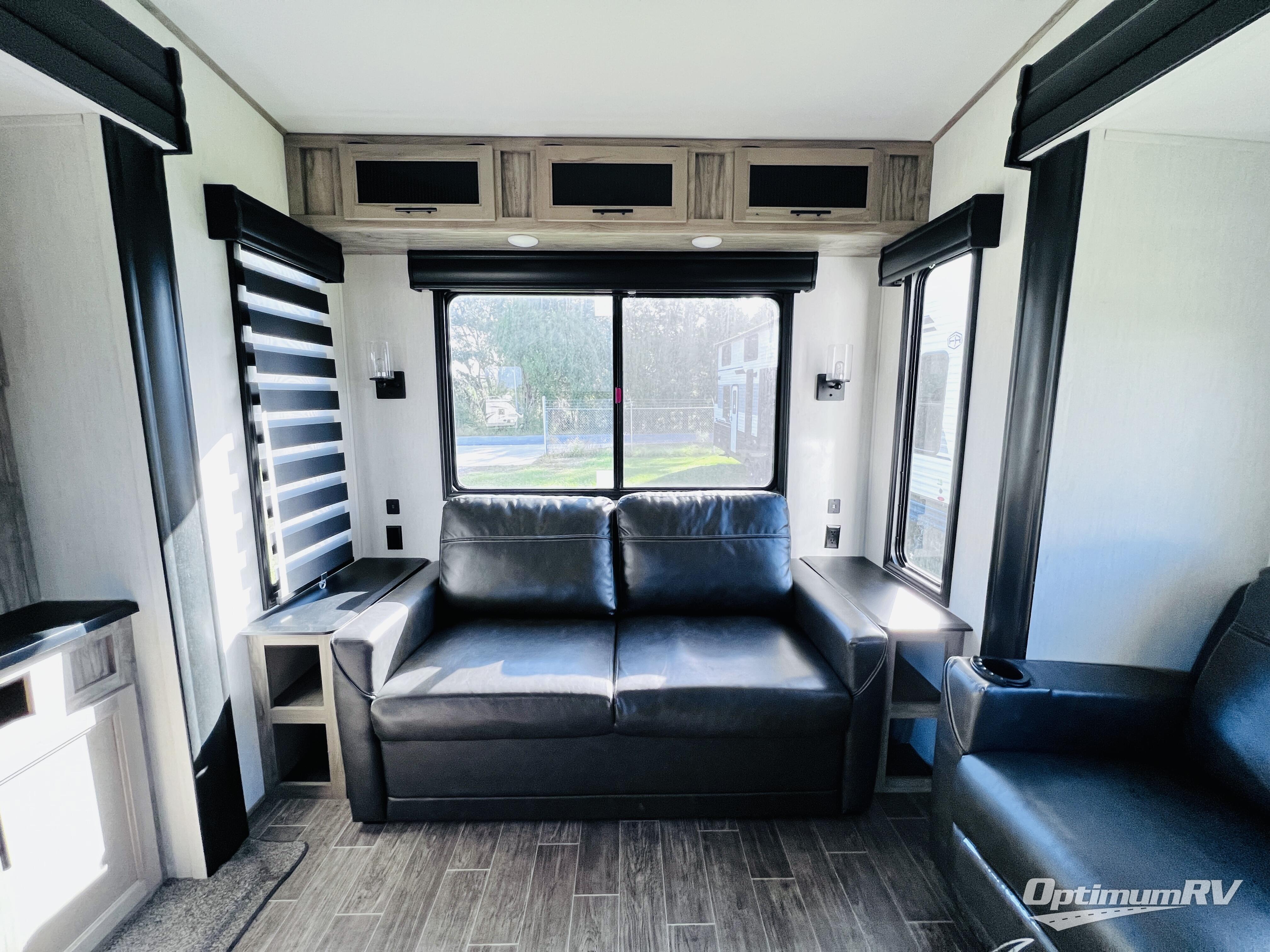 You will have amazing residential comfort in the Forest River Cherokee Arctic Wolf Suite fifth wheels! These units have a “SuperStor” dual-cavern basement storage compartment to allow you to bring more gear, and they have been constructed with a “ToughBend” rigid skirt metal design, a 1x engineered wood “SuperTruss” roof structure with 3/8" decking, and a 5/8” tongue-and-groove plywood floor decking. Each model includes Leash Latch pet safety technology, an outside shower with hot/cold water, preparations for an exterior TV, motion-sensing lighting, and a smart monitor panel with smart phone Bluetooth connectivity. The supersized central air conditioning unit (15,000 BTU) with quick cool air dump feature and second oversized 15,000 BTU ducted air conditioner will cool your unit down in a snap when you camp in the hot summer months.