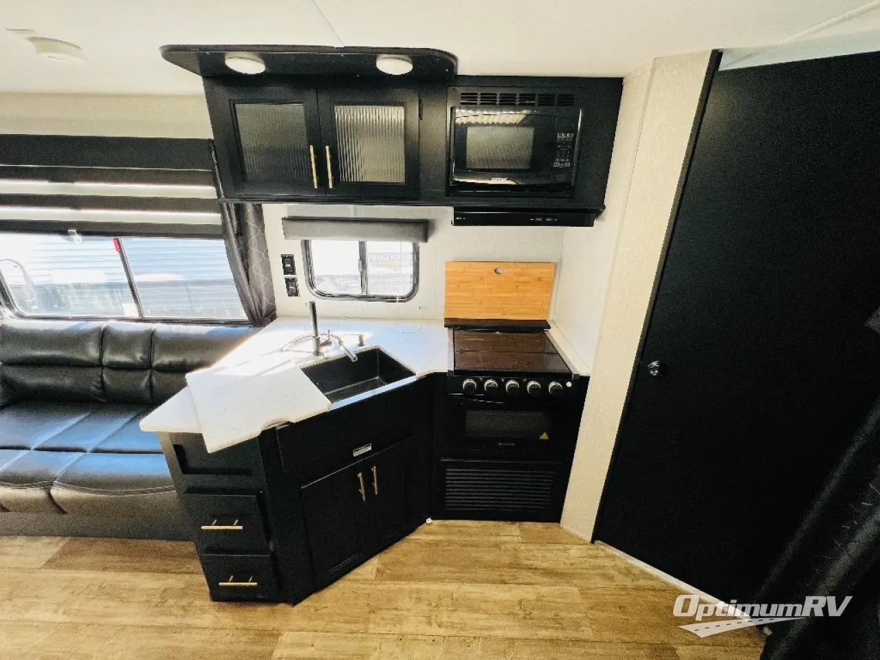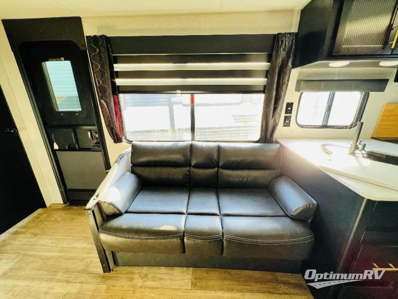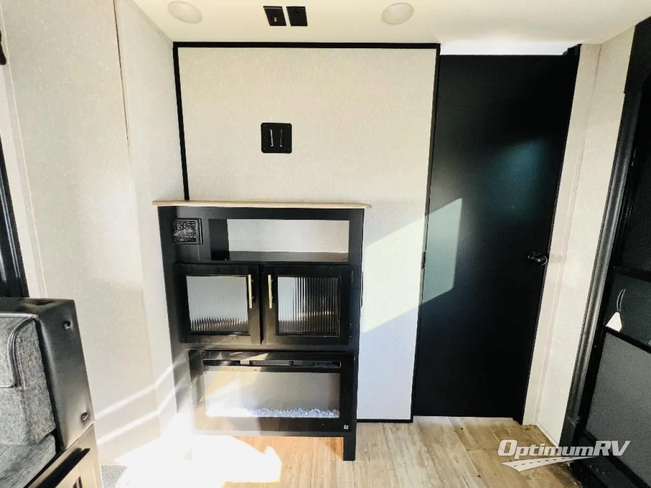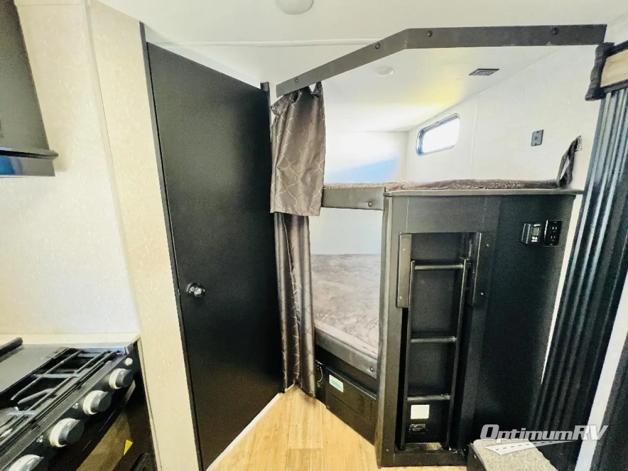 This Cherokee Grey Wolf travel trailer has some of the best accommodations for your group! First of all, it provides you with two entry doors so that everyone can come and go as they please. And before you even reach the interior, you will find that this trailer has an outdoor kitchen all ready for your summertime picnics. Once you do finally make your way to the interior, you'll find that the fireplace creates a beautiful living space next to the sofa and U-shaped dinette. You will also appreciate having a large pantry so that you can stock up on the food your family loves. The double-size bunks have a ladder for easy climbing, and the private bedroom has a queen-size bed for easy relaxing.
