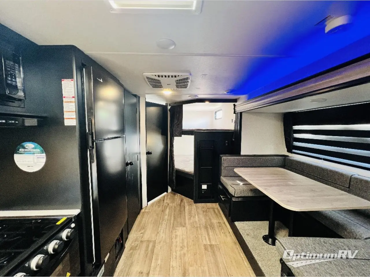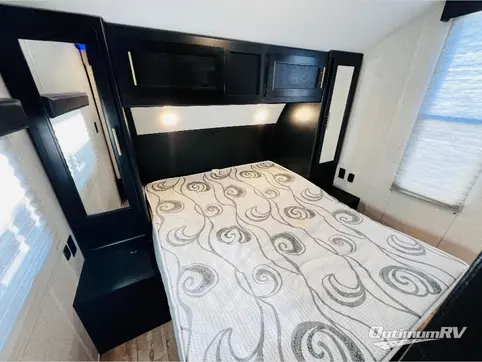 Come on inside this Cherokee Grey Wolf travel trailer and experience the convenience of a smooth flow of traffic in and out with two entry doors. The rear door leads into a full bath which is great for accessibility when outside and when you need to use the bathroom. Once inside, you will notice the large U-shaped dinette and the sofa which sit on the slide and create a spacious footprint for moving about, as well as great places to play games and socialize with your friends and family. A walk-in pantry provides plenty of storage allowing you to stock up on your favorite snacks and dry goods for your family adventure. At night, there is sleeping space for everyone between the double-size bunks and the queen-size bed, plus the furniture.