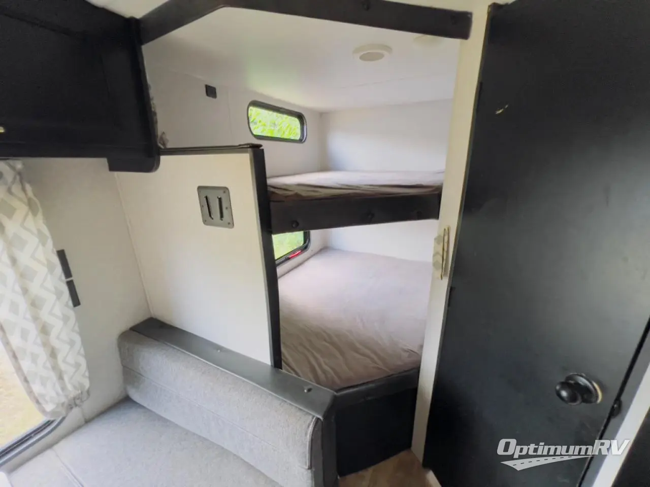 Enjoy cooking for nine in this Cherokee Grey Wolf travel trailer. With a three-burner cooktop, an overhead microwave, and an oven, you can easily cook just like home. The residential farm-style stainless steel sink makes cleaning your larger pots and pans quite simple, and the large overhead cabinets make storage an easy task as well. There is plenty of seating for the whole gang with the sofa and the booth dinette to play a game or two after you have enjoyed your delicious meal. Your kiddos are sure to love having their own set of double-size bunks conveniently located next to the rear bath, and you will love having your own front semi-private bedroom when you close the privacy curtain. You can also create some outdoor living space beneath the 15' power awning so that you can enjoy the great outdoors whether rain or shine!