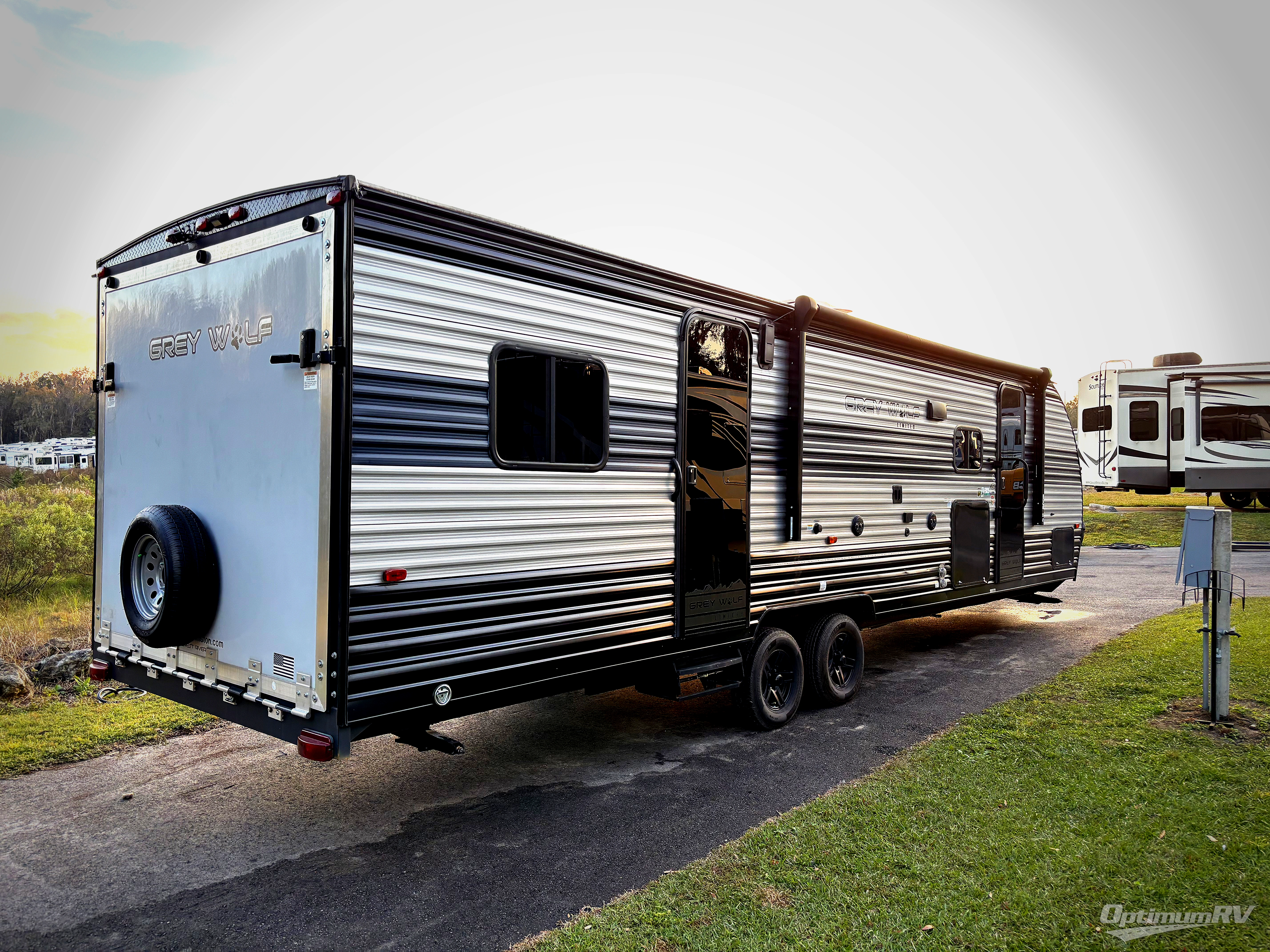 Whether it's a journey that will take you to new locations or a tried-and-true getaway to that favorite and memorable destination, the Forest River Cherokee Grey Wolf travel trailers and toy haulers are going to make the trip worth it every single time! You can travel in confidence with the premium wheel package, seamless roofing membrane with heat reflectivity, Power Gear frame technology with space-saver rail design, and Cherokee back-up camera system. The Cherokee Grey Wolf's interior is highly attractive with its stainless steel kitchen suite package, premium bedding ensemble and comforter, and 8" ceiling-mounted subwoofer with accent lighting. You will also find a black waste tank flush-out kit, an outside shower with hot and cold water, an armored underbelly tank enclosure, a power tongue jack, and an RV grill quick connect.