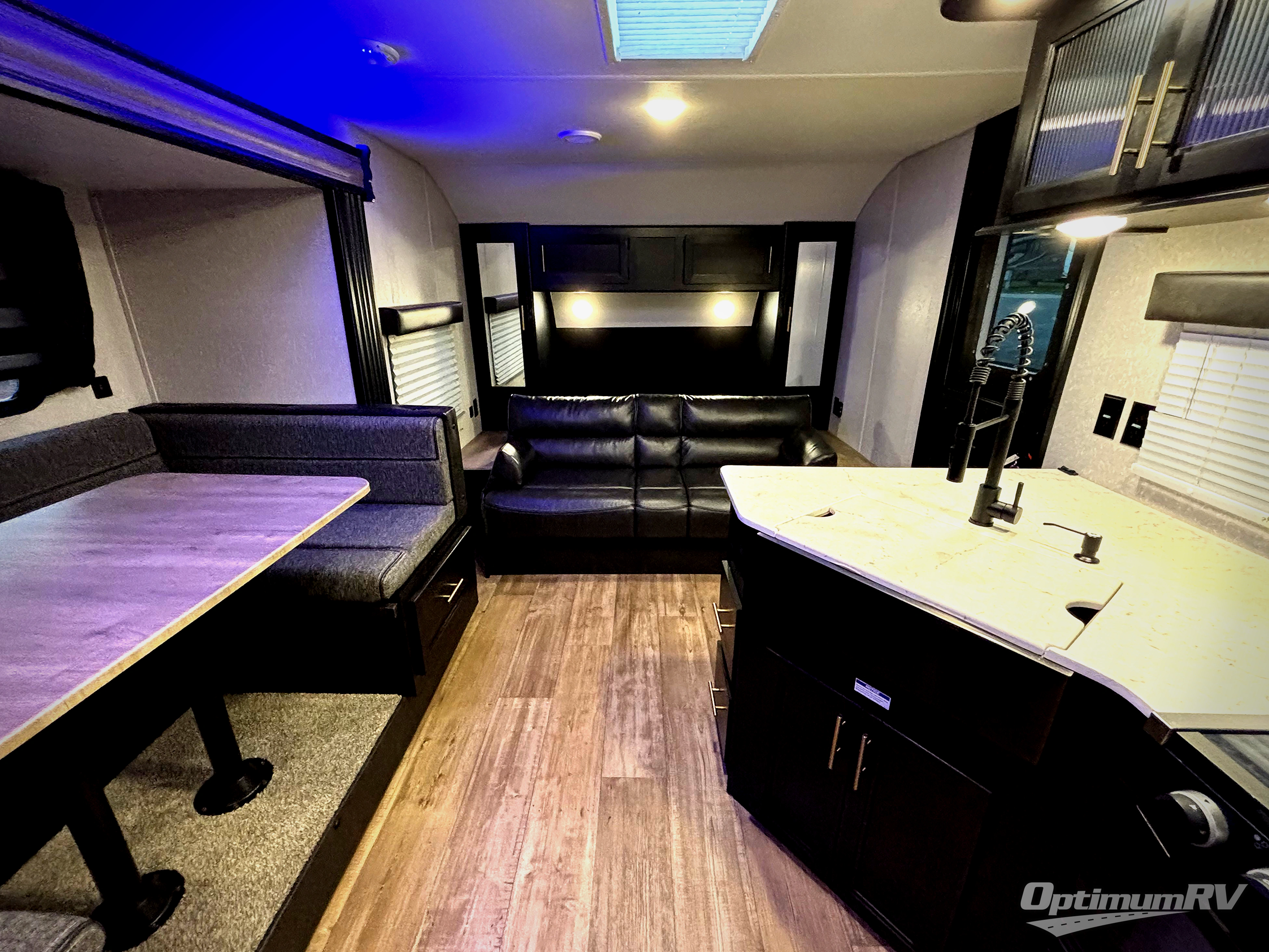 This Cherokee Grey Wolf toy hauler is perfect for those who are concerned about keeping the fuel smells and grime from entering the main living area. In this unit you can enjoy the separation with a door and the walk-though bath. In the cargo area, you will have plenty of space for hauling all of your favorite toys. This area also features dual fold-down sofas with a dinette table that is great for your thrill seekers to come in for a break from riding. It also allows quick access into the bathroom without having to wander through the entire main living area where you are likely to leave a trail behind. After a full day of playing hard, you can get cleaned up and head into the main kitchen area where you will enjoy a U-shaped dinette. A full kitchen allows you to refuel your body, and there is also a Cherokee Sleep System up front for a great night's sleep.