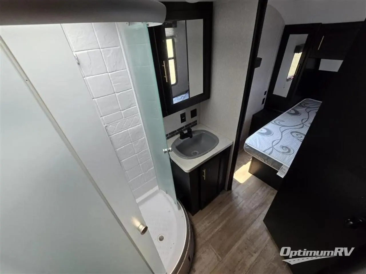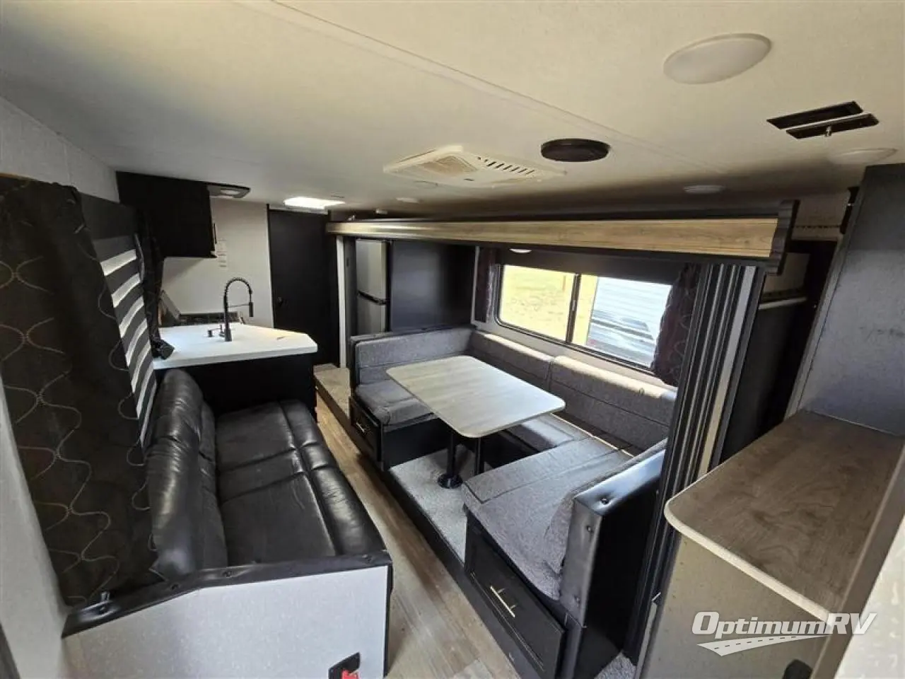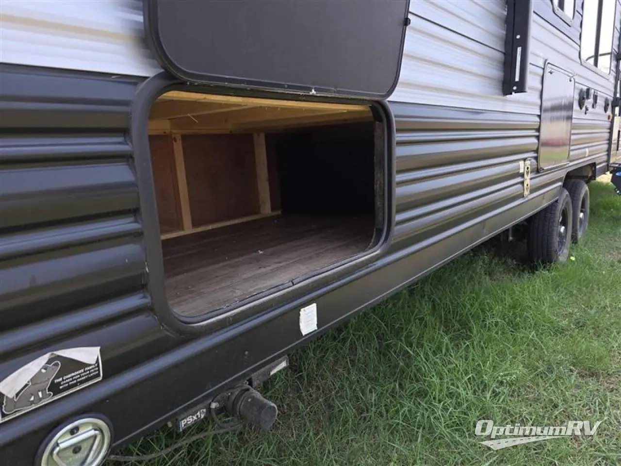 The private bedroom in the front for you and the private bunkhouse in the back for your friends are what make this Cherokee Grey Wolf travel trailer so accommodating! Now everyone can have a place to sleep, get changed, and call their own. The central living area will be where you can all come together to socialize on the U-shaped dinette and sofa, and with the kitchen amenities located right next to this area, you can also work on dinner while you chat. You could even make your dinner preparations a part of the fun going on outside if you choose to use the outdoor kitchen. The full bathroom is also going to be a valuable feature since it comes with a radius shower, linen closet, toilet, sink, and medicine cabinet.