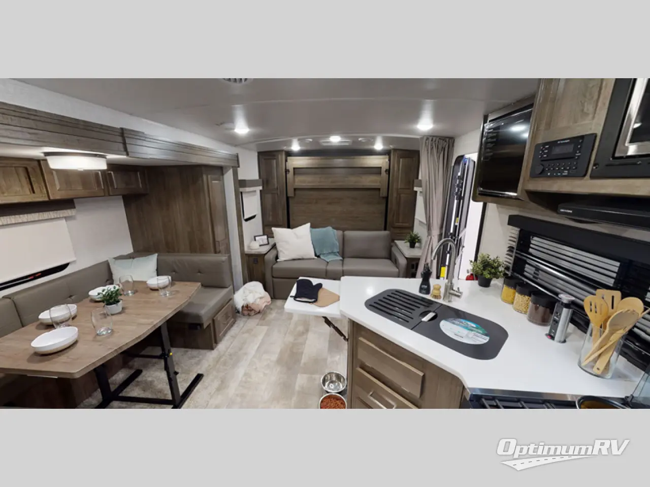 Are you ready to camp at your leisure? If so, then this Flagstaff Micro Lite travel trailer is ideal for you! There is sleeping space for four people in this unit, so you can camp with your kids or even an overnight guest or two. The single slide opens up the floor space so that you won't feel cramped. You'll enjoy a sofa in this model that conveniently converts into a Murphy bed for a good night's rest. This trailer features a kitchen with a three-burner cooktop, a countertop extension, and a double sink which makes clean-up a breeze. Enjoy the evening air when you cook outdoors using the outside kitchen that includes a two-burner cooktop, a sink, and a refrigerator.