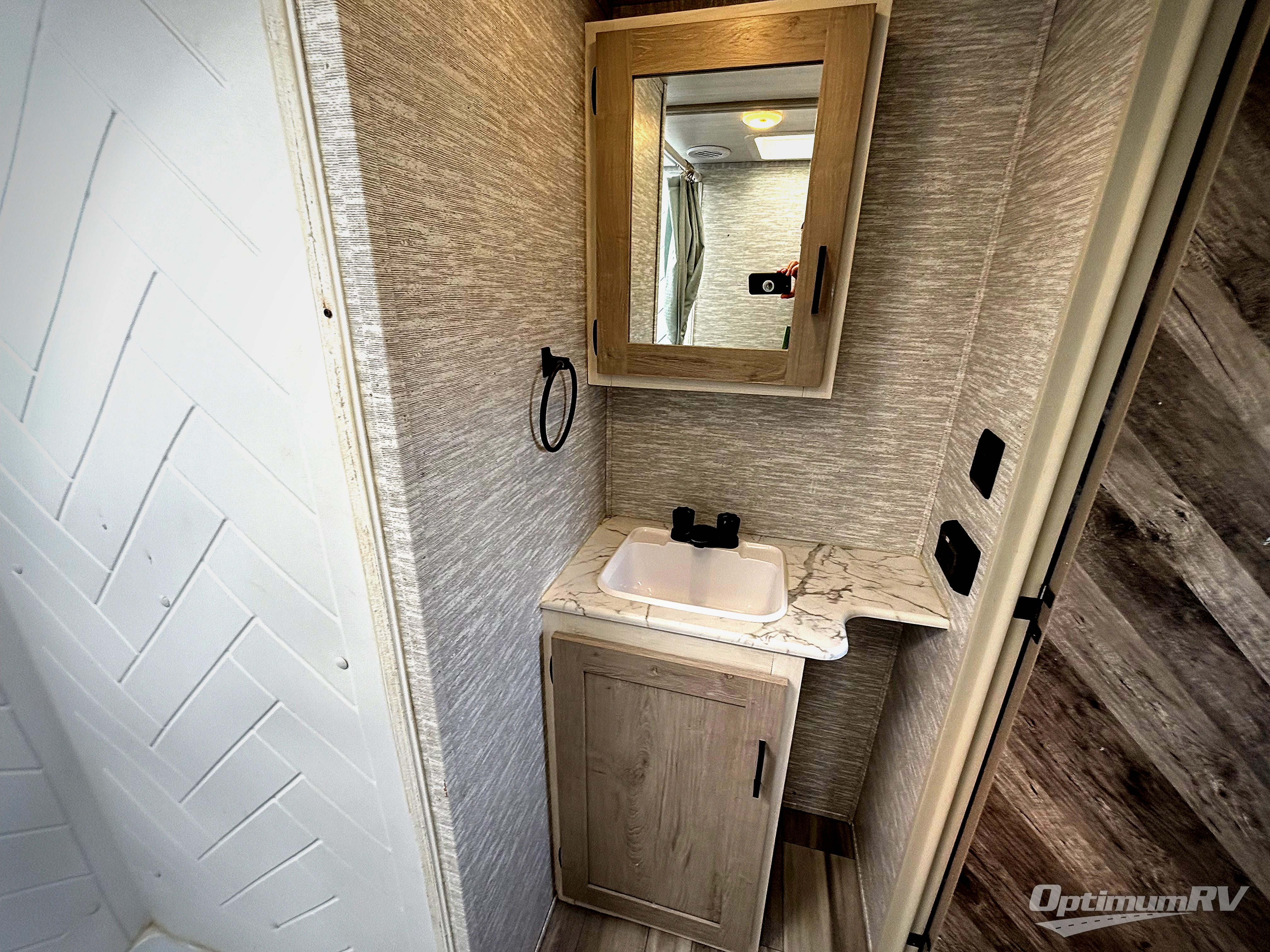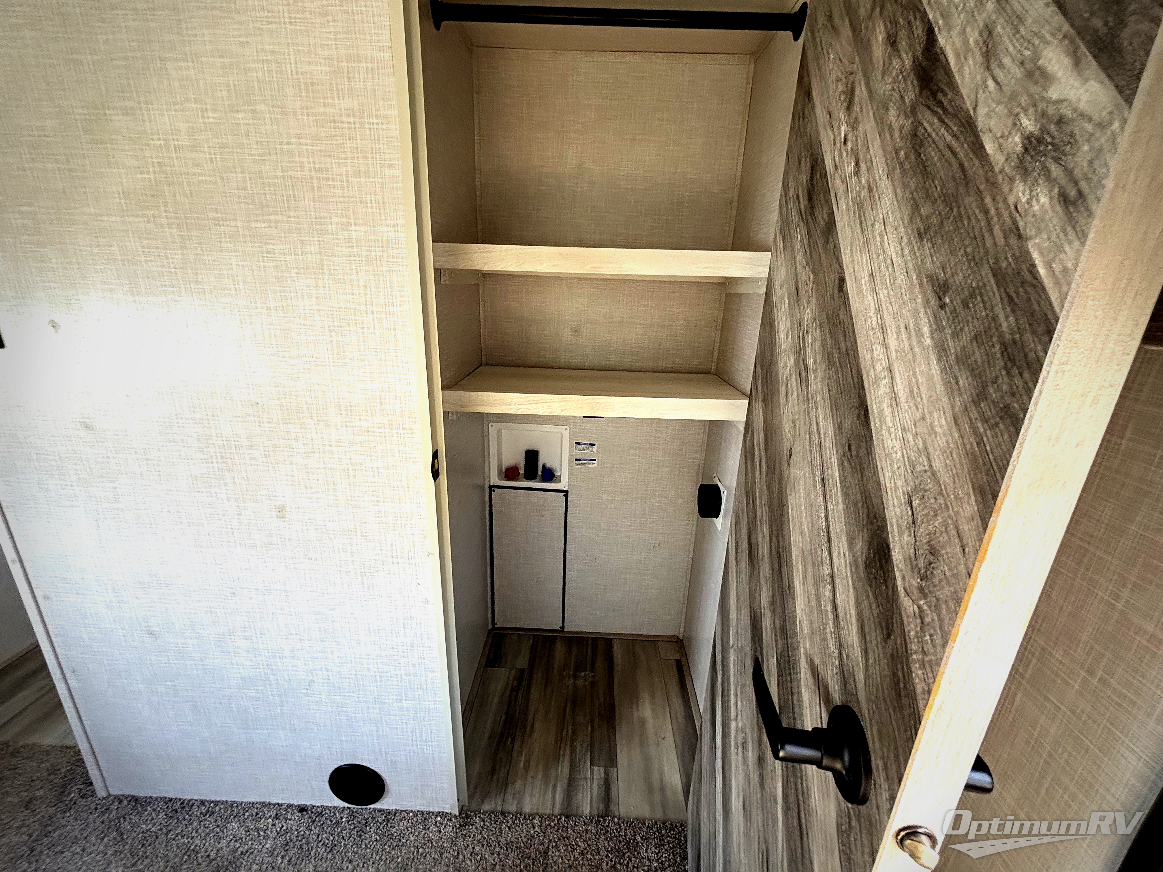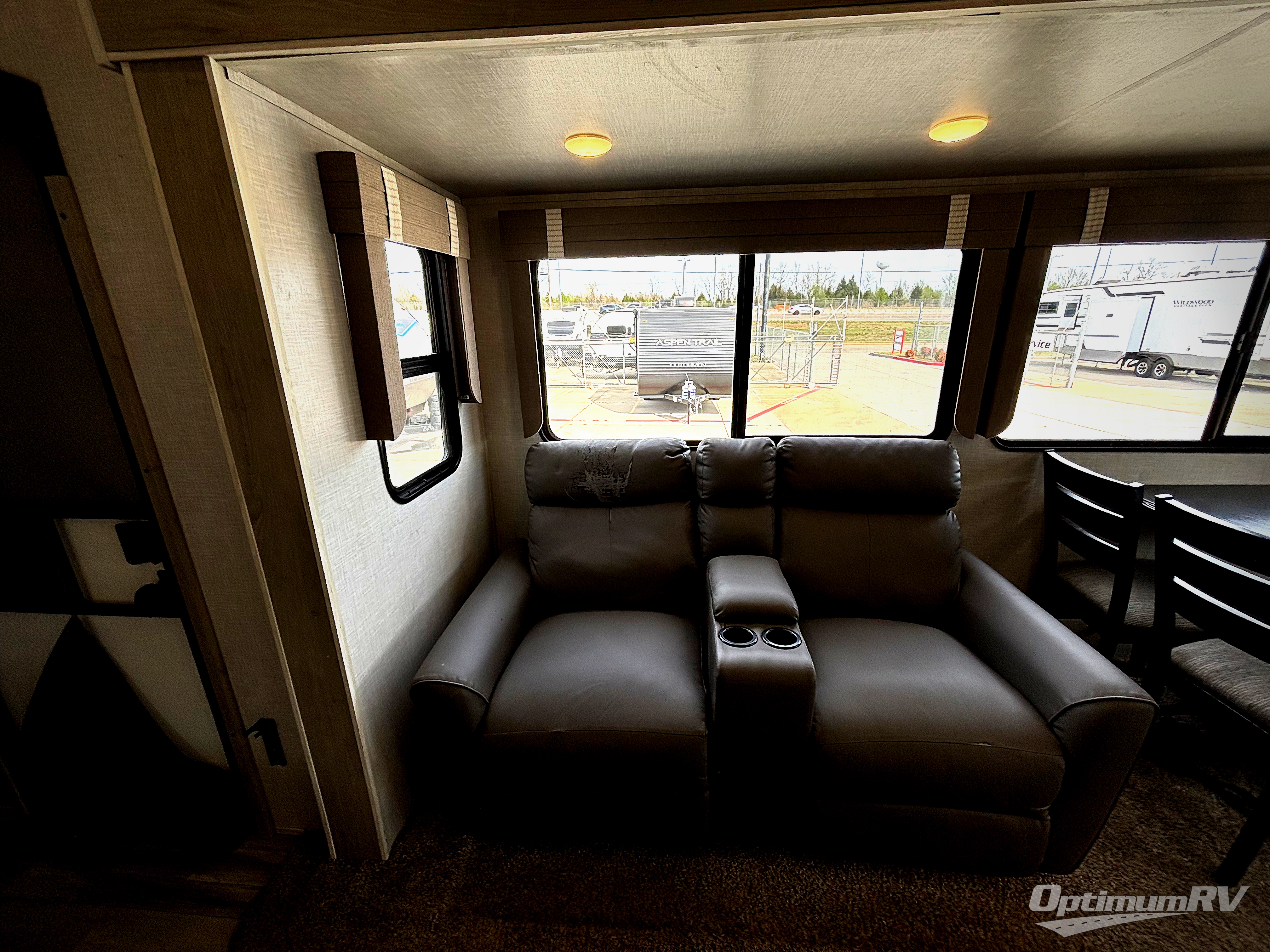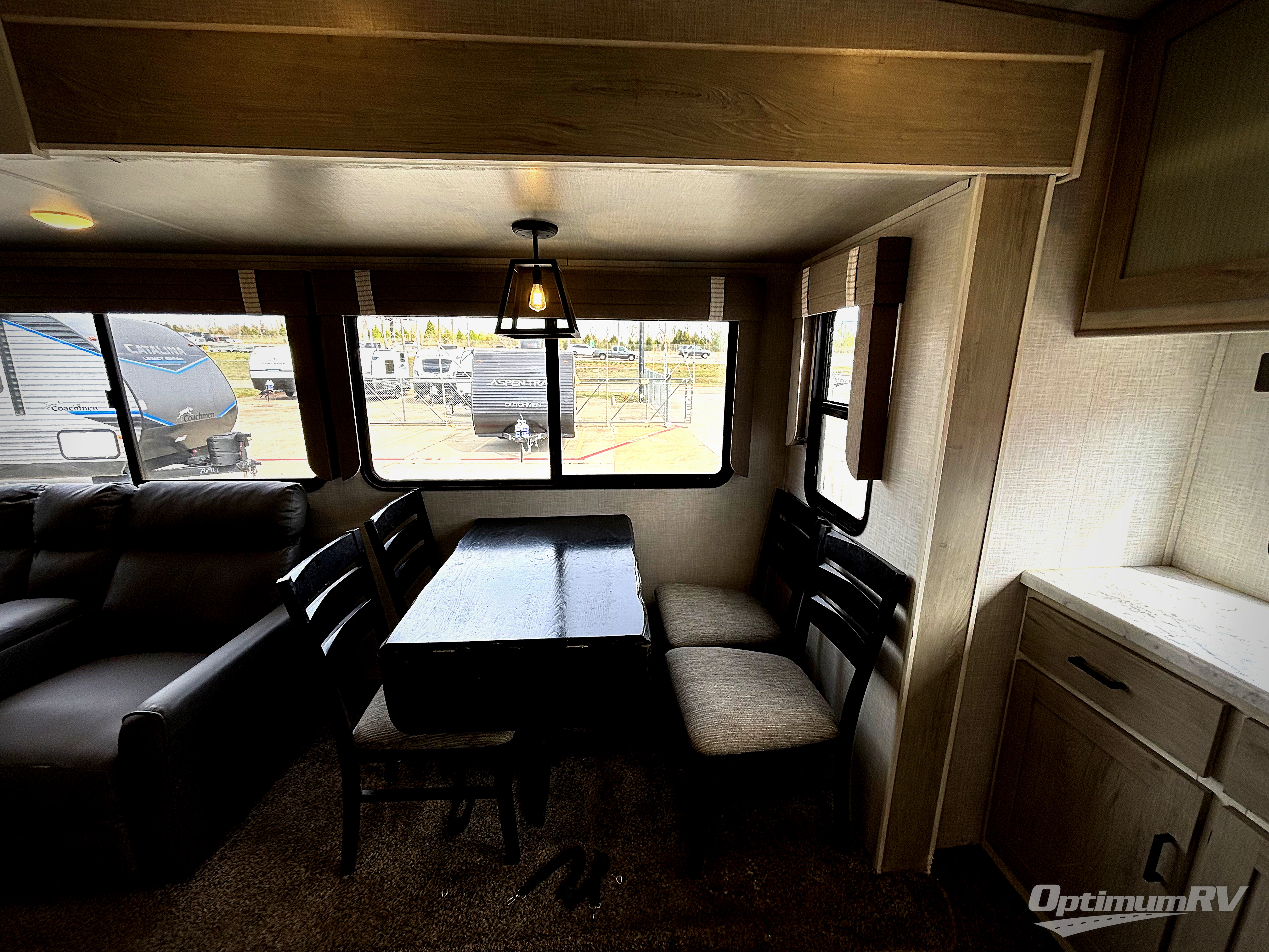 This fifth wheel is spacious, inviting and comfortable! Walk right inside to the combined kitchen and living area with two opposing slides, or walk around the kitchen island to access the floor-to-ceiling pantry. There is a large counter space plus lots of upper and lower cabinets for your dishes, games, and such. You can dine or even work at the free standing dinette with chairs, and relax on the theater seats with USB ports or the tri-fold hide-a-bed sofa while watching the 50" LED TV with soundbar and enjoying the fireplace below. Get cleaned up in the full bathroom and fall quickly to sleep on the walk-around queen bed in the front bedroom that includes three wardrobes, a space prepped for a washer/dryer option, plus nightstands.