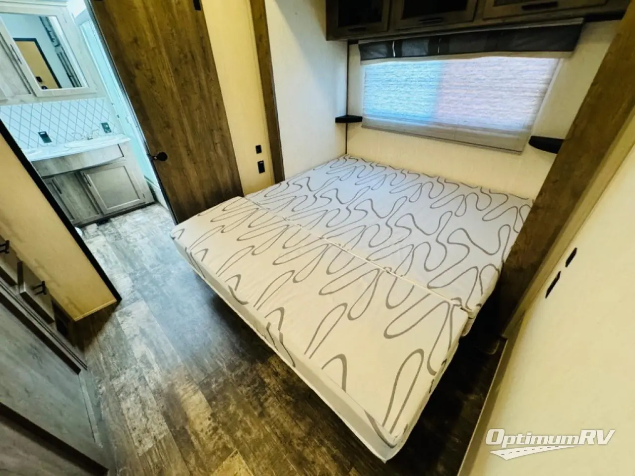 This Sabre fifth wheel with a full and half bath is sure to be a crowd pleaser! The front living area is the perfect place for everyone to visit each other comfortably on the two tri-fold sofas that can be transformed into extra sleeping spaces, or at the theater seating for complete relaxation. You will also find an entertainment center with a fireplace and a residential-size LED TV. This Sabre kitchen is packed out with convenient features, such as a 12V refrigerator with French doors, a kitchen island, and a lighted pantry with motion sensors. The rear master suite has access to its very own full bathroom with a double-sink vanity for two to get ready at once and a wardrobe that is prepped for the optional washer and dryer to be added for convenience!