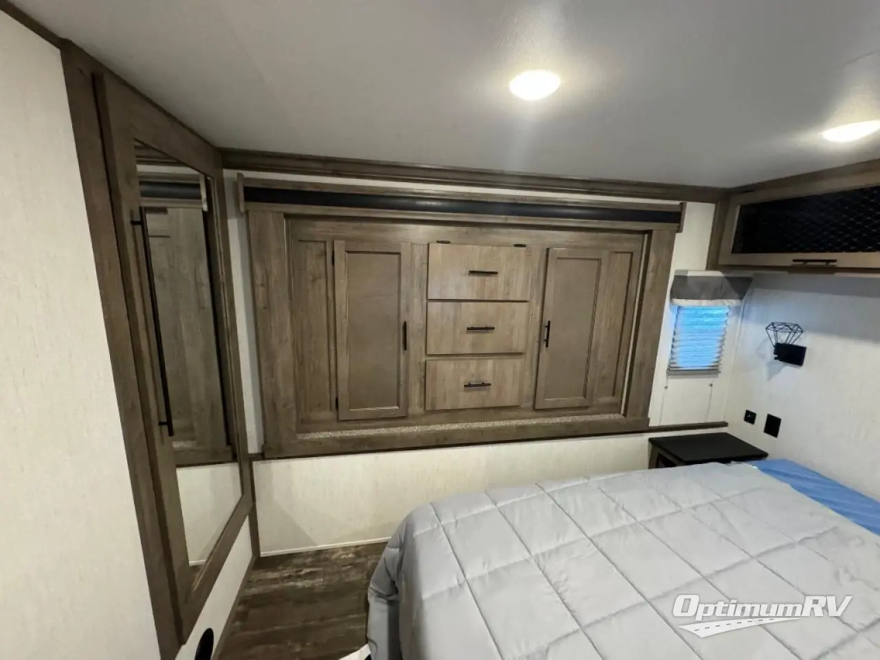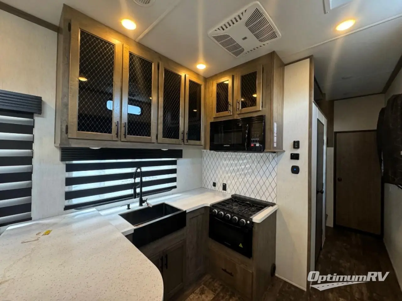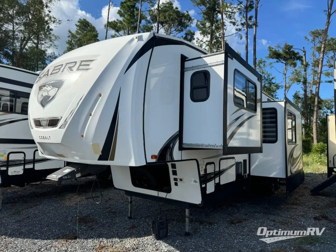 You will experience luxurious camping trips at an affordable price with any one of these Forest River Sabre fifth wheels! These models are durable and ready to travel anytime of the year thanks to features like the high-gloss gel-coat front cap with LED lighting, the PVC roof membrane, and the forced air underbelly with enclosed gate valves. The electric auto-leveling system makes setting up easy and safe, and the adjustable power awning with LED lighting will create an inviting outdoor living space. Each model includes a universal docking station which includes a black tank flush and an outside shower, and the backlit "Secure Step" landing for you to enter and exit the unit safely. Inside, you will love the design of the ambient accent lighting above the crown molding in the living area, the real wood lumbercore cabinetry, and the vintage gaslight decorative lighting!