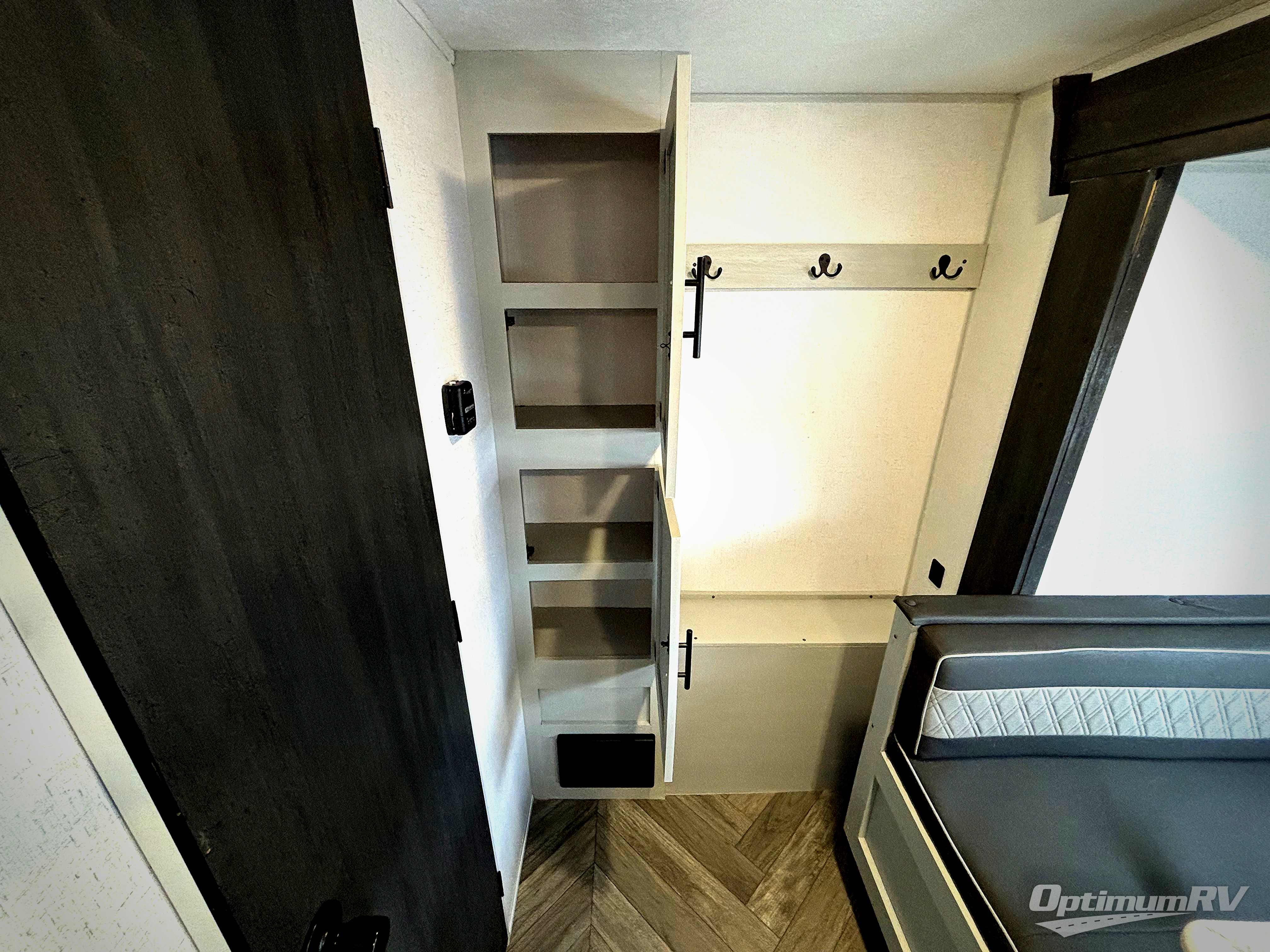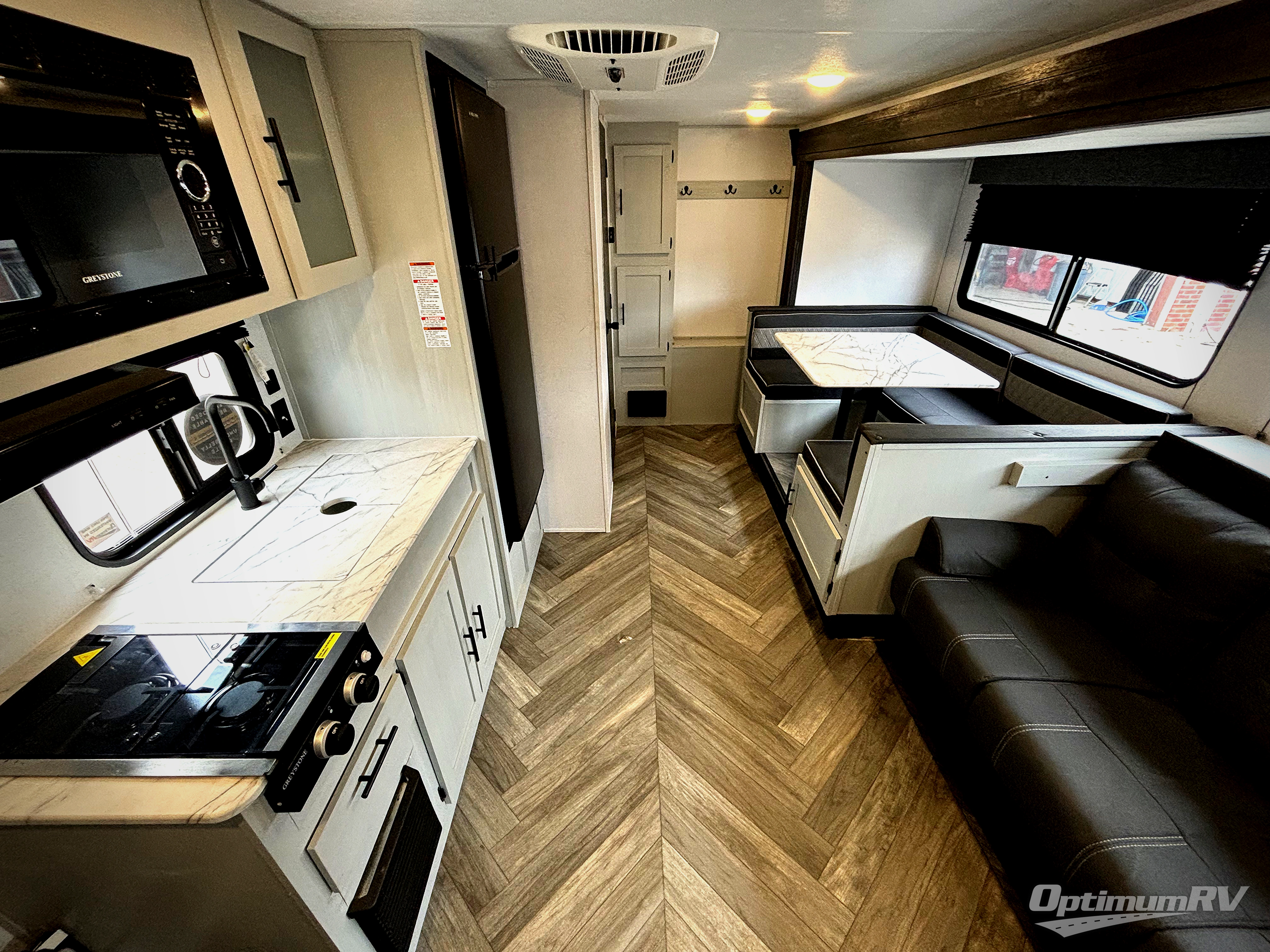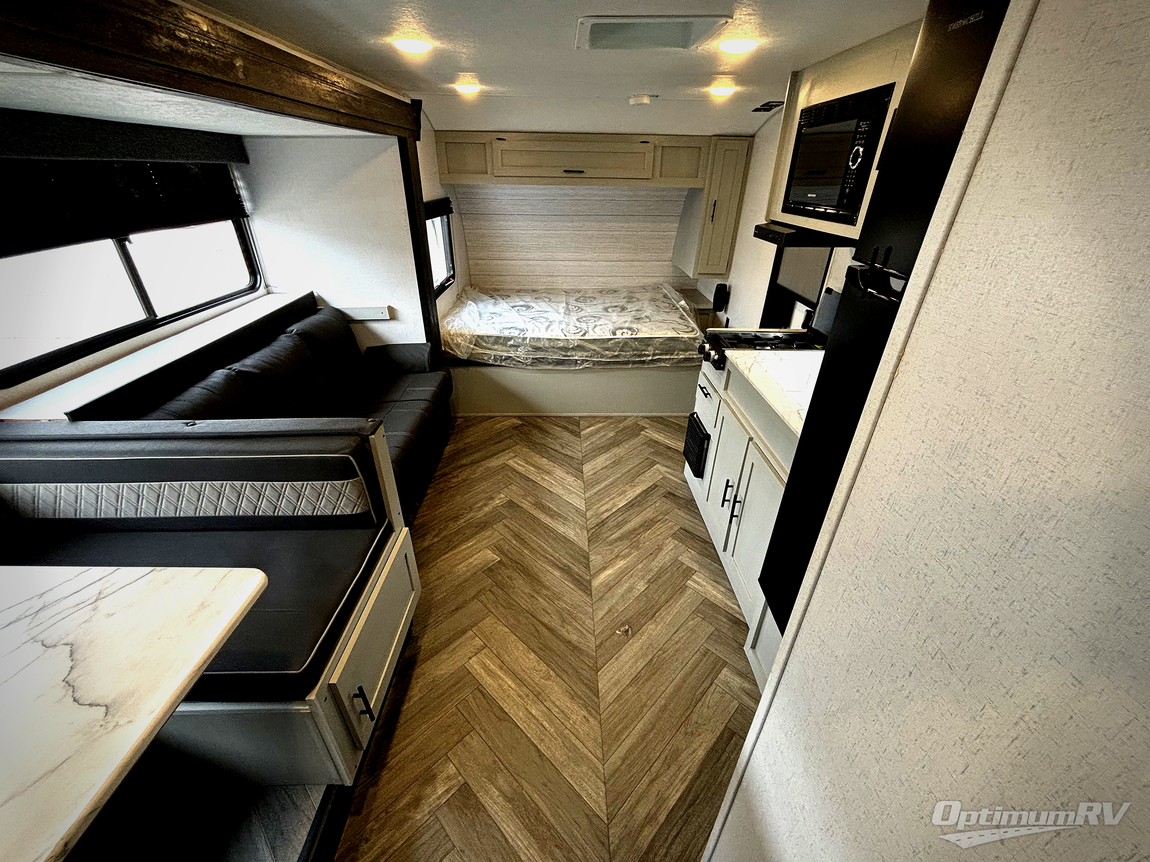 With wall-to-wall panoramic windows, the outdoors are brought inside this travel trailer! The large slide has a U-shaped dinette to enjoy your meals at and a sofa with storage access and above it is a hidden bonus bunk. The front Murphy bed offers comfortable seating during the day with a sofa and a place to lay your head at night with a 60" x 74" queen bed. Next to the kitchen pantry is a coat hook area and USB charger to keep your electronics at 100%. Prepare your best home cooked meals with the three burner cooktop and store any leftovers in the 11 cu. ft. frost free refrigerator. You can rinse the mud off either with the outside shower or in the full bathroom with the 36" x 24" shower!